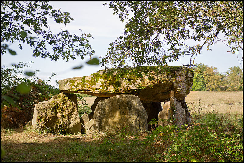 Le dolmen de La Borderie est situé à Berneuil, dans le département de la Haute-Vienne. Il a été fouillé pour la première fois en 1874 par M. Bidaud, classé au titre des monuments historiques le 5 juillet 1983, puis fouillé à nouveau et restauré en 1987. Le monument se trouve à moins de 600 mètres au nord-est du dolmen de La Lue. La table de couverture mesure 4,30 m de long sur 4,20 m de large, pour une épaisseur comprise entre 0,30 et 1,10 m, et son poids est estimé à 40 tonnes. La chambre s’ouvrait vers le sud-ouest, mais aucun vestige de couloir n’a été mis en évidence ; les dalles sont en granite. Lors de la campagne de 1987, une fraction de la couche archéologique a livré des pointes de flèche perçantes et tranchantes, des grattoirs, une hache polie et un fragment de poignard. La fouille de 1874 avait mis au jour un poignard en silex et deux tessons de poterie décorés d’incisions linéaires, attribués au Chasséen par Claude Burnez, ainsi qu’un poignard à dos poli et un vase plat attribués à l’Artenacien. La datation radiocarbone des charbons de bois retrouvés sous un support indique une période d’édification vers 4701 (+/- 140 BP), soit au cours du Chasséen. Les principales sources documentaires mentionnées pour ce monument incluent les travaux de Martial Imbert, Dominique Vuaillat et Roger Joussaume, ainsi que la base Mérimée.