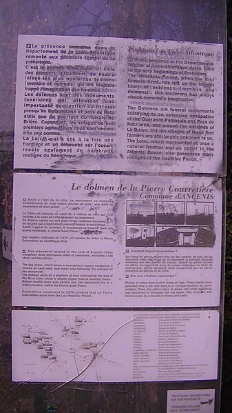 Le dolmen de la Pierre Couvretière est situé à Ancenis-Saint-Géréon, en Loire-Atlantique, et a été classé au titre des monuments historiques en 1926. C'est le seul dolmen encore visible dans le Pays d'Ancenis. Il a fait l'objet de deux campagnes de fouilles successives, sous la direction de Jean L'Helgouach en octobre 1972 et de Daniel Prigent en novembre 1973. Implanté en bord de Loire dans l'ancienne prairie Saint-Pierre, il est accessible depuis l'avenue des Alliés (D 923) ou l'avenue de la Bataille-de-la-Marne et se trouve aujourd'hui enclavé dans la zone industrielle de la Noëlle. Initialement posé sur la roche de la berge à 1,34 mètre de l'étiage, il est désormais dans un creux de remblai apporté pour niveler la zone industrielle. La première description connue, celle de Girault Saint Fargeau en 1829, évoque "une grande pierre plate et brute" dite Couveclair, de forme parallélogrammique, longue d'environ 4,13 m, large de 2,64 m, épaisse de 0,64 m et enfoncée d'environ 1,62 m, soutenue par deux autres pierres. L'ensemble est classé parmi les dolmens à couloir et se compose de deux orthostates en grès siliceux, d'une table de couverture en conglomérat et d'un petit pilier en gneiss, ce dernier matériau n'étant pas local et ayant donc été transporté. La table, de forme presque carrée, mesure environ 4,20 m sur 4 m pour une épaisseur de 0,70 à 0,80 m ; elle a basculé lors de la destruction du tumulus, est inclinée d'environ 45° et à moitié immergée dans les eaux de ruissellement ; c'est la seule partie désormais visible. L'orthostate oriental est enfoncé de 0,60 m dans une diaclase du schiste et s'élève à 2,50 m pour une largeur de 2 m, son épaisseur variant de 0,20 à 0,50 m ; l'orthostate occidental, plus bas, atteint 1,50 m de hauteur pour une largeur maximale de 2 m et une épaisseur de 0,50 m et comporte une cupule d'origine anthropique. La première campagne de fouilles a mis au jour, renversé à l'ouest, un autre pilier en grès, ce qui suggère que le dolmen était plus long à l'origine et que ce pilier supportait une dalle de couverture. La moitié sud a disparu lorsque le monument a servi de carrière, comme l'attestent des traces de débitage relevées sur un pilier, et les seuls vestiges du tumulus sont quelques pierrailles calcaires au pied de l'orthostate droit, peut‑être issues de la butte du Fourneau. Sur le plan funéraire, Emilien Maillard signale en 1863 la découverte de "deux petits couteaux druidiques", et les fouilles contemporaines ont livré, dans la chambre ou parmi la pierraille calcaire, un important ensemble mobilier. Celles-ci ont mis au jour soixante-seize pièces d'outillage en silex comprenant grattoirs, burin, lames et lamelles ainsi que trois pointes de flèches, dont une triangulaire, des ébauches et une à pédoncule et ailerons. Elles ont également révélé soixante-dix tessons de poterie décorés de coups de poinçon, attribués au campaniforme, ainsi que des objets métalliques : une plaquette d'or de 1,1 gramme décorée et perforée aux extrémités et un petit ciseau en cuivre de section quadrangulaire dont le métal semblerait provenir du Sud de la France. Des ossements humains et animaux, protégés par les pierres calcaires, ont été retrouvés et datés au radiocarbone à 2 880 et 2 990 BP ; les fouilles de Daniel Prigent ont permis d'identifier quatre crânes (trois hommes et un enfant), un à deux de type brachycéphale. L'analyse des os des pieds (astragales et calcanéums) et des dents indique l'inhumation d'au moins dix individus distincts, confirmation apportée par l'usure importante des dents humaines retrouvées. Les restes animaux correspondent à de gros mammifères — bœufs, porcs, moutons, chèvres, cheval — ainsi qu'à un chat sauvage et à des oiseaux, dont un étourneau et une bécasse. Le dolmen a vraisemblablement fait l'objet de réutilisations successives par les populations riveraines et peut être rapproché d'habitats contemporains fouillés dans le lit de la Loire entre les lieux-dits Le Bernardeau et La Grillette, près du pont d'Ancenis. Une légende locale raconte que le diable, chargé de trois pierres pour ravir les habitants d'Ancenis, abandonna son fardeau dans la prairie de Saint-Pierre lorsque le coq chanta, d'où le nom populaire de Pierre du Diable. Face à la dégradation du site liée à l'extension de la coopérative agricole de la Noëlle à la fin des années 1960, trois options furent envisagées : déplacer le dolmen, le remblayer et signaler sa position, ou le laisser en place en aménageant ses abords ; la troisième option fut retenue. En 1971-1972 une action de sauvegarde a été menée avec un nettoyage bénévole et les campagnes de fouilles qui ont suivi, mais le site est ensuite retombé dans l'oubli ; à la fin des années 1980, une nouvelle opération du Centre d'aide par le travail a permis de nettoyer le lieu et d'installer une signalisation et des panneaux didactiques.
