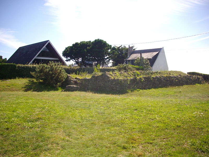 Le cairn, implanté sur le flanc nord‑ouest de la pointe de Bilgroix à 14 m d'altitude, a une forme de fer à cheval allongé longue de 17 m d'est en ouest et large de 7,90 m du nord au sud. Arasé en 1912, il n'atteint plus la hauteur originale estimée par Taslé à 3 à 4 m en 1866. L'ensemble est ceinturé par un premier mur de parement encore conservé sur 1 m de hauteur à l'extrémité sud‑est, et par un deuxième mur de parement composé d'un parement externe en gros moellons et d'un parement interne en petits moellons. Le parement interne s'élève jusqu'à 1,50 m de hauteur, au niveau de la seule table de couverture encore en place, qui mesure 3,30 m sur 2,80 m. Tous les blocs sont en leucogranite extrait sur place, et les espaces entre les murs et autour de l'allée ont été comblés par une couche de terre compactée mêlée de cendres.