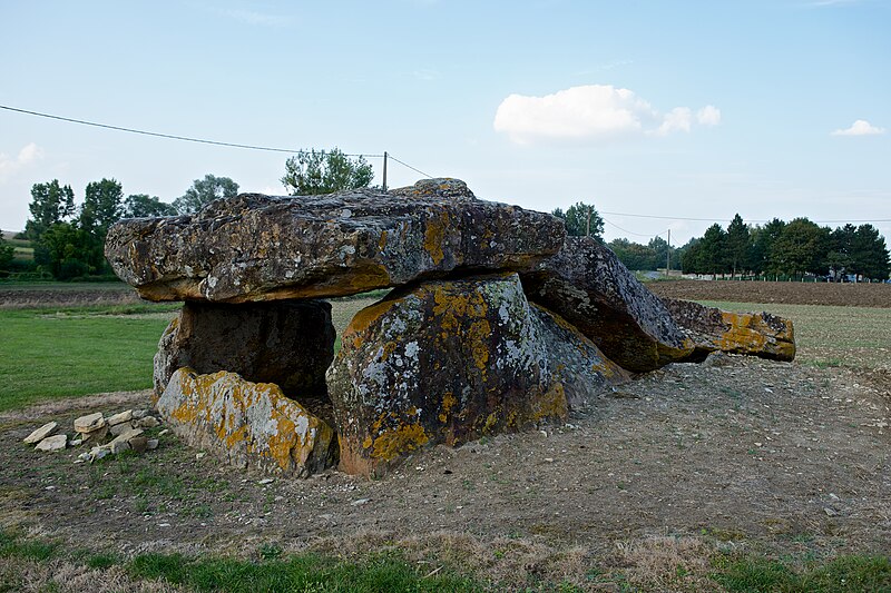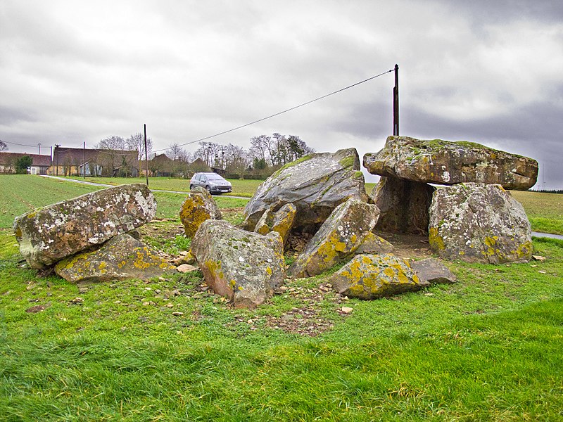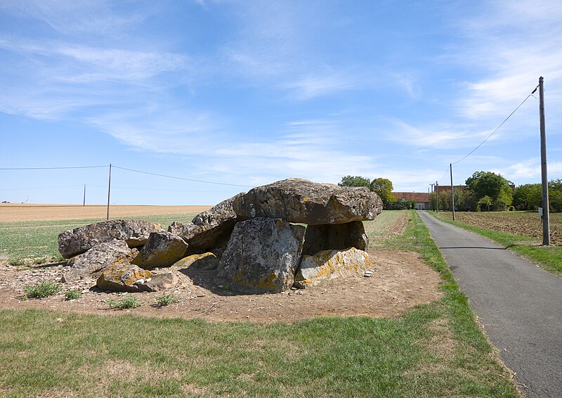 Le dolmen de la Pierre Levée, appelé aussi les Pierres Folles, se situe à Liniez dans le département de l'Indre. Il a été fouillé en 1875-1876 par Ludovic Martinet et classé monument historique par arrêté du 10 juin 1927. Considéré comme le plus monumental des dolmens du Berry, il est de type angevin et constitué de seize blocs de grès, avec une entrée orientée au nord-est. L'édifice s'étend sur 10,50 m de long et 5,70 m de large et comporte trois tables de couverture. La première table, au sud-ouest, repose encore sur deux piliers; la seconde, au nord-est, mesure 3,70 m de long sur 2 m de large pour une épaisseur de 0,80 m et s'est partiellement affaissée; entre elles, la troisième table, de 3,50 m sur 2 m pour une épaisseur moyenne de 0,75 m, a basculé selon un angle d'environ 45°, est en partie brisée et un fragment gît au sol. Au-delà du trilithe d'entrée, le dolmen comprenait une antichambre et une chambre funéraire. Selon Martinet, l'antichambre aurait été partitionnée par un mur de séparation formé de deux grandes pierres dressées en pilastres, mesurant chacune 1,80 m de long, 0,50 m de large et 0,25 m d'épaisseur. Seule la chambre, haute de 1,80 m, est demeurée en bon état; elle est fermée par une dalle de chevet de 3 m de longueur et 0,30 m d'épaisseur, qui émerge du sol sur 0,60 m. Martinet signale également que les restes d'un tumulus étaient encore visibles en 1875. Lors de sa fouille, il concentra ses recherches sur le centre de la chambre afin d'éviter un éboulement. L'intérieur était comblé par environ 1 m de terre et de détritus, et entre l'entrée et l'antichambre un sol dallé a été mis au jour à environ 1,30 m de profondeur. Sur ce sol reposaient des ossements concentrés près des parois et recouverts de pierres plates. Martinet recueillit un mobilier hétéroclite composé d'éclats de silex taillés, de pointes de flèches en grès, de deux monnaies gauloises, d'une fibule en fer, de débris de tuiles et de briques romaines, ainsi que de tessons de poteries de diverses époques et de quelques ossements humains et animaux. Il découvrit trois crânes séparés de leur squelette et divers ossements humains brisés, correspondant selon lui à l'inhumation de cinq individus dont la taille variait entre 1,50 m et 1,80 m; parmi eux figuraient une femme de moins de 25 ans, un homme très âgé et un autre d'environ 40 ans dont le crâne présentait une dépression attribuée à un coup violent ou à une trépanation.