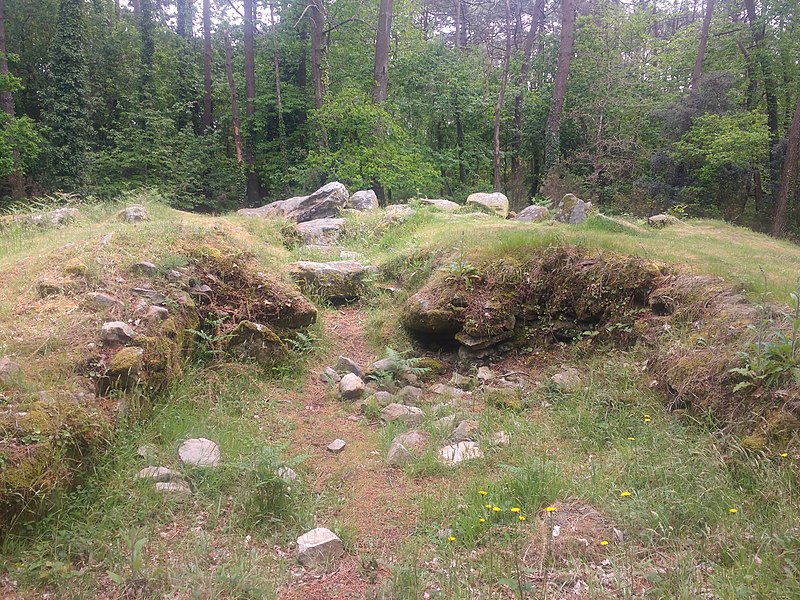 Édification du double dolmen à couloir durant le Néolithique.