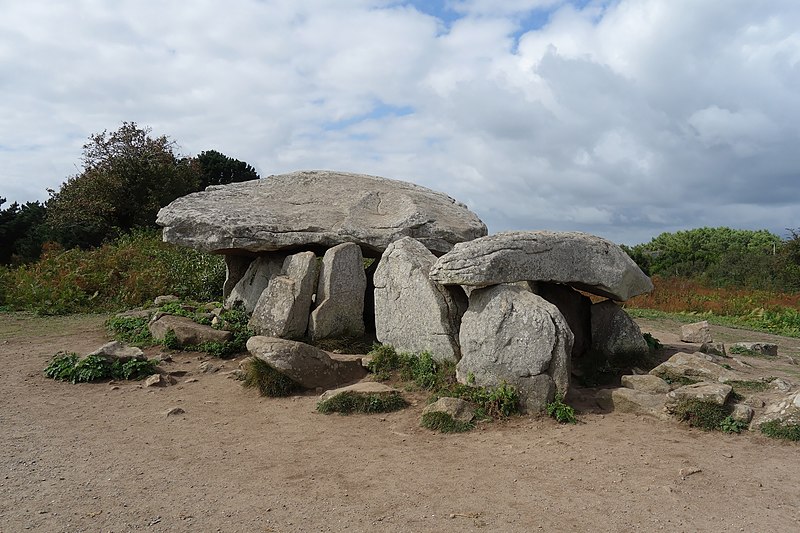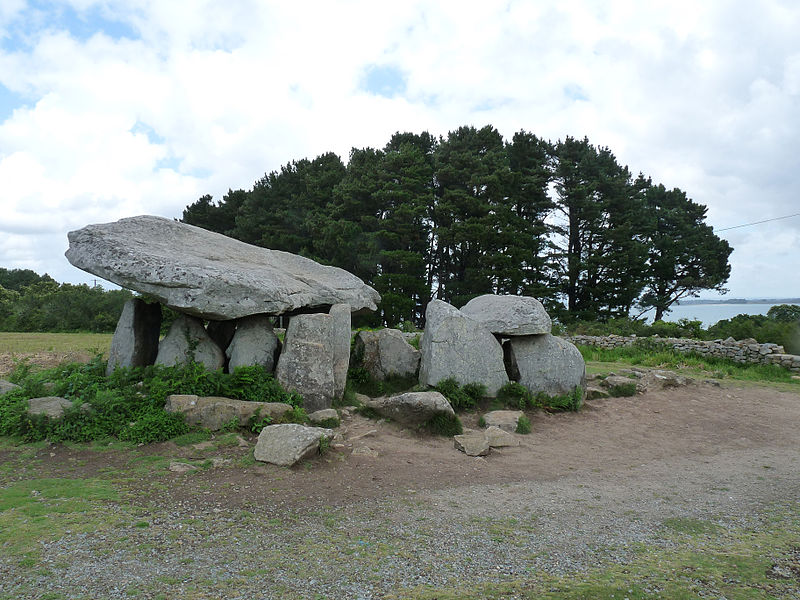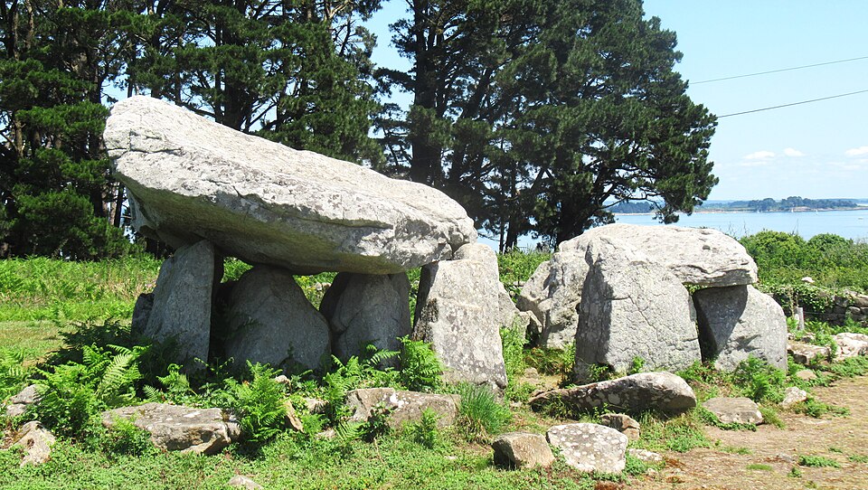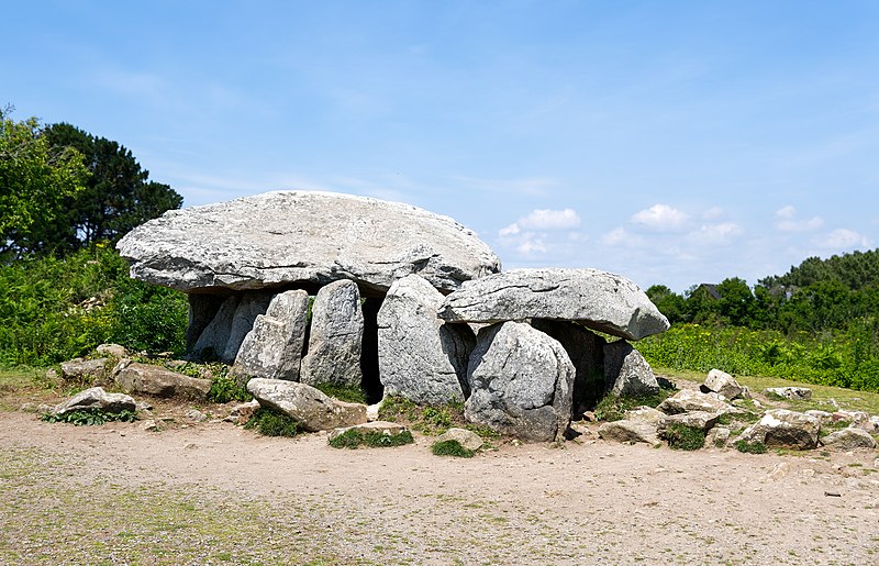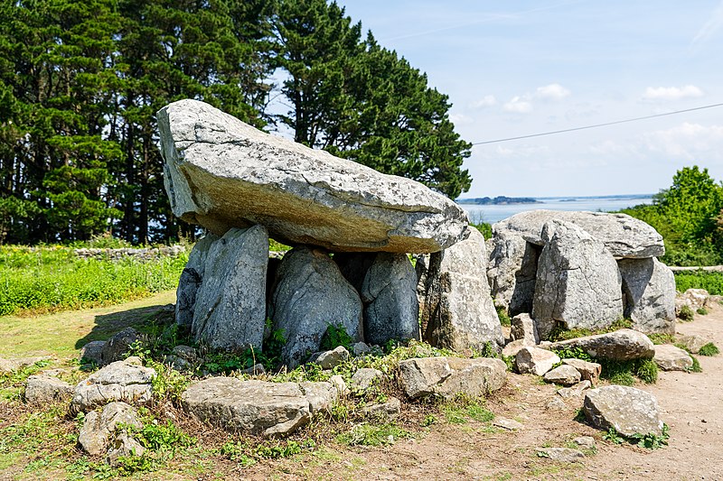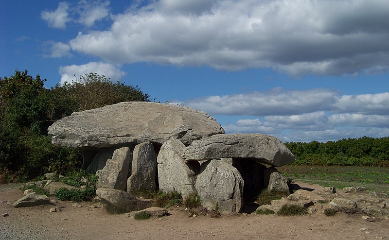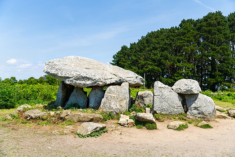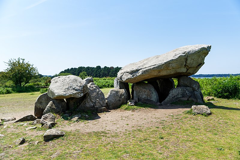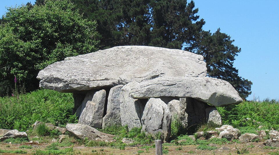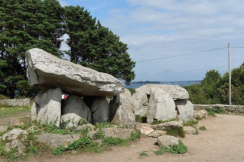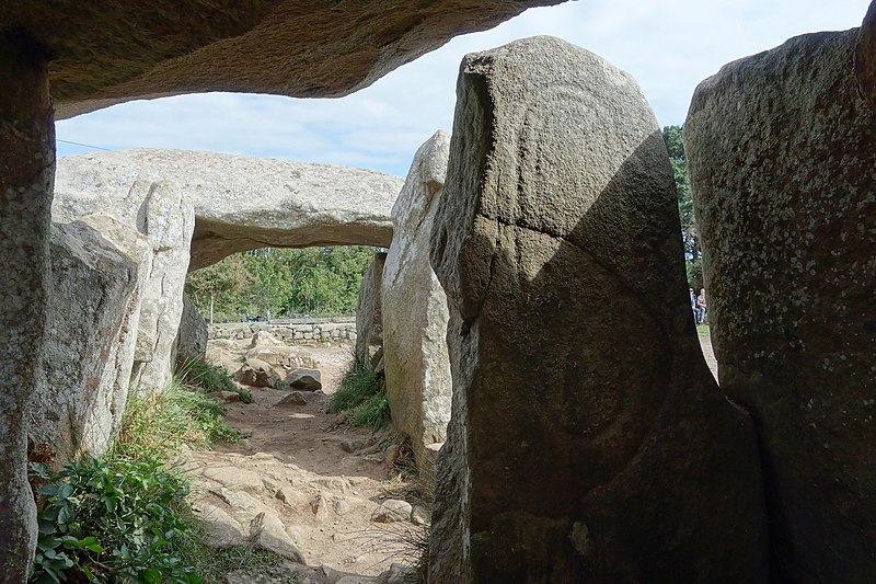 La chambre est de forme quadrangulaire, délimitée par neuf orthostates qui portent une unique table de couverture mesurant 4,80 m de long, 3,60 m de large et 0,95 m d'épaisseur. Elle est précédée d'un couloir coudé comportant encore trois orthostates et une dalle de couverture. Le premier pilier à l'entrée, côté gauche (orthostate C1), porte un motif gravé sur sa face externe et un autre sur sa face interne. Le motif interne est rare ; le seul autre exemplaire mentionné se trouve sur une stèle du site de Kermorvan, au Conquet. A. de Mortillet a décrit ce motif comme « une figure qui paraît représenter une hache dans sa gaine », interprétation reprise par la plupart des spécialistes du XXe siècle, et qu'Étienne Patte a qualifiée d'« arme en métal ». Un troisième motif similaire a été identifié lors de la restauration du cairn de Gavrinis sur l'orthostate L11. Le motif externe de l'orthostate C1 est comparable à des représentations connues dans différents mégalithes du Morbihan (Mané Lud, Kermaillard, Gavrinis, Er Grah) ; il correspond à la figure dite de la « hache-charrue » popularisée par Zacharie Le Rouzic. Serge Cassen propose une lecture figurative différente, interprétant le motif interne comme un grand calamar et le motif externe comme un cachalot.