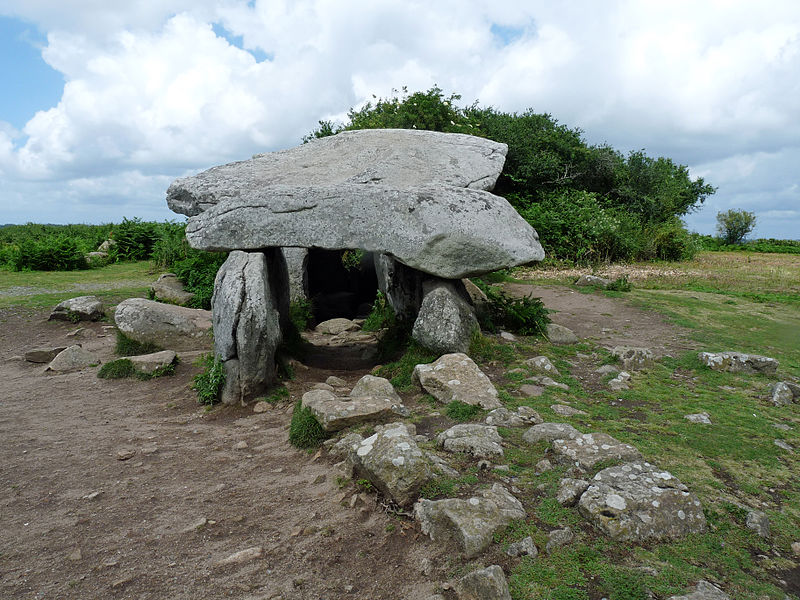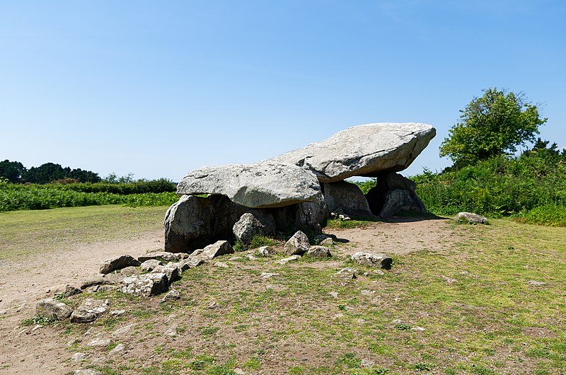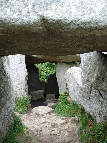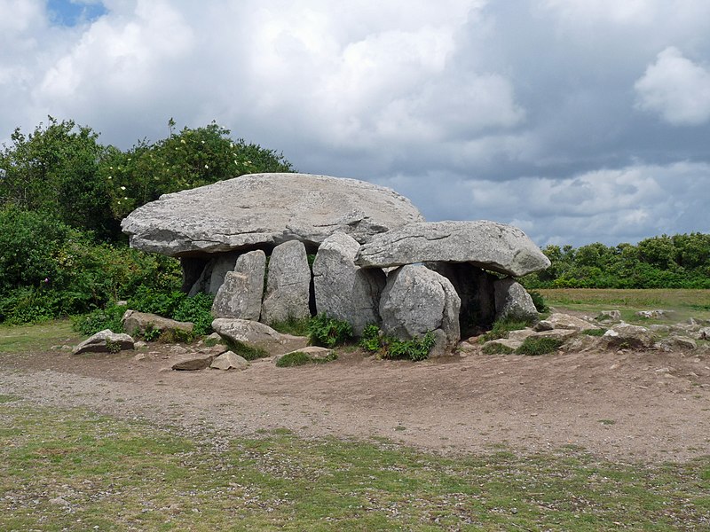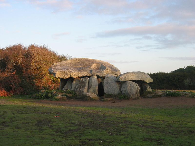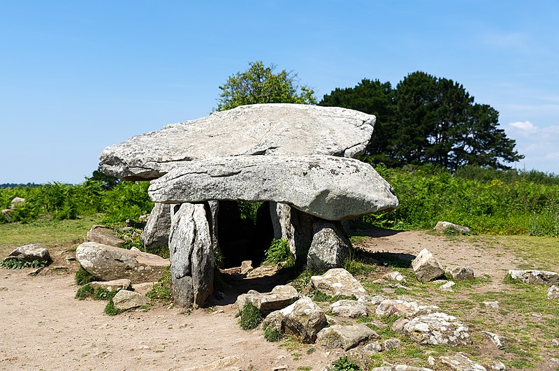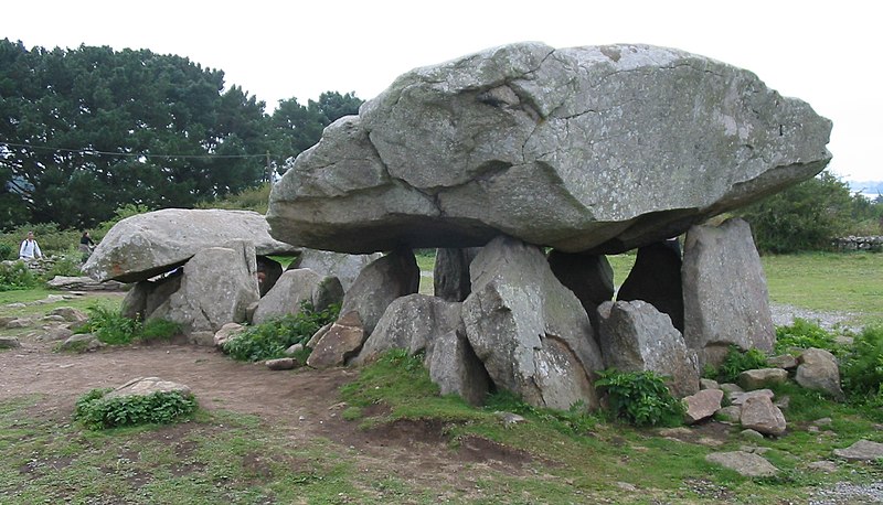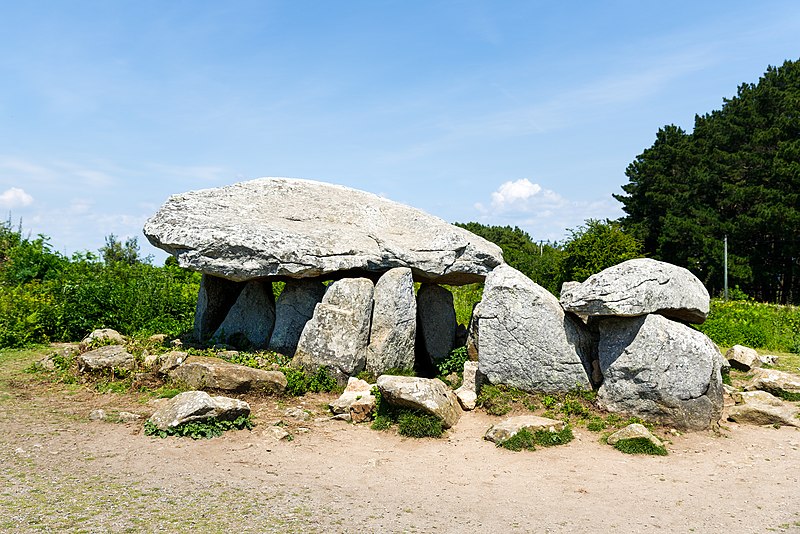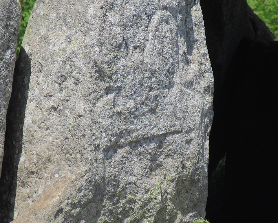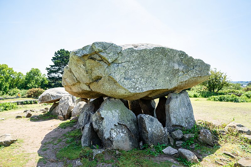 La chambre est de forme quadrangulaire, délimitée par neuf orthostates qui portent une unique table de couverture mesurant 4,80 m de long, 3,60 m de large et 0,95 m d'épaisseur. Elle est précédée d'un couloir coudé comportant encore trois orthostates et une dalle de couverture. Le premier pilier à l'entrée, côté gauche (orthostate C1), porte un motif gravé sur sa face externe et un autre sur sa face interne. Le motif interne est rare ; le seul autre exemplaire mentionné se trouve sur une stèle du site de Kermorvan, au Conquet. A. de Mortillet a décrit ce motif comme « une figure qui paraît représenter une hache dans sa gaine », interprétation reprise par la plupart des spécialistes du XXe siècle, et qu'Étienne Patte a qualifiée d'« arme en métal ». Un troisième motif similaire a été identifié lors de la restauration du cairn de Gavrinis sur l'orthostate L11. Le motif externe de l'orthostate C1 est comparable à des représentations connues dans différents mégalithes du Morbihan (Mané Lud, Kermaillard, Gavrinis, Er Grah) ; il correspond à la figure dite de la « hache-charrue » popularisée par Zacharie Le Rouzic. Serge Cassen propose une lecture figurative différente, interprétant le motif interne comme un grand calamar et le motif externe comme un cachalot.