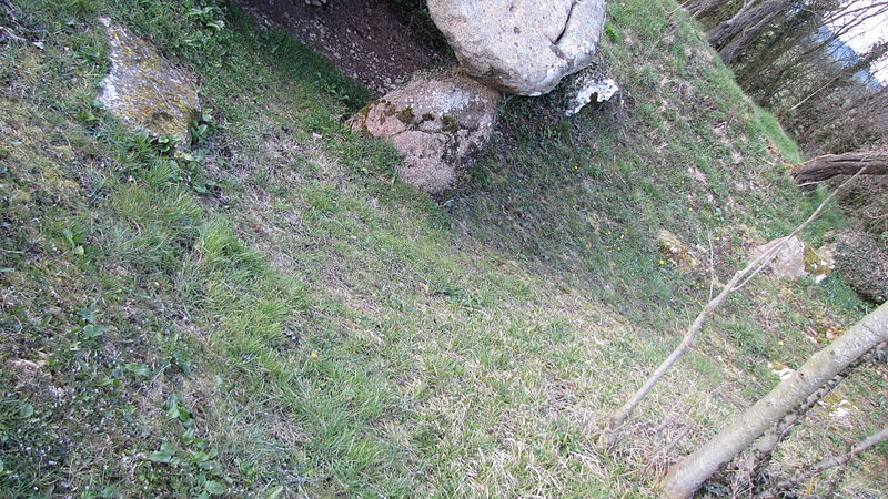 Le tumulus à chambres a été décrit par Victor Mousset en 1933 comme un amas de pierres calcaires recouvertes de terre, mesurant environ 25 m sur 19 m et 4 m de hauteur. Mousset signale que l'édifice avait déjà été entamé pour en extraire de la pierre, ce qui avait mis au jour de nombreux ossements humains. Lors des combats de la poche de Falaise, le tumulus servit de sépulture à des soldats allemands, et il a ensuite été très endommagé. Une fouille de sauvetage dirigée par Bernard Edeine en 1963 a montré que le tumulus était à l'origine un cairn qui ne fut jamais recouvert de terre. Le cairn était entouré d'un mur de parement soigneusement bâti, épais de 2,25 à 2,30 m, dont la hauteur actuelle n'excède pas 0,80 à 0,95 m. La base du monument comporte une couche argileuse d'environ 0,30 m contenant une lentille de charbon de 10 à 15 cm où figuraient quelques ossements d'animaux. Des restes humains — trois crânes entiers, d'autres fragments crâniens et divers ossements attribuables à une douzaine d'individus — ont été retrouvés dans toute la masse du cairn. Les corps étaient déposés selon des positions et orientations variables ; plusieurs gisaient sur des dalles de calcaire ou dans des fosses aménagées dans le cairn, parfois recouvertes par encorbellement ou par une dalle. Par comparaison avec des découvertes analogues, la construction de l'ensemble est attribuée au Chasséen.