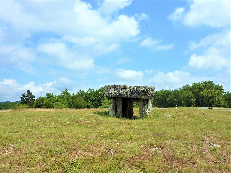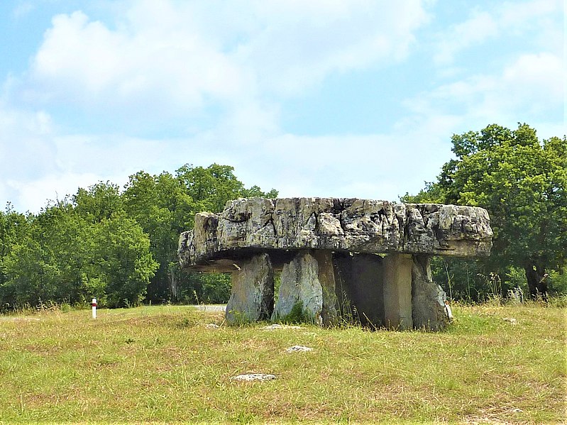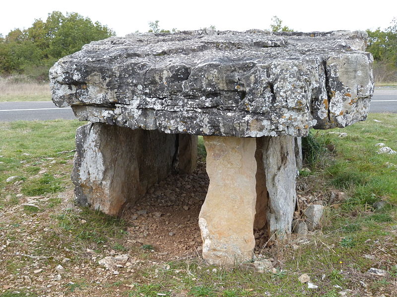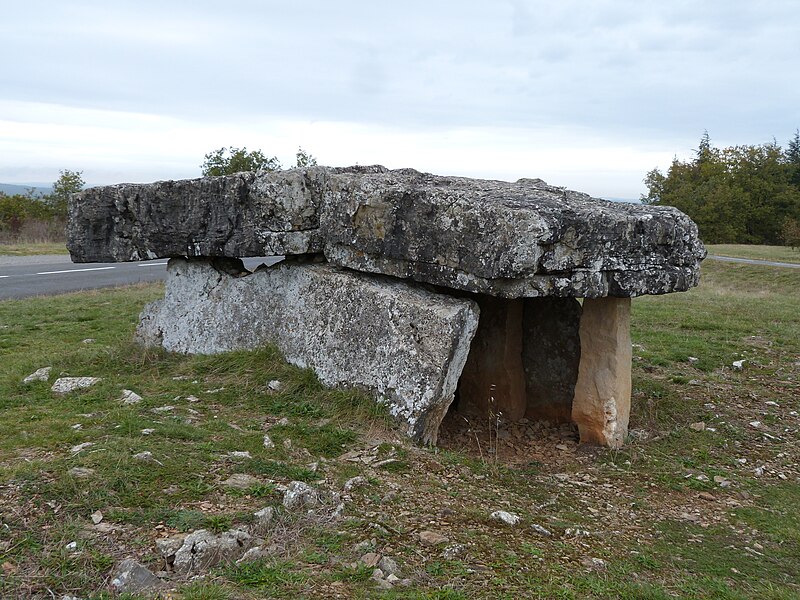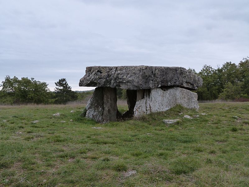 Dolmen dit Peyrelevade, autrefois sur parcelle B 4 de la commune de Roussayrolles, situé à Vaour dans le Tarn. Le monument est signalé à de nombreuses reprises au XIXe siècle, notamment par A. du Mège en 1821 et par H. Crozes en 1865, et figure dès 1867 dans divers inventaires mégalithiques nationaux ; il a été inscrit sur la liste des monuments historiques en 1882 puis classé en 1889. Il a fait l’objet de sondages et d’opérations de terrain dans les années récentes, dont un sondage en 1982, un sondage par Jean Lautier en 1984 et une fouille de sauvetage en 1994. Le dolmen, perché sur un plateau calcaire, est le plus grand connu dans le département et appartient à une vaste concentration de monuments homogènes qui s’étend vers le Tarn‑et‑Garonne, l’Aveyron et le Lot. L’érosion a largement arasé le tumulus, dont la fouille de sauvetage a néanmoins permis de restituer la structure : il présentait la forme d’un trapèze allongé, la partie ouest ayant été amputée par la construction de la départementale D15. Aux mesures relevées correspondent une largeur de 7,80 m côté sud‑est, des longueurs de 9,60 m à droite et 8 m à gauche, et une largeur réduite à 7,40 m à un autre niveau ; le tumulus était ceinturé d’un parement soigné haut de 0,40 à 0,60 m sur la façade. L’édifice a été construit presque perpendiculairement à une faille orientée nord‑est/sud‑ouest ; le sol d’origine, parcouru de diaclases, a été martelé pour être régularisé puis protégé par une couche de béton armé lors des travaux de consolidation de 1984. La chambre funéraire est délimitée latéralement par deux importants orthostates : le montant droit mesure 3,73 m de long sur 1,75 m de large et présente un état de délitement avec une cassure ouvrant un passage de 1,00 × 0,55 m, tandis que le montant gauche, plus conservé, fait 3,53 m sur 1,70 m. Ces dalles sont enfoncées d’environ 0,40 m dans des fosses de fondation creusées dans le substrat rocheux. Un pilier de soutènement en béton a été posé sous la table de couverture, aujourd’hui brisée en deux, qui s’étend sur 4,62 m de long et 2,86 m de large pour une épaisseur de 0,50 à 0,60 m. Le sondage de 1982 dans la chambre n’a livré aucun matériel, mais l’essentiel du mobilier provient de l’entrée, mêlé aux sédiments argileux. Les restes osseux comprennent vingt fragments crâniens, soixante phalanges, soixante‑dix dents, une douzaine d’esquilles d’os brûlés et environ cent cinquante débris difficiles à identifier. Le mobilier comprend des éléments de parure — perles annulaires en stéatite, schiste et calcaire de formes variées (tonnelet, cylindrique), une canine de chien montée en pendeloque, sept dentales et un coquillage marin — ainsi que quelques outils lithiques (un petit nucléus, un éclat de silex non retouché, une armature de flèche à pédoncule et ailerons) et une masse en granite ou grès vraisemblablement utilisée pour le martelage du sol. Le lot céramique compte trois cents tessons de petite taille d’une céramique grossière à gros dégraissant de quartz, six tessons de céramique sigillée gallo‑romaine, et l’ensemble est complété par une épingle en cuivre. Ces éléments correspondent à une utilisation principale à l’âge du cuivre par la culture artenacienne, avec des réutilisations ponctuelles à la fin de l’âge du bronze et à l’âge du fer. Dans la tradition locale, le dolmen est appelé La Jayantière : une légende rapporte que des géants l’auraient édifié pour y sacrifier de jeunes femmes et que saint Antonin, en délivrant une victime, provoqua la colère des géants qui auraient brisé la dalle de couverture.