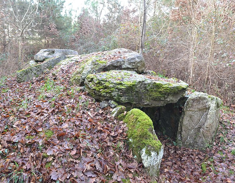 Il s'agit d'une petite allée couverte d'environ 7 m de long, de type armoricain, orientée presque exactement est‑ouest et ouverte vers l'est. Elle est implantée à peu de distance de la rivière Auxence, en contrebas d'un coteau situé à 450 m au sud. Quatorze des dix‑neuf dalles proviennent d'affleurements de grès au sommet de ce coteau, la déclivité ayant facilité leur transport, tandis que trois autres dalles, dont la plus grosse pèse plus de deux tonnes, sont en poudingue à gros galets d'Ingrandes, dont le gisement le plus proche se trouve à 5,40 km à l'ouest. L'allée présente six orthostates de petite taille de chaque côté et une dalle de chevet, le tout recouvert par quatre tables de couverture. La quatrième table, la plus occidentale, porte sur sa face supérieure un polissoir constitué de trois rainures parallèles de 38 à 43 cm de longueur et d'environ 2,5 cm de profondeur, ainsi que deux cuvettes ovales peu profondes; il est impossible de préciser si ce polissoir est antérieur ou postérieur au monument.