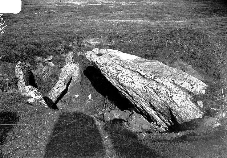 La fouille a révélé, sous une couche de sable, deux niveaux archéologiques distincts de 0,40 m d'épaisseur chacun, séparés par un dallage en pierres plates, montrant deux phases d'utilisation du monument. La couche inférieure contenait les restes d'au moins deux individus dans le couloir et de trois autres dans la chambre ; la couche supérieure renfermait deux individus en position repliée à travers la largeur du dolmen. Le mobilier signalé par F. Gaillard comprenait notamment onze vases, deux haches polies, dix perles, deux grattoirs, une lame en silex et divers tessons, mais l'inventaire complet n'a jamais été publié.