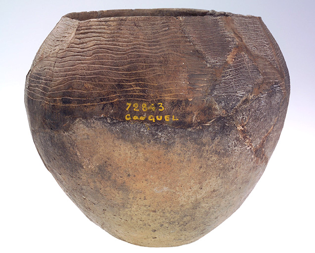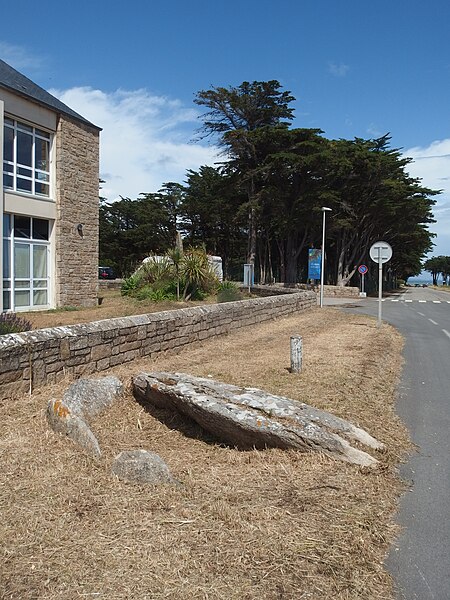 Les vases de la couche inférieure, à fond rond ou plat, présentent un décor en bandes alternant incisions à cru verticales et horizontales, lignes brisées et demi-cercles concentriques, caractéristique du faciès dit type Conguel. La couche supérieure contient des vases bi-coniques décorés d'incisions régulières et de lignes brisées d'inspiration campaniforme. Le mobilier céramique est aujourd'hui conservé au Musée d'Archéologie nationale dans le fonds P. du Châtellier.