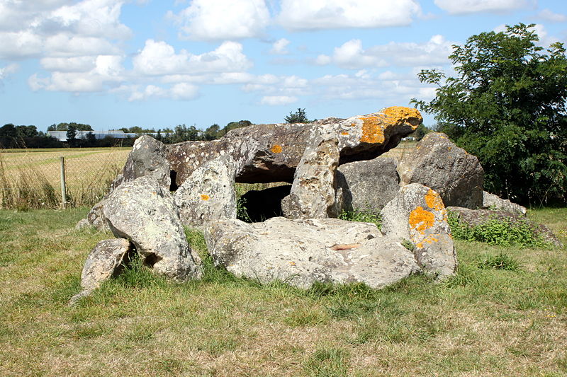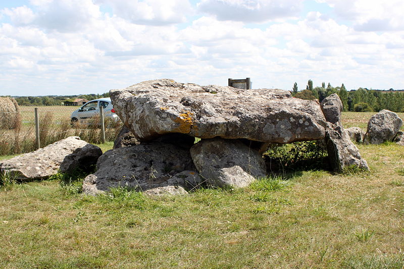 La restauration de Baudouin et Lacouloumère rend difficile la détermination du type exact du dolmen, mais, d'après le plan dressé avant leur intervention, il pourrait s'agir d'un dolmen à couloir coudé partiellement effondré. Les dalles qui composent la structure sont en grès local. Vers 1862, l'abbé Baudry signale la présence de trois menhirs renversés à une cinquantaine de mètres au sud et à l'est ; deux d'entre eux furent brièvement redressés puis retombèrent et finirent par disparaître lors du remembrement de 1969.