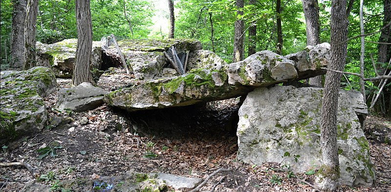 Le dolmen de La Roche-Vernaize se trouve sur la commune des Trois‑Moutiers, dans le département de la Vienne. L'édifice est classé au titre des monuments historiques en 1957. Aujourd'hui ruiné, il est probablement de type angevin et comporte dix orthostates ainsi qu'une large table de couverture fragmentée en trois morceaux. Selon Frère René, la chambre mesurait 7,50 m de longueur sur 4 m de largeur ; elle pourrait avoir été précédée d'une antichambre et deux orthostates au sud‑est pourraient être les vestiges d'un portique. Frère René avait toutefois considéré, à tort, qu'il s'agissait de deux dolmens. Frère René et M. de la Villebiot ont fouillé le site en 1900, et plusieurs comptes rendus de ces fouilles existent mais sont contradictoires. Une couche détritique d'environ 0,80 m recouvrait le sol pavé de grès rouge de la chambre ; sur ce pavement, dans une couche de terre fine de 15 à 20 cm, reposaient des ossements humains. Les fouilleurs décrivent des os longs disposés en « carrés », le crâne et les petits os à côté ; ils signalent sept de ces regroupements, un paquet de quatre ou cinq grands os près des parois et de nombreux tibias et humérus disposés sans ordre vers le centre de la chambre. Chaque « carré » ne correspondait pas à un squelette complet : des os d'adultes pouvaient être mélangés avec ceux d'enfants. Selon Charbonneau‑Lassay, ce niveau archéologique était surmonté d'un pavage en calcaire, lui‑même recouvert d'une couche de terre d'environ 0,45 m. Le mobilier découvert comprend des outils en grès, des silex taillés et retouchés, des tessons de poterie grise et noire à gros dégraissant (quartz) ainsi qu'un tesson noir décoré de lignes horizontales. Selon la tradition locale, le site était gardé par un énorme serpent qui punissait de mort quiconque venait troubler son repos. Une légende rapporte aussi que le diable, en renversant des galettes de beurre volées au curé de la paroisse de Basses et surpris par l'arrivée de Sainte Radegonde, aurait donné naissance aux dolmens de Vaon, de Bernazay, à La Roche‑Vernaize et à la Butte de Saint‑Drémont. Les principaux renseignements présents ici s'appuient notamment sur l'Inventaire des mégalithes de la France (Vienne) de Jean‑Pierre Pautreau et Montserrat Mataro i Pladelasala.