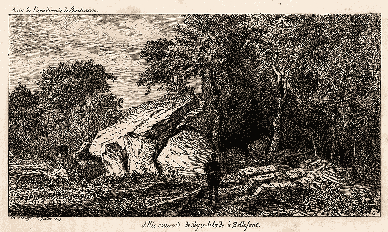 Les allées couvertes de Sabatey forment une petite nécropole néolithique de deux dolmens située à Bellefond (Gironde). La première mention des édifices est due à Ch. Grellet-Balguerie, qui a signalé l'allée n°1 en 1862. Vers 1870, Léo Drouyn en proposa une description erronée, assimilant les deux dolmens aux extrémités d'un unique tumulus serpentiforme. En 1879, François Daleau reconnaît clairement les deux constructions et fouille partiellement la première. Les dolmens ont été classés au titre des monuments historiques en 1889. L'allée n°1 s'étire sur 9 m selon un axe ouest-est ; sa largeur varie de 1,70 m au chevet à 0,80 m au centre. Elle est bordée, côté gauche, par six orthostates de 0,80 à 1,60 m de long et, côté droit, par cinq orthostates de 0,90 à 1,50 m, tandis que la dalle de chevet mesure 1,50 m. La hauteur des orthostates décroît du chevet vers l'entrée (environ 1,70 m au milieu, 0,80 m à l'ouverture), ce qui permet de rattacher l'édifice au type des allées d'Aquitaine. Deux tables de couverture sont encore visibles : l'une est effondrée dans l'entrée (3,20 m par 1,70 m), l'autre est renversée à l'arrière et partiellement enfouie. Le sol de l'allée est dallé de grandes pierres ajustées et le tumulus comprenait des pierrailles calcaires. L'allée n°2, très remaniée car utilisée comme carrière, est en ruine ; il subsiste un côté comportant cinq orthostates dressés et un sixième renversé. Deux tables de couverture demeurent, dont l'une mesure 3,20 m de long, 2,30 m de large et environ 0,80 m d'épaisseur ; l'édifice devait mesurer à l'origine près de 7 m et était probablement une allée d'Aquitaine. Le mobilier recueilli comprend, selon Drouyn, une dent humaine, un tesson de poterie noire et un fragment d'objet en os trouvés dans l'allée n°1 ; Daleau retrouva une autre partie de cet objet en os, de forme ancrée, quelques ossements humains (débris de mâchoires), des silex et des tessons, dont une partie est conservée au Musée d'Aquitaine dans la collection Daleau. Le toponyme Sabatey évoque un lieu de sabbat et renvoie à des traditions de sorcellerie, réelles ou imaginaires, associées aux monuments.