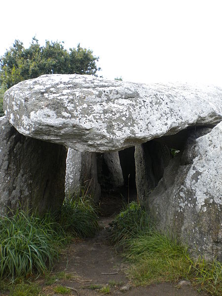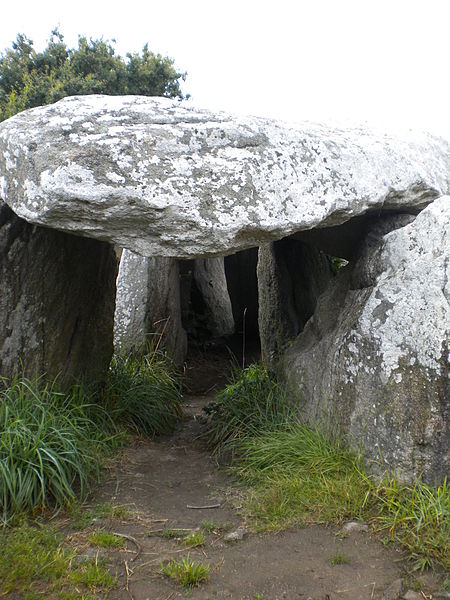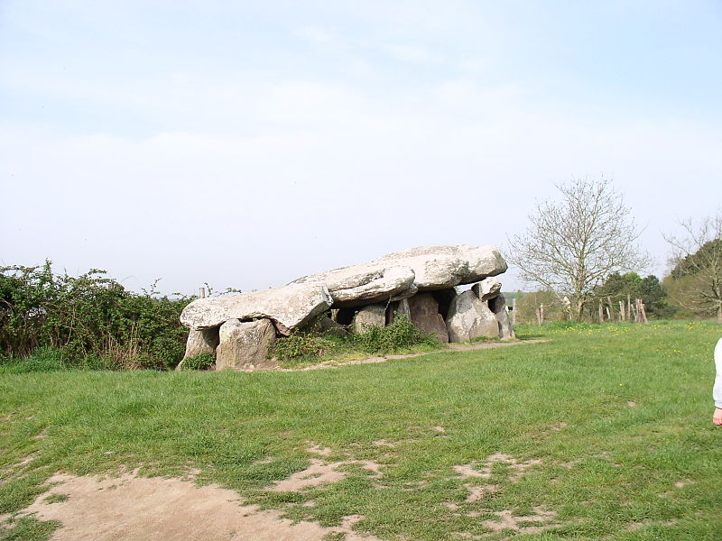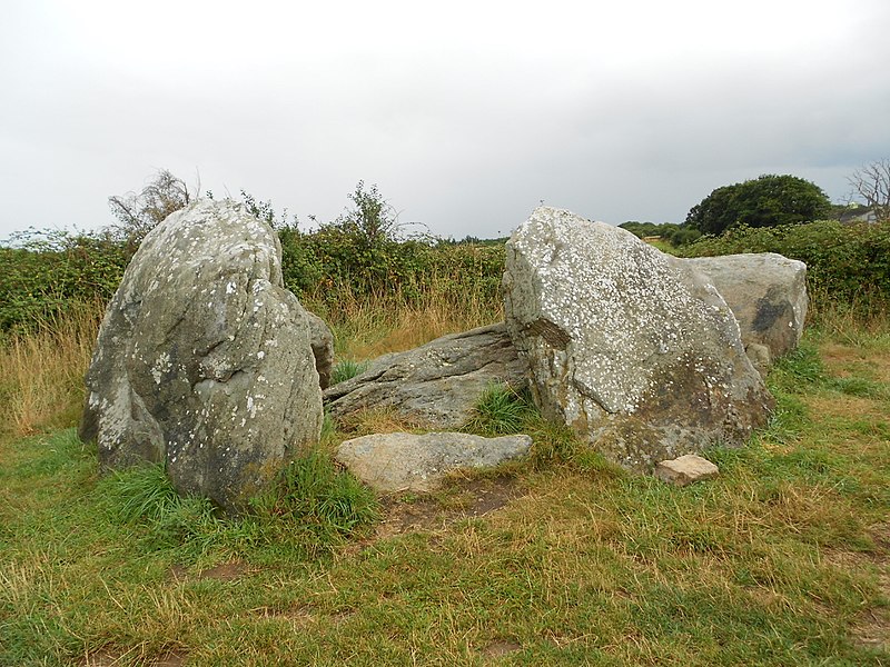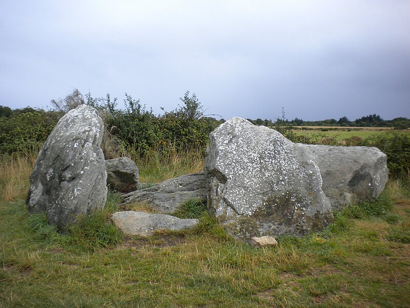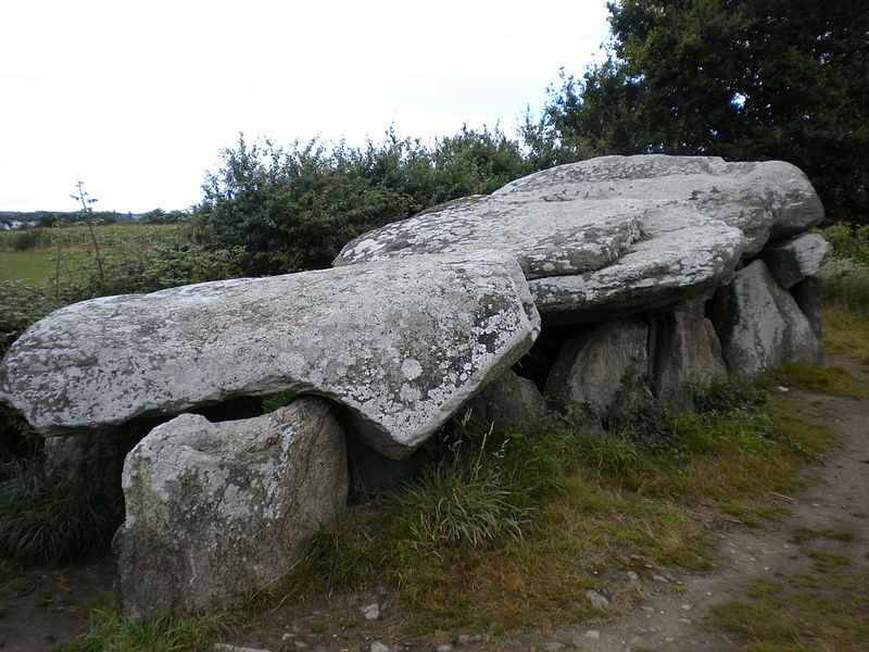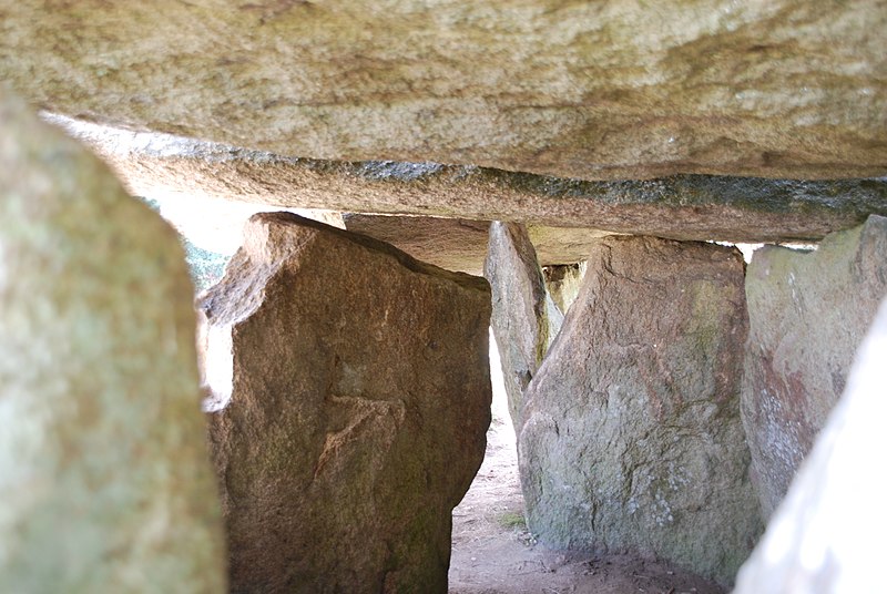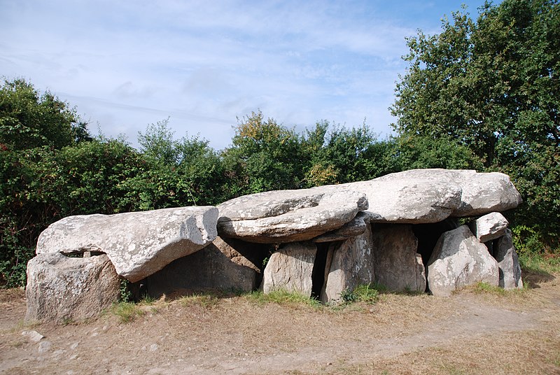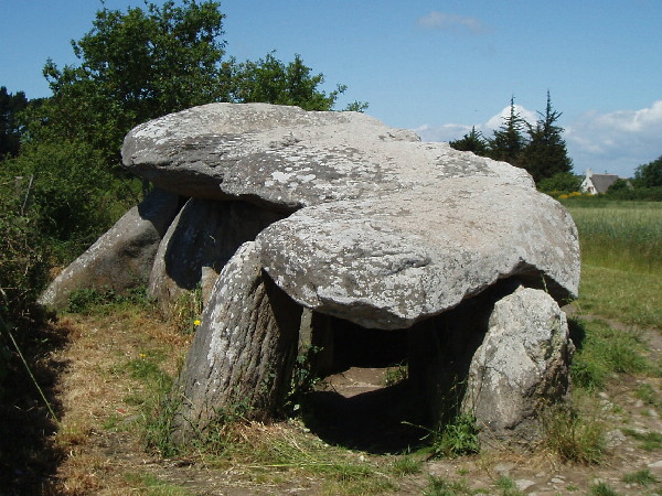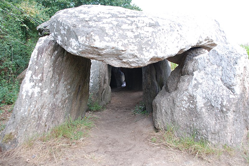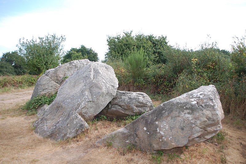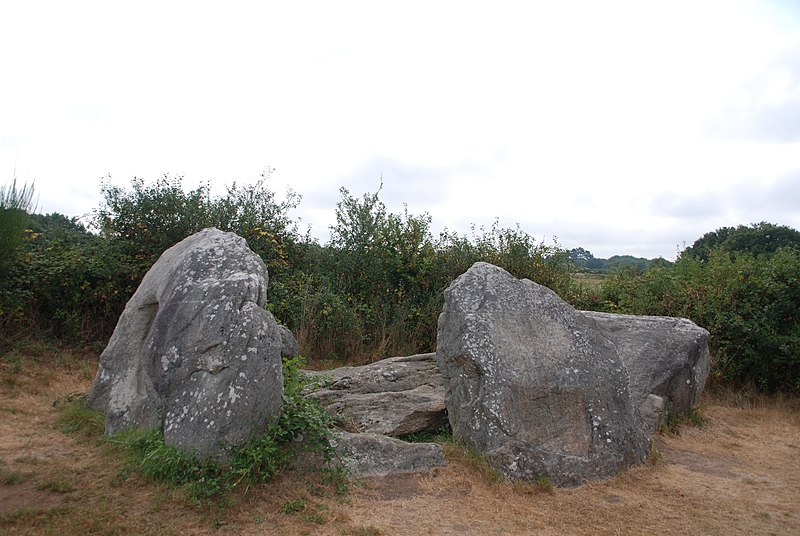 Le dolmen n°1 est bien conservé et toujours couvert par quatre tables de granite ; son mode de construction rappelle celui du tumulus de Dissignac. Il était autrefois recouvert d'un cairn dont les derniers vestiges ont probablement été arasés lors du défrichement de 1874-1876, et un dessin de 1866-1867 le montre dans la même configuration qu'aujourd'hui. Souvent qualifié d'allée couverte, il s'agit en réalité d'un dolmen à couloir dit « en P », long de 7,70 mètres et orienté est-ouest. Il se compose d'un couloir, bordé par sept dalles et recouvert de trois tables, qui débouche sur une chambre trapézoïdale délimitée par huit orthostates ; la chambre mesure 2,38 m sur 3,15 m pour 1,50 m de hauteur. Les deux piliers d'angle, plus petits, ont été surmontés d'un bloc transversal pour soutenir l'une des tables de couverture. Des haches polies mises au jour lors des fouilles menées en avril 1879 par l'archéologue anglais William Collings Lukis sont conservées au British Museum.
