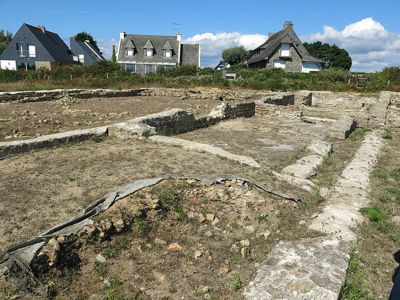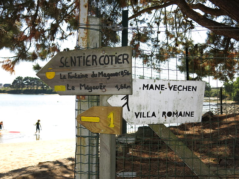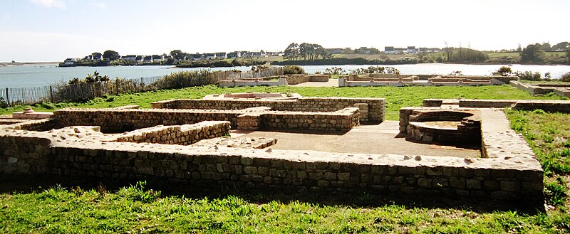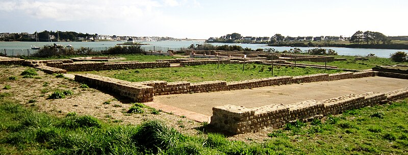 La villa gallo-romaine de Mané-Véchen est un site archéologique situé à Plouhinec (Morbihan), sur un éperon rocheux dominant la rive droite de l'estuaire de la rivière d'Étel ; il est classé au titre des monuments historiques depuis le 12 mai 2010 et est ouvert à la visite depuis 2007. Il s’agit d’un petit établissement côtier organisé autour d’une cour rectangulaire bordée de trois ailes en « U », l’ensemble couvrant environ 1 200 m² et la cour mesurant environ 27 m sur 32 m, avec un bassin central. L’accès se faisait par un porche au sud ; deux pièces au plafond décoré précédaient l’entrée principale. L’aile sud abritait une grande salle de réception, tandis que l’aile ouest comprenait deux salles desservies par un corridor ; les ailes est et nord, sans portique, ouvraient directement sur la cour et étaient bordées de plusieurs salles et d’un couloir. À l’arrière de l’aile nord se trouvent trois pièces attribuées à une cuisine, à un cellier et à un petit appartement, et un jardin d’hiver a été aménagé au sud. Un petit bâtiment au sud‑ouest, ressemblant à un silo et doté d’un double mur, semble avoir servi à maîtriser la chaleur. La villa possédait des installations de chauffage par le sol (hypocauste) et des tubuli, ainsi que des aménagements d’eau et de canalisation. Les fouilles ont mis au jour des décors intérieurs riches et variés : exèdres voûtées peintes, panneaux imitant le marbre, un décor montrant Vénus entourée de deux amours, une frise ornant un portique et des stucs figurant animaux et personnages mythologiques ; on a également reconnu une bibliothèque ou salle d’archives, une salle chauffée meublée de banquettes et un jardin intérieur doté d’une pergola ou d’une volière. Les campagnes de fouilles ont livré un mobilier abondant — céramiques, monnaies, outils, armes, fibules, fragments sculptés et enduits peints — ainsi que un haut‑relief dionysiaque et des éléments de statues. Un trésor de quelque 21 000 monnaies (deniers antonins, sévériens et antoniniens) a été découvert dans un vase situé dans un patio, et des fondations d’une tour carrée de 7,20 m de côté ont été mises au jour, peut‑être liées à un fanal ou à un silo. La construction de l’ensemble remonte à la fin du IIe siècle ; le site connaît une occupation différente à la fin du IIIe siècle et au début du IVe siècle après un incendie partiel, puis est abandonné au début du IVe siècle. Après 274, un sous‑sol a servi ponctuellement à la frappe de monnaies, et les vestiges montrent que les occupants postérieurs ont pratiqué, pendant quelques décennies, des activités d’élevage et de boucherie à grande échelle, ainsi que des activités artisanales et militaires. Longtemps présentée comme une villa rurale, l’interprétation du site a évolué : une inscription conservée au musée de Bretagne et la nature des aménagements suggèrent qu’il pourrait s’agir d’un édifice maritime de prestige — palais ou siège d’une société exploitant les ressources littorales (sel, salaisons) — jouant un rôle décisionnel dans les activités commerciales et maritimes de la région. Les fouilles conduites depuis 1970, et intensifiées entre 2000 et 2007, ont permis de protéger le monument et de révéler des décors intérieurs parmi les plus remarquables connus en Gaule. En été, le parc archéologique accueille des visites guidées et des rencontres avec les archéologues, et le mobilier découvert est présenté lors des journées européennes du patrimoine.