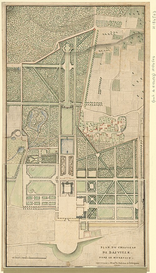 Le domaine de Baville, de style Louis XIII, est situé sur la commune de Saint-Chéron ; une partie de son enclos s'étend sur Breuillet et Breux-Jouy (le bois du Boulay), dans l'Essonne, en Île-de-France. La terre de Basville a été achetée en 1559 par Charles de Lamoignon (1514-1572). À la place de l'ancien manoir, son fils Chrétien de Lamoignon (1567-1636), conseiller au Parlement de Paris et futur président à mortier, fit édifier le château actuel entre 1625 et 1629 par Michel Villedo (1598-1667), maître-maçon de Louis XIII ; il s'agit de la première construction connue de Villedo et elle revint au commanditaire à la somme de 45 000 livres. Au Grand Siècle, le domaine accueille une société raffinée : Guillaume Ier de Lamoignon (1617-1677), marquis de Basville, y reçoit des amis et personnalités comme Racine, La Fontaine, Madame de Sévigné, saint Vincent de Paul et Bourdaloue, et c'est à Baville que Boileau composa plusieurs de ses œuvres. Deux ailes en retour, peut-être prévues dès l'origine, sont construites en 1677 pour Chrétien-François Ier de Lamoignon (1644-1709), marquis de Basville et avocat général au Parlement de Paris ; elles respectent le style originel. Les communs sont édifiés en 1769 pour Charles-François de Lamoignon, dans le respect du parti initial alors jugé passablement suranné. La famille de Lamoignon conserve le domaine jusqu'en 1791. Le château est ensuite acquis du marquis Rollin d'Ivry par Philippe Albert Joseph de Saulty, dit Pruvost de Saulty (1765-1833), receveur général du département de Seine-et-Oise et régent de la Banque de France en 1817 ; il meurt au château le 25 novembre 1833. Au début du XIXe siècle, l'aile gauche est détruite et ses matériaux servent à bâtir une orangerie derrière l'aile droite. On rapporte que le château abritait une très riche bibliothèque qui aurait été conservée au British Museum. En 1816, les jardins à la française sont transformés en jardins à l'anglaise, puis rétablis à la fin du XIXe siècle, peut-être par Henri et Achille Duchêne. Pendant la Seconde Guerre mondiale, le château sert d'internat pour le lycée Saint-Louis-de-Gonzague. Le château a également été utilisé comme lieu de tournage pour la série L'Internat, diffusée en 2009 sur M6. Le corps de logis principal, qui ferme la cour d'honneur, comprend deux étages et plusieurs corps sur un même alignement. Le corps central, surmonté d'un fronton, est flanqué de deux ailes latérales plus basses, terminées par des pavillons en saillie. Les constructions présentent un chaînage en pierre blanche, des parements en briques rouges et une toiture en ardoises bleues ; seul le corps central est entièrement en pierre, les autres éléments combinant pierre et remplissage en brique. Cet ensemble illustre la première moitié du XVIIe siècle par la division en plusieurs corps et l'association de pierre et brique caractéristique de l'époque. Le château, l'ensemble de ses dépendances, les deux parcs clos de murs et leurs fabriques (cad. A 82, 83, 107, 109 à 113) sont inscrits à l'inventaire supplémentaire des monuments historiques par arrêté du 22 octobre 1990.