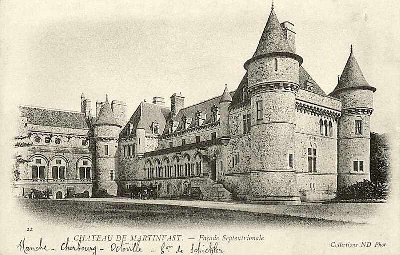 Le domaine de Beaurepaire, également appelé château de Martinvast, est une demeure implantée sur la commune de Martinvast dans le nord du département de la Manche. Installé dans un parc paysager à l'anglaise, le château actuel inclut des éléments datés du XVe, du XVIe et du XIXe siècle. Sur ce site se trouvait l'ancien château féodal de la famille de Martinvast, ruiné en 1398 durant la guerre de Cent Ans, des aveux de 1398 et 1607 mentionnant un manoir sur motte dont il ne subsiste aujourd'hui aucune trace. Aux XVe–XVIe siècles, la famille de Beaurepaire du Moncel prend possession de la terre de Martinvast et Berthole du Moncel reconstruit le logis Renaissance entre 1579 et 1581 tout en conservant le donjon circulaire du XIVe siècle entouré de douves et de marécages. Jacques du Moncel est qualifié de seigneur de Beaurepaire dans un aveu de 1616. Jean‑François du Moncel (1729‑1809) y décède en 1809. L'impératrice Marie‑Louise est reçue au château les 29 mai 1811 et 27 août 1813 par le comte Alexandre du Moncel, qui devint pair de France en 1846 et acheva sa carrière au grade de général de brigade. À partir de 1820 et jusqu'à sa mort en 1861, le comte Alexandre du Moncel entreprend d'importants travaux : il remblaie les douves, draine le terrain, supprime les étangs, élève quatre tours qui effacent les vestiges du vieux château tout en conservant le donjon médiéval, aménage et agrandit le parc, et crée un jardin à l'anglaise. Il développe aussi une exploitation agricole moderne employant une centaine de personnes et comprenant moulins, huileries, pressoir et boulangerie, et en 1850 le gouvernement y installe une ferme‑école dont il prend la direction. En 1861, son fils Théodose du Moncel hérite du domaine, puis la comtesse du Moncel le vend en 1867 à l'épouse du baron Arthur de Schickler. Le baron fait agrandir et remanier le château dans un « style gothique aux accents victoriens » par l'architecte britannique William Henry White : les plans sont exposés aux Salons des Beaux‑Arts en 1867 et 1869, une galerie nord et une aile sont ajoutées pour relier le donjon au logis du XVIe siècle, des serres sont établies et un haras est construit par Charles Letrosne. Le baron enrichit le parc d'essences exotiques et confie la décoration des massifs floraux à Lévy‑Dhurmer, complétant ainsi le grand parc paysager aménagé par le comte du Moncel. Pendant la Seconde Guerre mondiale, le château est occupé par des officiers supérieurs allemands et subit des dommages : l'aile gauche du logis du XVIe siècle est détruite par un incendie consécutif à un bombardement britannique du 16 janvier 1944 impliquant des bombes au phosphore, puis en mai 1944 un bombardement américain atteint la ferme et les granges et détruit la moitié de l'aile néogothique du XIXe siècle. Après la guerre, Marguerite de Schickler, épouse du comte Hubert de Pourtalès et héritière du domaine, fait reconstruire le pavillon Renaissance mais ne rétablit pas la galerie nord ni la salle à manger ; le manteau de cheminée sculpté dessiné par White, intitulé L'Arche de Noé, est conservé. En 1967 le petit‑fils, le comte Christian de Pourtalès‑Schickler, restaure l'aile gauche détruite, puis à partir de 1995 il fait édifier une galerie de liaison reliant cette aile aux parties intactes du château du XIXe siècle. La tour circulaire du XVe siècle et le petit bâtiment qui lui est accolé constituent les éléments les plus anciens du domaine. L'ensemble reconstruit dans la seconde moitié du XIXe siècle adopte un parti médiéval et relève du style Second Empire, que certains auteurs rapprochent de l'école de Viollet‑le‑Duc. Jusqu'en 1944, les bases des colonnes situées au sud, de part et d'autre de l'escalier central extérieur, portaient les armes du baron de Schickler et de son épouse Jeanne Roger du Nord ; ces éléments ont été sauvés et servent aujourd'hui de supports à deux vasques côté nord. L'intérieur a été réaménagé dans un style gothico‑victorien imposant par William Henry White pour le baron de Schickler. Dans la galerie, un tableau brodé expose les armes de la famille de Pourtalès. Le parc anglais, d'une superficie d'environ cent hectares et aménagé vers 1820 par le comte Alexandre du Moncel sous la Restauration, comprend bois, prairies, étangs, une cascade, de somptueux massifs floraux et des fabriques, ainsi que des sculptures, dont deux lions supportant des colonnes torses en marbre de Vérone et une statue en marbre de Gaetano Motelli. Parmi les fabriques se trouve un obélisque qualifié de « haute folie », probablement érigé par Alexandre du Moncel à la limite avec Hardinvast ; il s'agit d'une tour de plusieurs mètres, coiffée d'une toiture pointue, percée d'oculi et accessible par un escalier intérieur. Le parc a été complété par le baron de Schickler d'essences exotiques et d'importants massifs d'arbustes à fleurs tels que rhododendrons, camélias et hortensias, protégés par des conifères exotiques. Le domaine a reçu la visite de personnalités impériales et royales, parmi lesquelles Marie‑Louise, Joséphine, Eugénie, la reine Victoria et l'empereur Pedro Ier du Brésil. Les façades et les toitures du château sont inscrites au titre des monuments historiques par arrêté du 27 avril 1976. Par arrêté du 28 décembre 1992 sont inscrits les façades et toitures de l'ensemble des bâtiments à l'exclusion des constructions contemporaines, l'obélisque, le moulin à vent, les murs d'enceinte avec leurs piliers et grilles, le potager avec ses serres et murs, ainsi que le parc avec l'ensemble de ses aménagements paysagers et hydrauliques. En juillet 1922, quelques scènes du film muet La dame de Monsoreau de René Le Somptier sont tournées au château, le reste du tournage ayant lieu au château de Nacqueville.