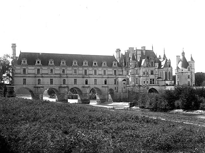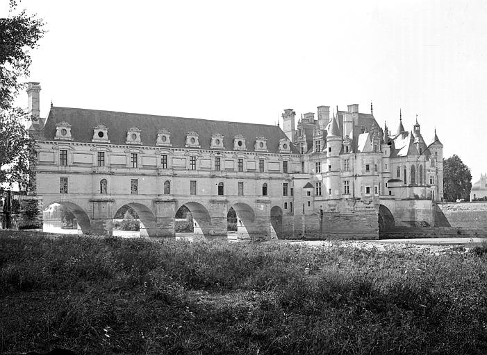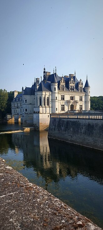Le château de Chenonceau, en Touraine, s'étend sur le Cher entre les communes de Chenonceaux et Francueil; sa galerie à deux étages qui enjambe la rivière en fait l'un des fleurons de l'architecture du Val de Loire. Classé monument historique depuis la liste de 1840, son parc est protégé depuis 1962 et l'ensemble a été intégré au périmètre du Val de Loire inscrit au patrimoine mondial de l'UNESCO en 2017. Les origines du site remontent au XIIIe siècle, lorsque la seigneurie des Marques y établit un premier château et un moulin fortifié; de cette période subsiste la tour sud‑ouest dite « tour des Marques ». Après des destructions liées à la guerre de Cent Ans, Thomas Bohier acquiert le domaine puis, avec son épouse Katherine Briçonnet, engage la transformation Renaissance du logis édifié sur les piles de l'ancien moulin ; les travaux principaux se déroulent entre 1513 et 1521 sous la conduite de Katherine. Endettée par la suite, la famille Bohier cède Chenonceau à la Couronne et Henri II offre le domaine à Diane de Poitiers en 1547 ; celle‑ci aménage des jardins et fait réaliser le pont sur le Cher confié à Philibert Delorme. À la mort d'Henri II, Catherine de Médicis prend possession du château et entreprend d'importants aménagements : elle crée son propre jardin, modifie le parterre de Diane et fait édifier sur le pont deux galeries superposées qui donnent au monument son caractère unique. Surnommé « le château des Dames » en raison du rôle déterminant de ses propriétaires féminines, Chenonceau accueille aussi le recueillement de Louise de Lorraine, qui impose un décor funèbre. Au fil des siècles, la propriété passe entre différentes familles princières et financières ; Marie de Luxembourg, duchesse de Mercœur, puis des héritiers successifs effectuent réparations et aménagements tout en faisant vivre le domaine. En 1733 Claude Dupin, fermier général, devient propriétaire; sa femme Louise Dupin y tient un salon littéraire au siècle des Lumières et attire des intellectuels comme Jean‑Jacques Rousseau. Pendant la Révolution, Louise Dupin protège la demeure et ses archives, réussissant à faire reconnaître la qualité de bien privé du château et à éviter sa spoliation. Au XIXe siècle, Marguerite Pelouze entreprend une vaste restauration conduite par l'architecte Félix Roguet, qui modifie façades, intérieurs et décors et fait de Chenonceau un lieu de réception pour artistes et invités. Les difficultés financières entraînent ensuite plusieurs ventes : le domaine passe au Crédit foncier puis à la famille Terry avant d'être acquis en 1913 par Henri Menier; il appartient depuis cette date à la famille Menier et reste un domaine privé ouvert au public. Durant la Première Guerre mondiale, le château est transformé en hôpital militaire sous l'impulsion de la famille Menier; pendant la Seconde Guerre mondiale il se trouve sur la ligne de démarcation et sa galerie a servi à des passages vers la zone libre. Classé et restauré à plusieurs reprises au XIXe et XXe siècles, Chenonceau a fait l'objet d'un important programme de restauration de 2009 à 2012 portant sur façades, charpente, toiture et galerie. Les travaux ont aussi permis la découverte, en 2011, d'une vaste salle à décors religieux sous comble, ornée de peintures et de monogrammes, qui a enrichi la connaissance du site. Le domaine conserve des jardins historiques — parterres attribués à Diane de Poitiers et à Catherine de Médicis —, des espaces contemporains comme un jardin inspiré de Russell Page, ainsi que des dépendances aménagées pour des expositions et des collections, notamment l'apothicairerie de Catherine de Médicis et le Cabinet des Sciences. La galerie haute accueille depuis 1980 des expositions d'art contemporain et les espaces du château servent à la fois d'écrin historique, de lieu d'accueil culturel et de site de recherche et de conservation. Propriété privée parmi les plus visitées, Chenonceau conjugue accueil touristique, préservation patrimoniale et mise en valeur de son histoire marquée par des femmes qui l'ont bâti, aménagé et défendu.