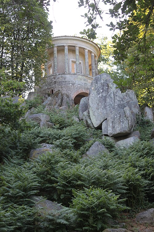 Sur la rive gauche de la Sèvre, des fabriques complémentaires renforcent les perspectives : l'obélisque érigé en 1815, le temple de l'Amitié aménagé à partir d'une ancienne chapelle et doté d'un portique dorique, ainsi que la colonne Henri‑IV surmontée d'un buste du roi. Après la mort de François‑Frédéric Lemot, son fils Barthélémy poursuit les travaux, achevant la villa et réalisant le belvédère, l'escalier monumental, la galerie des Illustres, la colonnade et la glacière.