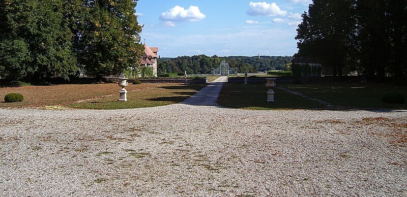 Bâtiment du château y compris les ailes en retour y attenant et les communs Sud ; pigeonnier ; bâtiment des communs Nord symétrique au bâtiment des communs Sud (cad. D 26, 29p) : classement par arrêté du 23 octobre 1964 ; Sols et plantations des jardins, de la cour d'honneur, de l'avant-cour et du potager, y compris les murs, la grille, le saut-de-loup, les statues ; sols de la cour et mare ; façades et toitures de la maison du fermier, de la bergerie et de la charretterie ; grange et bâtiment du pressoir, y compris le tour à piler (cad. D 23 à 26, 28, 30, 203 à 206) : inscription par arrêté du 22 avril 1991