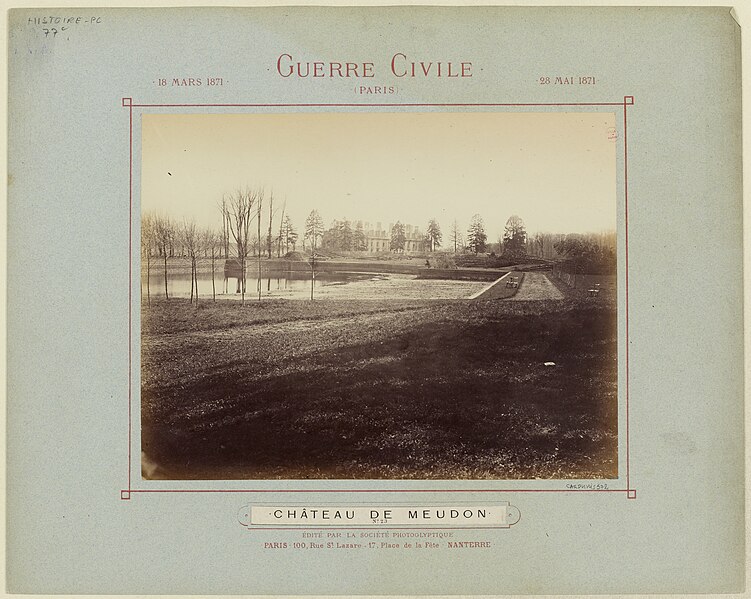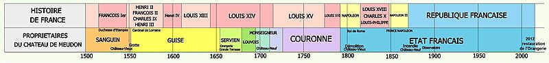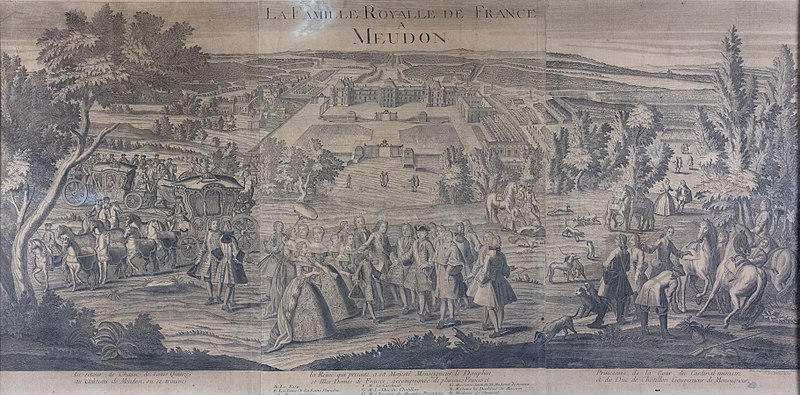 Le domaine de Meudon occupe l'arête d'un plateau dominant la Seine, offrant des vues sur Paris et le vallon de Chalais. Son histoire commence au bas Moyen Âge et se poursuit par d’importantes transformations de la Renaissance au Second Empire. Antoine Sanguin fit édifier un corps de logis vers 1520, ensuite agrandi pour Anne de Pisseleu, puis acquis en 1552 par le cardinal de Lorraine qui confia au Primatice la construction d'une grotte-pavillon et l'aménagement de terrasses et d'éléments décoratifs. Au milieu du XVIIe siècle, Abel Servien fit appel à Louis Le Vau pour un pavillon central, une grande terrasse et une orangerie, puis Louvois entreprit, dans les décennies suivantes, la reprise des façades, l'aménagement des douves, des communs et du chenil, tandis qu'André Le Nôtre dessinait les jardins et la grande perspective. Le Grand Dauphin, propriétaire à partir de 1695, confia à Jules Hardouin-Mansart de nombreuses réalisations : avant-corps, appartements, nouveaux communs, une chapelle et, à l'emplacement de la grotte, l'édification du Château-Neuf entre 1706 et 1709. Le Château-Vieux fut détruit par un incendie en 1795 ; le Château-Neuf subit un incendie en 1871 puis ses vestiges furent partiellement aménagés et transformés, à partir de 1878, pour accueillir un observatoire sur lequel Constant Moyaux intervint, et qui fut rattaché à l'Observatoire de Paris en 1927. Le parc connaît aussi une longue histoire scientifique et aéronautique : une ferme-portique conçue par Henri de Dion pour l'Exposition de 1878 fut réutilisée à Meudon comme hangar pour dirigeables, l'établissement aéronautique militaire de Chalais reçut en 1879 un hangar provenant de la Galerie des Machines, un musée de l'Air y fut créé en 1921 (avant son transfert au Bourget en 1983), une soufflerie réalisée par Gaston Lemarec fut installée en 1934, et l'ONERA poursuit des recherches à Chalais depuis 1946. L'ensemble du domaine national de Meudon est classé au titre des monuments historiques, et le hangar Y du parc de Chalais‑Meudon bénéficie également d'une protection spécifique. Aujourd'hui le domaine est partagé : la partie basse, comprenant la grande terrasse et l'orangerie, est gérée par la ville et ouverte au public ; la partie haute, comprenant l'observatoire, les jardins hauts et les communs, dépend de l'État et de l'Observatoire de Paris et reste en grande partie inaccessible. Plusieurs éléments subsistent et ont été restaurés, notamment l'orangerie principale qui a fait l'objet d'une restauration récente, tandis que la grande terrasse, les communs du Grand Dauphin, le chenil de Louvois et des vestiges du Château‑Neuf témoignent encore de l'ampleur passée du site. Le sous-sol conserve un fort potentiel archéologique : caves et fossés du Château‑Vieux semblent encore en place sous la pelouse, mais aucune fouille exhaustive n'a été menée. Des projets de reconstitution de la Grande Perspective, engagés depuis les années 1980, restent en cours de concertation. Le domaine de Meudon reste ainsi un lieu complexe, mêlant traces monumentales, patrimoines scientifiques et enjeux de gestion partagée entre l'État et la commune.