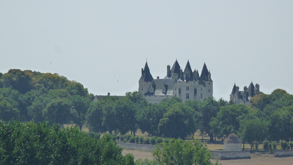 Le domaine de Montpensier, dit aussi Coudray‑Montpensier, est une ancienne châtellenie située sur la route entre Chinon et Seuilly, enclavée au milieu des champs et des vignobles. Son histoire médiévale remonte aux XIe siècle, et la seigneurie a successivement appartenu aux familles de Montsoreau, Marmande, Sainte‑Maure, Bournan, Bourbon, Escoubleau, de Vallière puis Lamote‑Baracé. Le château actuel a été édifié au XIVe siècle, puis considérablement agrandi et embelli au XVe siècle ; les principaux travaux de construction menés par Pierre de Bournan se déroulent entre 1401 et 1422. Jeanne d'Arc y séjourna avant son audience avec le roi à Chinon. Louis, dit le bâtard de Bourbon, puis sa femme Jeanne de France poursuivirent d’importants travaux d’embellissement ; des opérations de maçonnerie sont attribuées à Jean Pourmène entre 1480 et 1490. Une chapelle a été fondée en 1452. Au XVIIe siècle, de nouveaux communs furent édifiés dans la basse‑cour, et au début du XVIIIe siècle Aujubault construisit les écuries et aménagea trois terrasses de jardins au nord du château, avec verger et charmilles, en réalisant notamment des degrés reliant la terrasse au jardin. Des projets d’escalier sont mentionnés en 1771, et des remaniements ont eu lieu au XIXe siècle. Au XXe siècle, l'écrivain Maurice Maeterlinck racheta le domaine vers 1916 ; il fut acquis en 1930 par l'avionneur Pierre‑Georges Latécoère, qui entreprit sa restauration avec les architectes Henri Lafargue et Albert Laprade, en veillant à conserver les structures anciennes et le caractère médiéval. Albert Laprade conserva les divisions générales des jardins tout en donnant aux compartiments un caractère résolument Art déco. Les jardins tombèrent à l'abandon en 1997. Le domaine a conservé, notamment depuis le XVIIIe siècle, l'essentiel de ses limites ainsi que certains éléments tels que le pigeonnier et le verger entouré de charmilles ; des pierres de linteaux et des manteaux de cheminée ont été déplacées au musée Sainte‑Radegonde à Chinon et au château de Seuilly. Le château présente des caractères défensifs médiévaux : douves aujourd'hui sèches, pont‑levis, trois corps de bâtiments couverts d'ardoise disposés autour d'une cour quadrangulaire, châtelet d'entrée au sud, logis principal à l'est, et une aile basse au nord accolée à une tour d'escalier polygonale. Trois tours d'angle flanquées de contreforts, avec chemin de ronde et mâchicoulis, renforcent l'aspect défensif, ces tours étant de tailles inégales. Les comptes de construction de la fin du XVe siècle témoignent d'un chantier important mobilisant un grand nombre d'ouvriers et d'artisans — maçons, tailleurs de pierre, charpentiers et couvreurs — sous la direction de maîtres d'œuvre comme Jehan Pourmène. Le domaine a été partiellement classé au titre des Monuments historiques par arrêtés des 17 février 1995 et 21 janvier 1999. Racheté en 2005 par le Dr Christian Feray et objet de plusieurs campagnes de rénovation, le château est fermé au public depuis 2016.