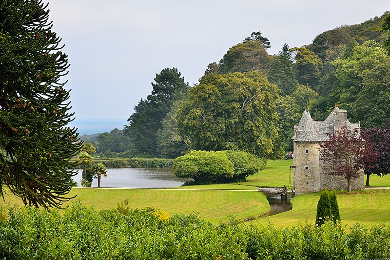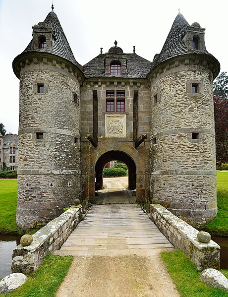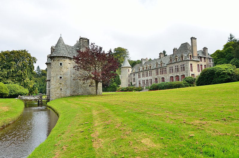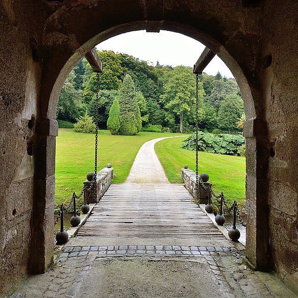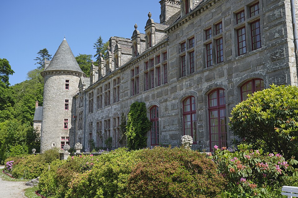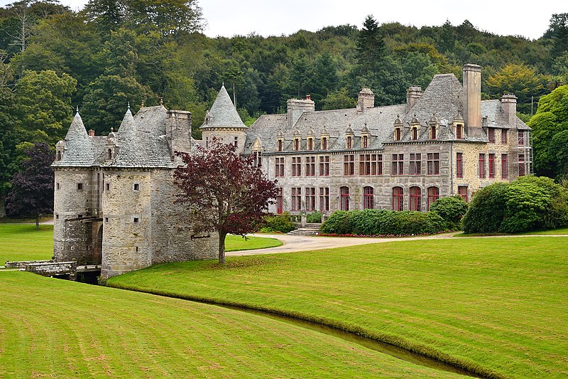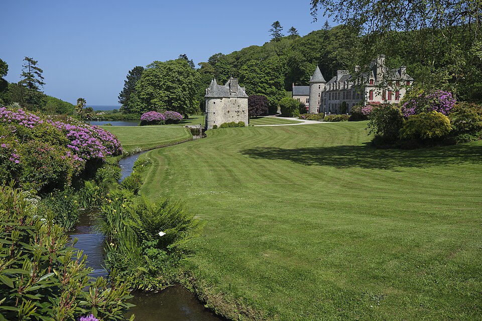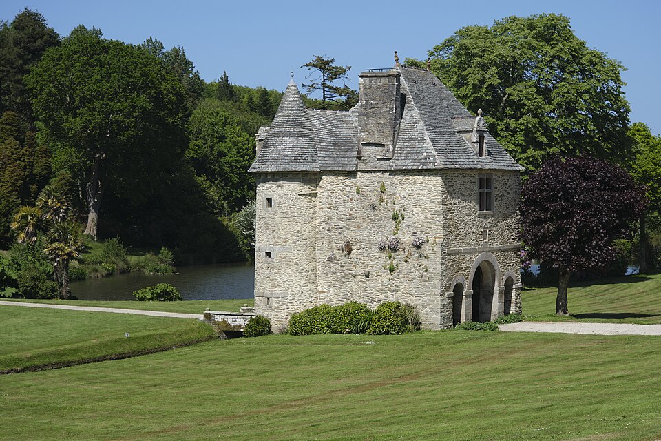 Le domaine de Nacqueville, dit aussi château de Fourneville, est une demeure des XVe–XVIe siècles remaniée au XIXe siècle et partiellement inscrite aux monuments historiques ; il se situe dans le Nord‑Cotentin, sur la commune nouvelle de La Hague, à la limite de Querqueville. La seigneurie résulte de la réunion de deux fiefs voisins, Fourneville et des Marets (ou Marais), à l’origine du manoir appelé château de Nacqueville. Aux XIIIe siècle, la famille Carbonnel est seigneur des Marets, puis la seigneurie est échangée ou vendue à Pierre de Saint‑Gilles en 1505. La portion de Fourneville appartient dès 1501 à Jean de Grimouville, qui entreprend la construction sur l’emplacement du manoir actuel. En 1525, Jean VI de Grimouville épouse Renée de Saint‑Gilles et, vraisemblablement dans la seconde moitié du XVIe siècle, Pierre de Grimouville et son épouse Guillemette d’Argouges achèvent le manoir tel qu’il est parvenu jusqu’à nous. En 1610, les fiefs de Fourneville et des Marets sont réunis en une seule seigneurie. Acquis en 1689 par Bernard Mangon des Marest, le château voit son enceinte défensive rasée l’année suivante, à l’exception de la porterie, et un pavillon est ajouté au logis sur la droite. Lors de la guerre de Sept Ans, des troupes anglaises occupent le château en août 1758, à l’occasion de l’attaque et du pillage de Cherbourg, après un débarquement dans l’anse d’Urville avec 12 000 hommes. Pendant la Révolution, en 1794, le propriétaire Jean‑Baptiste Barbout de Querqueville abrite des royalistes cherchant à gagner l’Angleterre ; il est arrêté, présenté devant le conventionnel Le Carpentier et y meurt. En 1826, Hippolyte Clérel de Tocqueville hérite du château par son épouse Émilie Érard de Belisle de Saint‑Rémy et engage des travaux de restauration ; vers 1830 il fait dessiner un parc paysager par un paysagiste anglais. À la mort d’Hippolyte, le manoir est acheté en 1877 par Hildevert Hersent, qui le modernise, le remeuble et améliore le réseau hydrographique du parc. Pendant la Seconde Guerre mondiale, le château est successivement occupé par des troupes allemandes, notamment issues des jeunesses hitlériennes, puis par un état‑major américain ; en 1945 le parc sert à l’entassement de 60 000 prisonniers et, du 30 juillet à novembre 1945, un programme d’enseignement appelé « Projet Tournesol » est organisé dans la cour sous des tentes pour 632 d’entre eux. En 2018, la propriété appartient à Florence d’Harcourt, arrière‑arrière‑petite‑fille d’Hildevert Hersent. Le château, bâti au XVIe siècle par trois générations de Grimouville, a été transformé au XVIIe siècle et restauré à la fin du XIXe siècle. De l’ancien château médiéval subsiste la porterie, aujourd’hui isolée du corps de logis, encadrée de deux tours rondes coiffées en poivrière et reliée par un long porche charretier surmonté d’une grande fenêtre à meneaux. On lit encore les rainures de l’ancien pont‑levis au‑dessus des anciennes douves, dont une partie reste en eau, et une fenêtre centrale à meneaux porte les armes sculptées du couple de Tocqueville. Le logis Renaissance du XVIe siècle présente un long corps de bâtiment flanqué à gauche d’une tour ronde au toit en poivrière et prolongé à droite par un pavillon ; il est haut d’un étage et éclairé par des fenêtres d’époque surmontées de lucarnes hautes refaites au XIXe siècle dans le style du XVIe. Une inscription gravée sur la façade rappelle le débarquement anglais du 7 août 1758. À l’intérieur subsistent notamment une cheminée Renaissance à double manteau sans hotte soutenue par des consoles et deux pieds‑droits en colonnes engagées ; aux étages, les manteaux sculptés s’inscrivent entre piliers carrés au premier et colonnettes rondes au second. Le parc à l’anglaise, aménagé vers 1830 par un paysagiste anglais pour le comte Hippolyte de Tocqueville, s’étend sur 35 hectares, est traversé par le ruisseau des Castelets et comporte de nombreuses variétés florales, des étangs, cascades et fontaines ainsi que des palmiers, gunneras et autres plantes exotiques. Le domaine comprend par ailleurs un parc plus vaste de 110 hectares qui est classé « site naturel ». Au titre des monuments historiques, la porte et son pont‑levis ainsi que les façades et toitures du château et le parc avec l’ensemble de ses aménagements hydrauliques sont inscrits par arrêté. En juillet 1922, René Le Somptier y tourne le long métrage muet La dame de Monsoreau, dont quelques scènes sont également réalisées au château de Martinvast. Seul le parc est ouvert au public ; le hall d’entrée du château n’est accessible que lors des Journées du patrimoine, où la propriétaire reçoit les visiteurs, et la poterne est également ouverte au public.