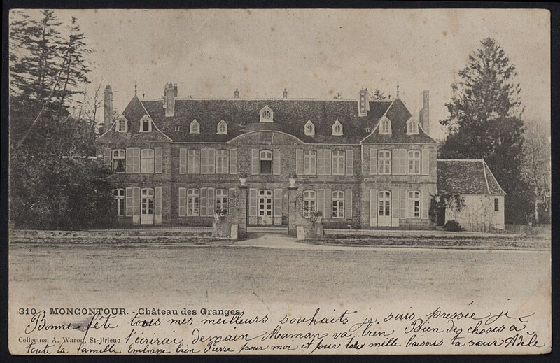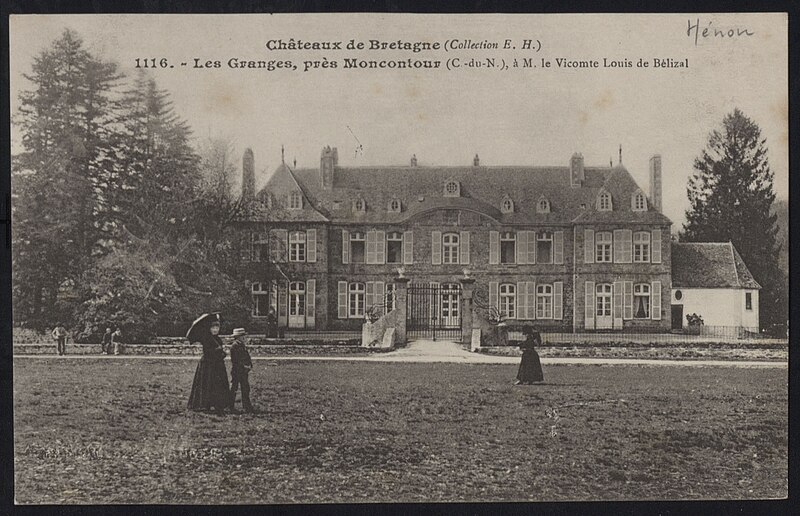 Le Domaine des Granges, situé à Hénon (Côtes-d'Armor), comprend le château dit des Granges. Reconstruit au début du XVIIIe siècle par la famille de parlementaires Le Mintier, le bâtiment se présente en pavillons d'angle sur trois niveaux. Le fief, berceau des Le Mintier en Bretagne depuis le début du XIVe siècle, est rappelé par une pierre portant leur écusson et la date de 1312 enchâssée dans la façade. La cour d'honneur, bordée de douves, communique avec la cour des communs, dont l'accès est marqué par deux pavillons d'entrée. La chapelle attenante a été édifiée au XIXe siècle. Le jardin occupe la partie nord du domaine et le parc s'étend au nord-est ; ce dernier couvre quatorze hectares environ, dont trois en jardins, vergers et tapis verts, et onze en parc boisé structuré par des allées monumentales, une pièce d'eau et un étang. La tradition orale, le Grand Larousse (volume II) et la Gazette illustrée des amateurs de jardins (1914) attribuent ce parc à André Le Nôtre. Le parc a été fortement endommagé lors de la tempête d'octobre 1987. Propriété de la famille de Gouzillon de Bélizal, le domaine est partiellement inscrit au titre des monuments historiques par arrêté du 19 novembre 1992. Sont protégés le corps de logis et la chapelle, l'avenue, les communs et la cour (à l'exclusion de la ferme), l'orangerie, l'esplanade, la cour d'honneur, les douves, ainsi que les jardins et le parc.