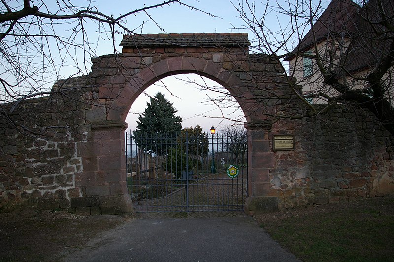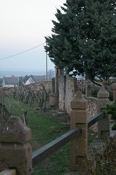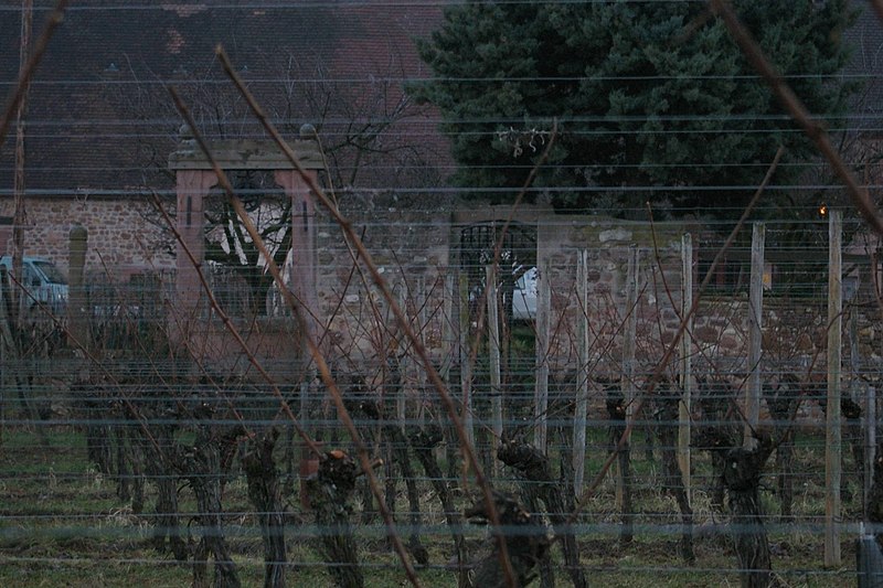 Située au lieu-dit Bouxhof à Mittelwihr, l'ancienne cour domaniale de l'abbaye de Pairis, dite domaine du Bouxhof, est le seul édifice ancien de la commune conservé après les combats de 1944. Rattachée à l'abbaye cistercienne de Pairis (fondée en 1138), la propriété était principalement consacrée à la viticulture et est attestée dès 1168 par le don d'Ulrich d'Eschenbach, qui y désigna un moine économe. Les plus anciens éléments remontent à la fin du Moyen Âge : un mur d'enceinte et un portail cintré datés de 1438, plusieurs bâtiments sont mentionnés en 1464, et la chapelle Sainte-Barbe est citée pour la première fois en 1474. La chapelle fut agrandie et reconsacrée en 1507, puis la ferme et la chapelle furent saccagées et incendiées lors des troubles de 1525. Le domaine connut l'abandon durant la guerre de Trente Ans (1618-1648) et fut restitué aux cisterciens en 1648. Entre 1706 et 1711, les bâtiments en ruine furent détruits et remplacés par l'actuel corps de logis à deux tours ; la chapelle y fut aussi restaurée, et le puits porte le millésime 1707. La dépendance fut reconstruite en 1747, comme l'attestait un ancien linteau, et la maison avait déjà fait l'objet d'une restauration avant la Révolution. En 1791, le domaine comprenait une maison, une chapelle, une grange, des écuries, une cour et un jardin, des vignes, des terres labourables, des prairies et des forêts ; il fut alors vendu comme bien national à Jean David Hanhart, pour plus de 3,5 millions (valeur actuelle). Le Bouxhof changea encore de mains en 1890 (vente au Dr Goettgens), servit de camp pour prisonniers russes pendant la Première Guerre mondiale et tenta d'abriter un restaurant en 1920 sans succès. En 1925, Emile Edel acquit la propriété ; la famille Edel en est toujours propriétaire et y a développé une importante exploitation viticole. Pendant la Seconde Guerre, la dépendance fut très endommagée et a depuis été en grande partie reconstruite ; la porte en accolade du XVIe siècle, restaurée dans la dépendance, provient de la chapelle disparue. Des transformations récentes ont modifié l'élévation nord et la toiture, les occuli du perron ont été remplacés par des baies modernes, et la terrasse actuelle correspond à un vestige de l'ancien alignement. Le domaine a également servi de poste de commandement avancé des troupes américaines en 1944. L'ensemble fait l'objet d'une inscription au titre des monuments historiques depuis 1996.