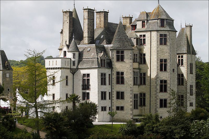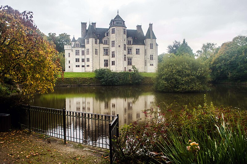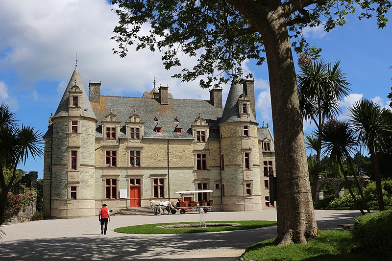 Le château des Ravalet, dit aussi château de Tourlaville, est une demeure de la Renaissance cotentinoise, remaniée au XIXe siècle par la famille de Tocqueville et classée au titre des monuments historiques ; il est également connu pour l’histoire tragique de Julien et Marguerite de Ravalet. Il se situe près de la rivière Trottebec, à environ un kilomètre au sud-sud-est de l’église Notre‑Dame de Tourlaville, dans la commune nouvelle de Cherbourg-en-Cotentin, département de la Manche. Des origines anciennes lui sont parfois attribuées : Charles de Gerville évoque un château primitif vers 780, puis une seconde forteresse, avant la construction du bâtiment actuel en schiste bleu entre 1562 et 1575, restauré en 1859 ; le domaine appartient aujourd’hui à la ville de Cherbourg-en-Cotentin. Des documents médiévaux mentionnent Tourlaville (Torlachvilla) et des seigneurs locaux aux XIIe et XIIIe siècles, tandis que jusqu’au milieu du XVIe siècle le domaine fut partagé en deux fiefs. Le manoir médiéval passa ensuite entre diverses mains ; Jean de la Guette l’acquit avant que, pour résoudre des difficultés financières, la seigneurie ne revienne à la famille d’Estouteville puis aux Ravalet. En 1562 Jean II et Jacques de Ravalet reçurent la fiefferme de Tourlaville et firent édifier, en conservant le donjon, le château Renaissance achevé en 1563 ; au milieu du XVIe siècle la famille possédait de nombreuses paroisses et fit de Tourlaville un vaste domaine. Jean III et Madeleine de La Vigne eurent dix enfants, dont Julien (1582) et Marguerite (1586) ; les amours entre ces deux derniers furent jugées et aboutirent à leur exécution à Paris en 1603, événement qui inspira des aménagements commémoratifs sur le site. Après des successions et des revers financiers, Charles de Franquetot obtint la seigneurie en 1653, améliora l’intérieur puis fut assassiné en 1661 ; son frère Robert hérita ensuite et acheva la construction des communs, avant que le château, transformé en ferme, n’abrite pendant un siècle et demi des métayers et du fourrage. Au XVIIIe siècle le domaine passa dans diverses familles puis, à la fin du siècle, dans la famille Clérel de Tocqueville : Édouard de Tocqueville restaura le château en 1859, Bernard‑Hubert en fut propriétaire un temps, et René Clérel de Tocqueville entreprit d’importants travaux, recréa le parc, fit creuser des étangs, aménagea une turbine et fit construire une grande serre dans les années 1870. En 1910 le château fut vendu à Valentin Lenavettier, servi d’hôpital militaire secondaire pendant la Première Guerre mondiale et changea encore de mains avant d’être acquis par la ville de Cherbourg en 1935. Durant la Seconde Guerre mondiale le château fut successivement occupé par des unités françaises, puis allemandes, puis américaines, et subit des dégâts ; la ville entreprit le nettoyage et des restaurations dès 1946, avec des reprises de travaux dans les années 1960 et 1970. Le corps de logis présente un plan massif et rectangulaire ceint de tourelles d’angle ; deux niveaux de combles datent de la seconde moitié du XIXe siècle. L’ensemble est bâti en schiste bleu du Nord‑Cotentin, les encadrements et soubassements étant en calcaire d’Yvetot‑Bocage. L’intervention d’Augustin‑René de Tocqueville et de l’architecte Gabriel Malençon, à partir de 1871, a façonné l’aspect actuel : façade ouest refaite, chapelle abattue remplacée par une tour ronde, tour carrée ajoutée au nord et pignons percés de grandes fenêtres de style Renaissance ; le pignon oriental conserve une tour carrée d’allure médiévale, crénelée et pourvue d’une échauguette. La façade sud, qui donne sur la cour d’honneur accessible par un pont à trois arches au‑dessus d’une douve, affiche une symétrie autour de bandeaux horizontaux et comprend six fenêtres à meneaux, trois lucarnes et deux portes encadrées de pilastres cannelés ; les deux tours cylindriques qui l’ornent portent blasons et lettres commémoratives. La façade nord, qui domine l’étang, est plus hétérogène, avec tours triangulaire, carrée et octogonale ; la tour‑porte dite des « Quatre‑Vents » abrite un grand escalier d’honneur dont la rampe en fer forgé du XIXe siècle est décorée d’un motif en forme de cœur transpercé. Des vestiges de l’édifice médiéval subsistent : donjon, deux tours rondes, porterie et système de douves, ainsi que la base d’une ancienne tour à l’ouest, que Jean Canu considérait comme l’entrée d’un corridor souterrain. À l’intérieur, le château compte une vingtaine de pièces : la salle des gardes conserve une cheminée monumentale du XVIe siècle et un plafond peint, la salle à manger accueille le tableau Marguerite et les Amours commandé par Charles de Franquetot en 1665, et le premier étage réunit grands salons et la « chambre bleue » octogonale de la tour sud‑est, décorée et associée à la mémoire de Marguerite de Ravalet. Le parc, qui couvre quatorze hectares, a été redessiné en 1872 avec deux étangs, une grotte et une serre construite dans les années 1870 et restaurée en 2001 ; René de Tocqueville y introduisit de nombreuses plantes exotiques, aménagea le réseau d’eau et fit installer une usine électrique sur le Trottebec pour éclairer des réceptions. Le site est inscrit comme « site naturel inscrit » pour la vallée du Trottebec et le château, avec ses vestiges, le parc délimité et plusieurs éléments (grottes, arcades, anciennes communs, vasques, serre, avenue, système hydraulique, turbine et vestiges du moulin), est classé au titre des monuments historiques par arrêté du 4 mars 1996. Le parc est ouvert au public depuis 1960 et labellisé Jardin remarquable ; des aménagements contemporains, dont le jardin Mandala et la Prairie en îles conçus par Gilles Clément, y ont été réalisés e