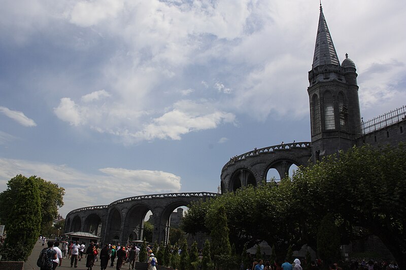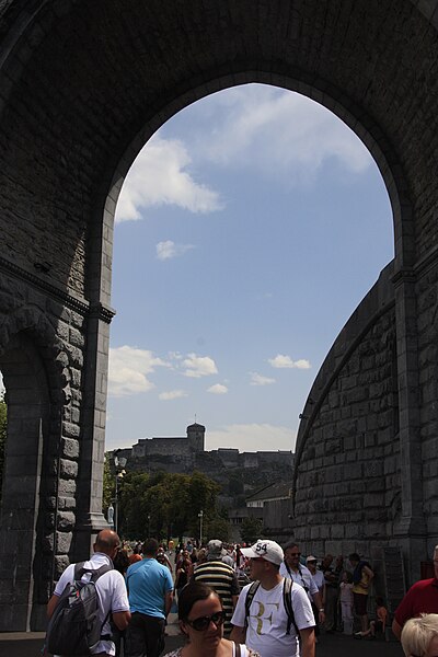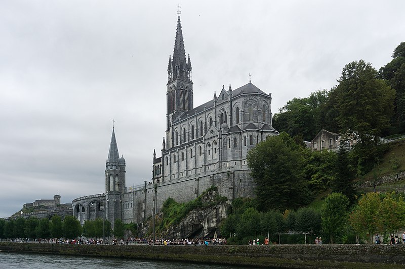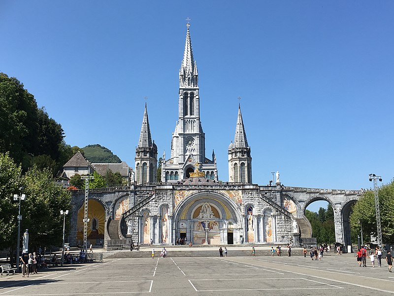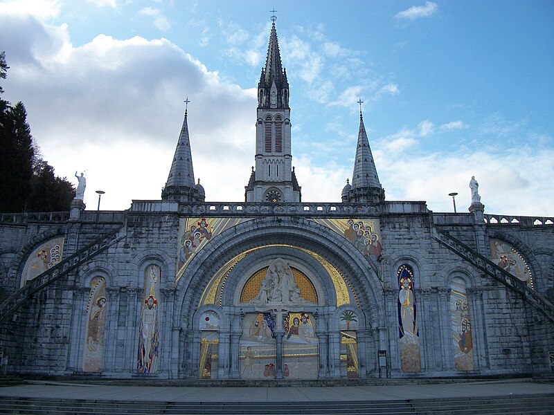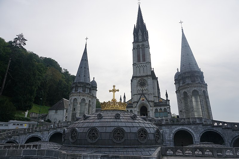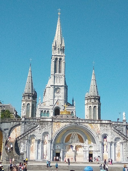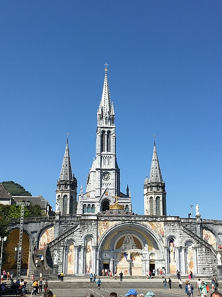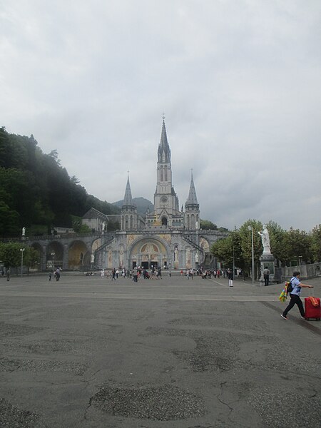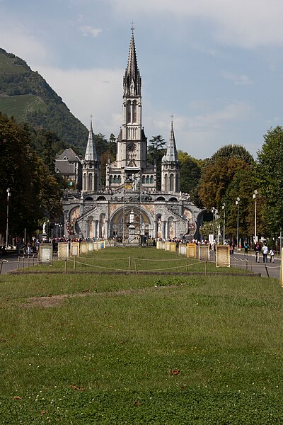 Le domaine du sanctuaire de Lourdes, situé à Lourdes dans les Hautes-Pyrénées, est un sanctuaire catholique et lieu de pèlerinage marial organisé autour des apparitions rapportées par Bernadette Soubirous entre le 11 février et le 16 juillet 1858, apparitions reconnues par l'Église. Sur ce domaine de 52 hectares traversé par le Gave de Pau se trouvent la grotte de Massabielle, point central des apparitions, ainsi que plusieurs basiliques, chapelles, lieux de prière, des fontaines, des piscines, des cheminements de dévotion, une prairie et des bâtiments d'accueil pour les malades. La construction du premier sanctuaire, attribuée à l'architecte Hippolyte Durand, a abouti à la basilique de l'Immaculée-Conception, implantée au-dessus d'une crypte et dominant la grotte. La basilique du Rosaire, conçue dans un plan romano-byzantin, complète l'ensemble et la basilique souterraine Saint-Pie‑X, conçue par Pierre Vago avec la collaboration de Pierre Pinsard et étudiée par l'ingénieur Eugène Freyssinet, offre une vaste capacité d'accueil souterraine. Cette dernière, construite pour le centenaire des apparitions, libère l'espace intérieur des piliers et permet le rassemblement de très grands rassemblements autour d'un autel central, tandis qu'en surface elle se signale par une large pelouse ovoïde.