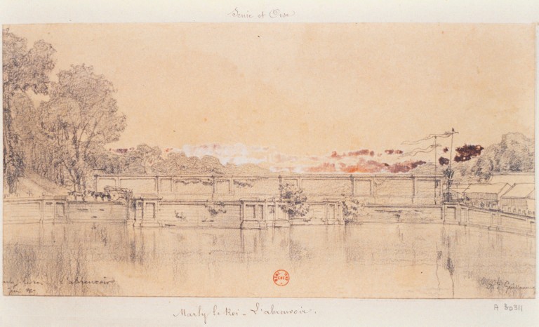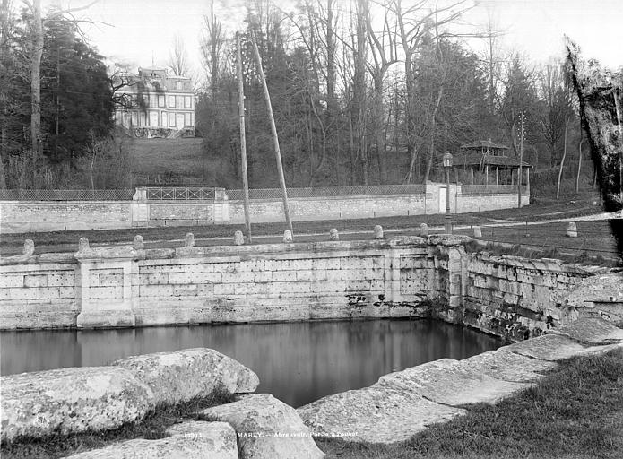 Le domaine de Marly, situé à Marly-le-Roi en bordure de la forêt de Marly, a été confié à Jules Hardouin-Mansart par Louis XIV et aménagé à partir de 1679 comme retraite royale. Le château comprenait treize pavillons disposés en deux rangées de six, précédant le pavillon du roi, dit « du Soleil » ; ce pavillon et huit autres furent achevés en 1680, le reste en 1686. Des offices furent ajoutés en 1685, des communs et des écuries en 1687, puis une chapelle entre 1687 et 1689. Situé à l'intersection des deux axes du parc, le pavillon du roi avait un plan en croix grecque : quatre vestibules au milieu de chaque façade donnaient accès à un salon central octogonal sous coupole, et toutes les façades étaient ornées d'architectures en trompe-l'œil et de sculptures feintes. La création de la Rivière date de 1697-1698 et, à partir de 1698, l'abreuvoir fut réalisé en aval du parc. Louis XV fit réaménager les pavillons et d'autres aménagements furent entrepris sous Louis XVI. Pillé pendant la Révolution, le domaine fut vendu comme bien national en 1799 à l'industriel Sagniel, qui démolit progressivement les bâtiments ; les ruines furent acquises par la Maison Impériale en 1811 et le château fut détruit au début du XIXe siècle. Sous le Second Empire, Napoléon III fit implanter plusieurs maisons forestières et réunit la forêt de Marly à celle de Saint-Germain, tandis que des batteries et le fort du Trou de l'Enfer furent installés sur le plateau pour la deuxième ligne de défense de Paris. La remise en valeur du site commença en 1922 ; les ruines subsistèrent jusque vers le milieu du XXe siècle et des châteaux d'eau furent construits au cours de la première moitié du XXe siècle. Aujourd'hui restent notamment des bassins, des réservoirs, des châteaux d'eau, l'abreuvoir et des portes de villas à Marly-le-Roi. Le domaine national, géré par l'Établissement public du château, du musée et du domaine national de Versailles, conserve les grands alignements d'origine et le tracé au sol du château ; l'abreuvoir en aval présente toujours ses deux bassins surmontés de copies des Chevaux de Marly. La machine de Marly, qui alimentait en eau les bassins de Marly et de Versailles, se trouvait en réalité à Bougival. De nombreux éléments sculptés originaux du parc sont aujourd'hui exposés dans la cour Marly du musée du Louvre. L'abreuvoir de Marly fut classé au titre des monuments historiques en 1862, d'autres éléments le furent en 1928 et la totalité du domaine a été classée le 28 juillet 2009. Jusqu'en 2009, le domaine a également été utilisé comme résidence de la présidence de la République. Le Musée du domaine royal de Marly présente l'histoire du site à son apogée sous Louis XIV, son évolution sous Louis XV et Louis XVI, et évoque des figures et artistes liés au lieu, tels Madame du Barry, François Boucher, Élisabeth Vigée-Lebrun et Claude-Nicolas Ledoux. Le parc, en pente sur un versant sud de la Seine, s'ouvre au sud sur le centre de Marly, est contigu à l'ouest à la forêt domaniale de Marly et se situe à proximité à l'est de la forêt de Louveciennes, séparée par la route de Versailles. L'accès au domaine est protégé par la grille royale et des portes de l'ancien château, comme la porte d'honneur et la porte du Phare. Des découvertes archéologiques, dont un pavillon des bains et deux bassins carrelés en faïence destinés à accueillir des carpes, témoignent des spécificités du site.