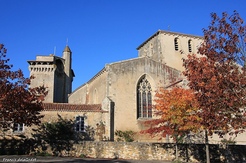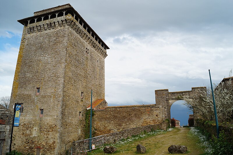 Le château fort de Bazoges-en-Pareds a été reconstruit au XIVe siècle sur les vestiges d'une fortification plus ancienne et englobait autrefois l'église paroissiale dans son enceinte. Le donjon, daté des années 1380, est entouré de fossés secs et accompagné d'un pigeonnier du XVIe siècle. Il comporte huit niveaux (numérotés 0 à 7), dont sept étages de salles superposées, certaines voûtées et dotées de belles cheminées. L'église présente deux campagnes de construction, aux XIIe et XVe siècles, correspondant aux nefs accolées, et sa base de clocher repose sur une coupole sur trompe. Dans la chapelle seigneuriale, des culots sculptés portent des armes évoquant les familles liées au château.