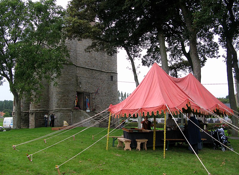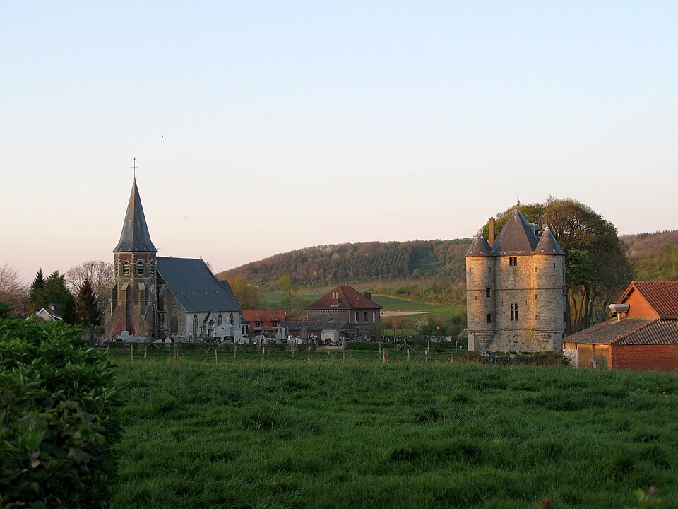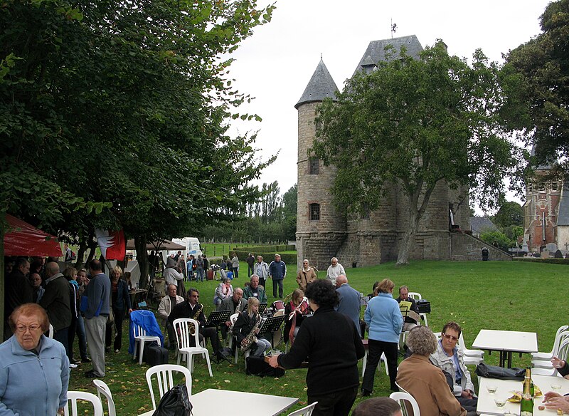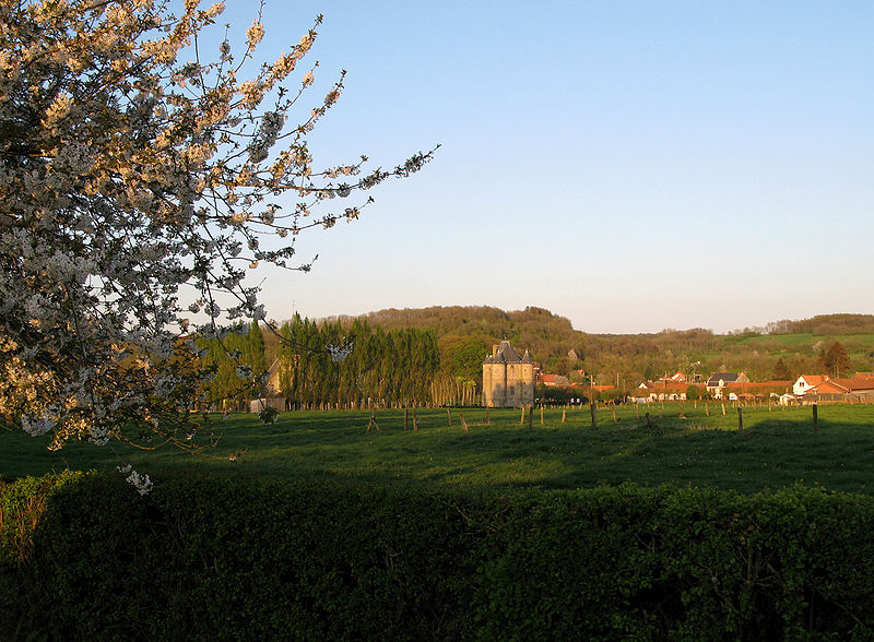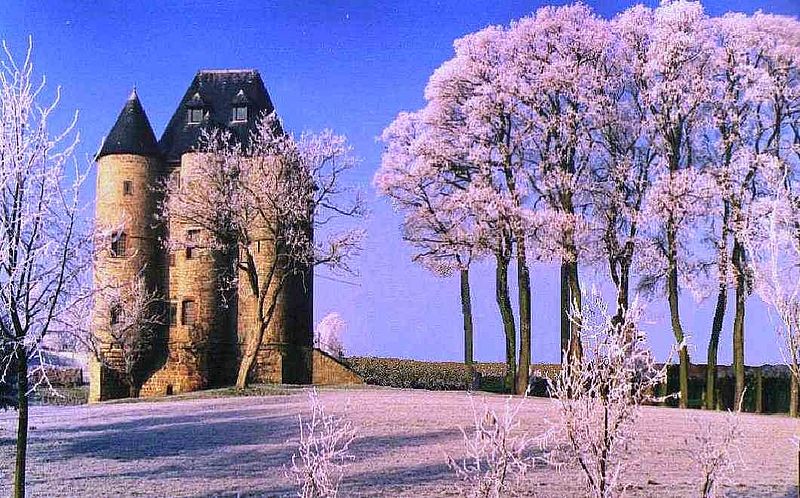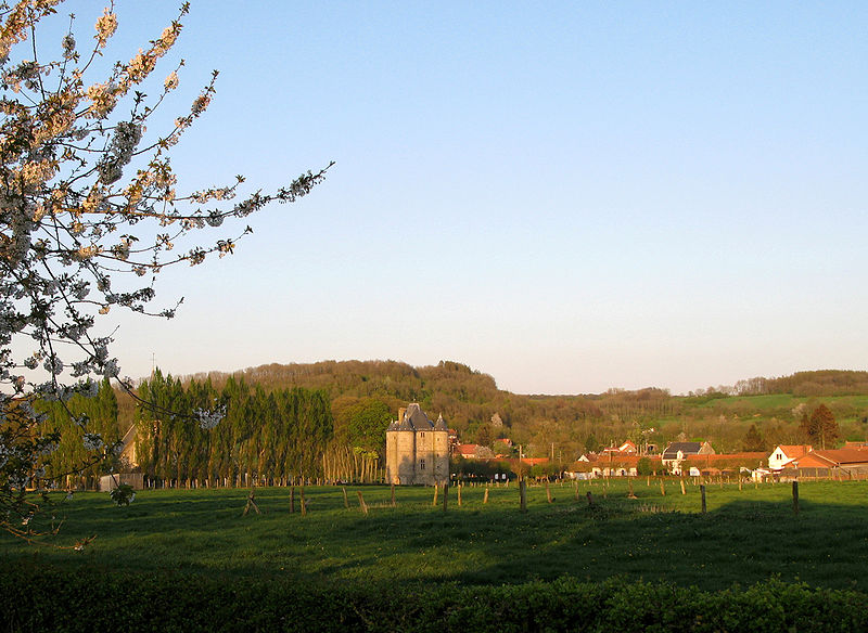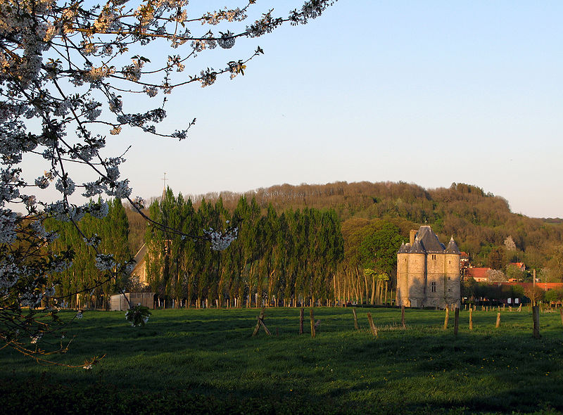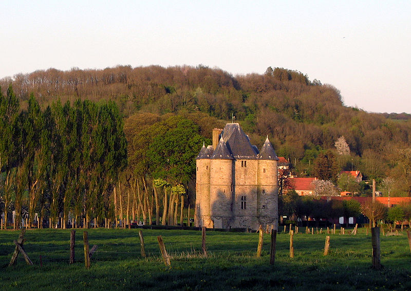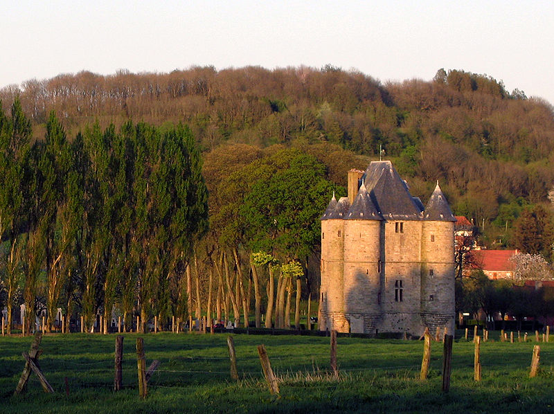 La tour, entièrement en grès d'Artois et adossée à l'ancienne motte féodale, présente une base carrée flanquée de six tourelles cylindriques en encorbellement — quatre aux angles et deux au milieu des faces nord et sud — toutes coiffées de toits en poivrière et de diamètre dégressif. Plus on s'éloigne de l'entrée, plus les tourelles ont un diamètre important, ce qui confère un aspect massif à cet édifice modeste. Malgré son allure robuste, il s'agit d'un logis d'apparat destiné principalement à l'habitation de la famille noble, comme l'atteste l'épaisseur relativement faible des murs des tourelles. Les éléments défensifs sont peu nombreux : traces d'anciennes douves en eau, archères dans la cave et présence d'un assommoir à l'entrée, l'accès se faisant autrefois par un pont dormant. Sobre et sans décor abondant, la maison-forte était à l'origine intégrée à un ensemble castral typique d'une seigneurie moyenne de l'Artois, composé d'une haute-cour avec jardin et d'une basse-cour agricole aujourd'hui détruite.