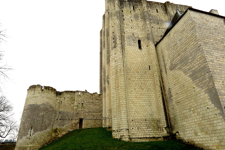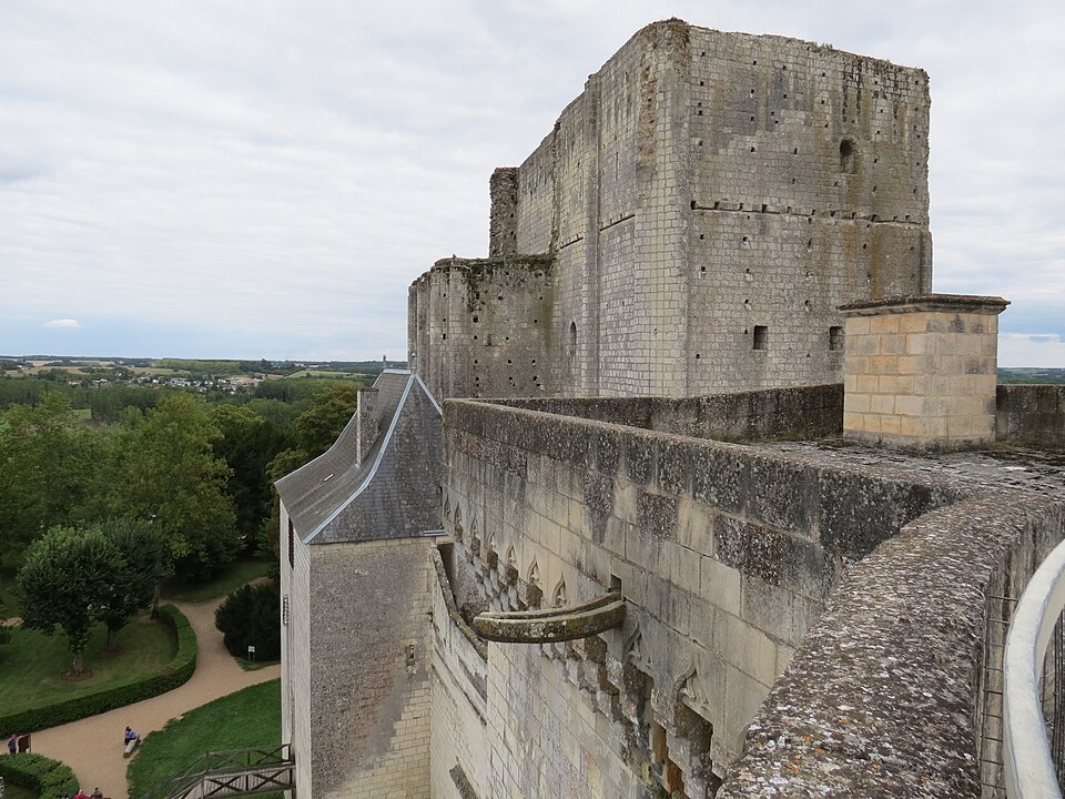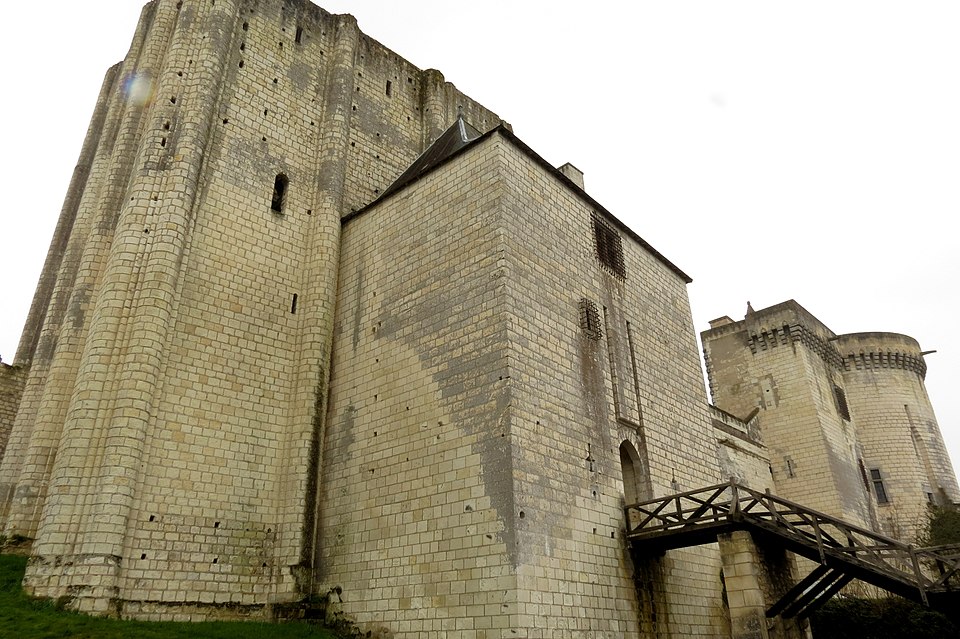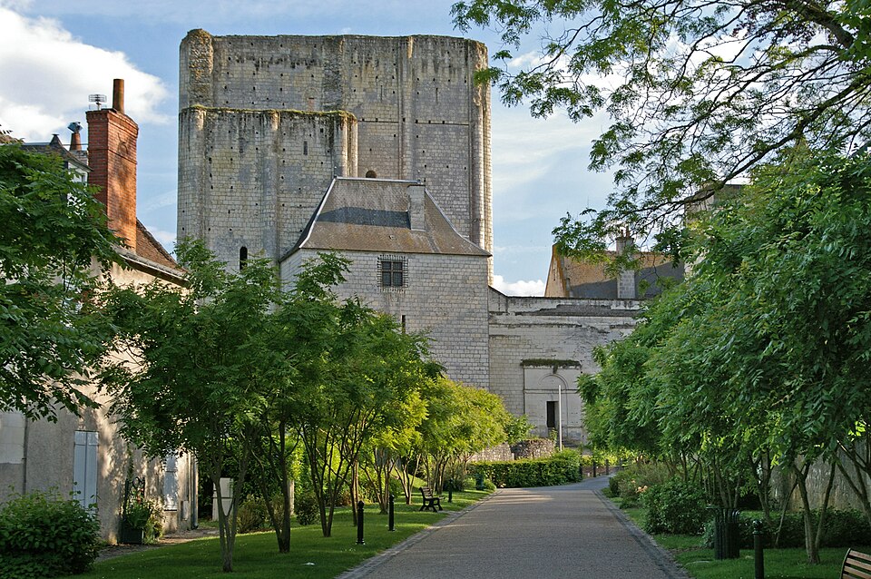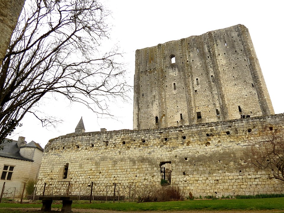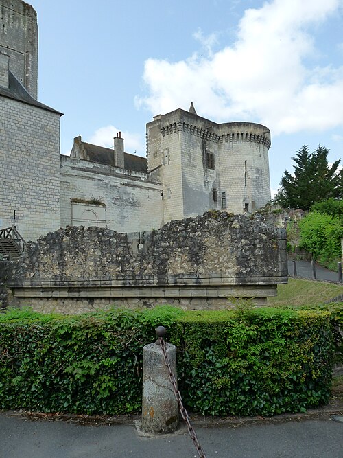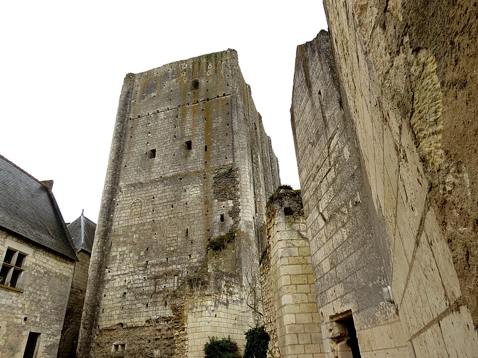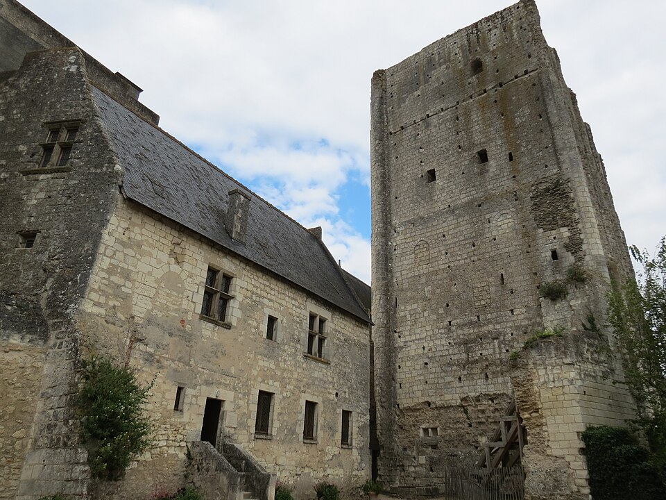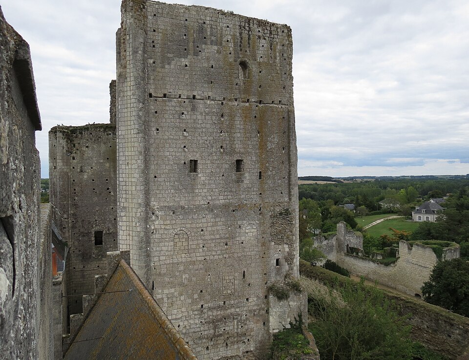 La place de Loches a été un enjeu entre les maisons d'Anjou, de Blois et, plus tard, entre Plantagenêts et Capétiens ; elle s'inscrit dans un réseau de forteresses dispersées en Touraine pour contrôler cette zone frontalière. Henri II Plantagenêt fit élever les remparts et les douves entourant la ville haute, et les Plantagenêts ajoutèrent des tours ; Philippe Auguste reprit le donjon aux Plantagenêts en 1205, et Loches intégra alors le domaine royal. Saint Louis acquit le donjon en 1249 et le château demeura une résidence royale jusqu'au XVe siècle ; d'importants travaux de remise en état des fortifications, du pont-levis et du donjon sont relatés pour 1358-1359. Charles VII séjourne fréquemment au château et y reçoit Jeanne d'Arc en mai 1429.