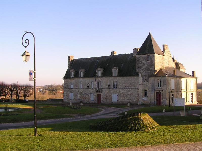Le corps de logis, élevé sur les vestiges médiévaux, fut transformé au XVIIe siècle : Henri Ier d'Albret fit construire un manoir vers 1630, puis César Phébus d'Albret l'agrandit à partir de 1652 en lui donnant une largeur plus importante et deux étages sur caves voûtées ; la partie centrale menaçant ruine fut démolie en 1816. La façade sud, portée par une galerie d'arcades, laisse apparaître en retrait les soubassements du château médiéval et s'ouvre sur le jardin public aménagé en terrasses. Deux plafonds peints du XVIIe siècle, l'un dit « oratoire » dans une petite salle du rez-de-chaussée de la tour carrée, l'autre dans une grande salle basse de la partie centrale, ont été protégés : le premier présente Vénus sur un char tiré par des colombes et des angelots dans les panneaux d'angle, le second est un plafond à caissons moulurés de style Louis XIII.
