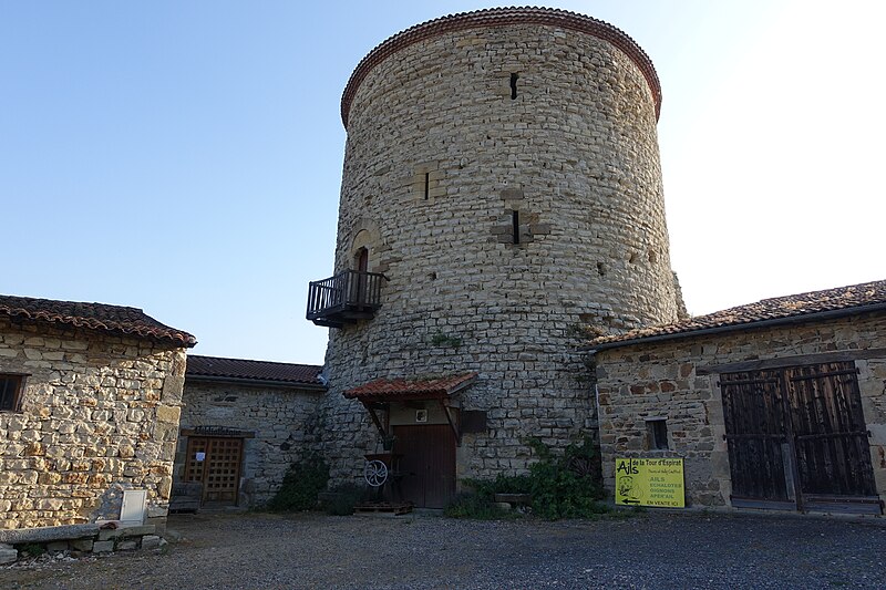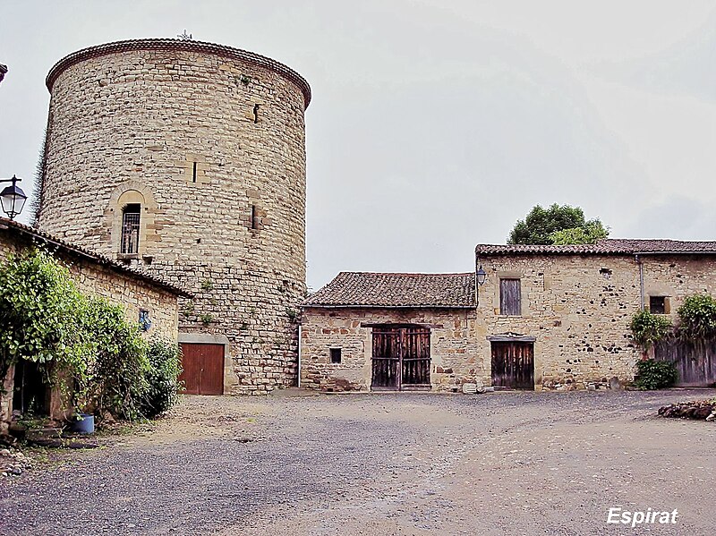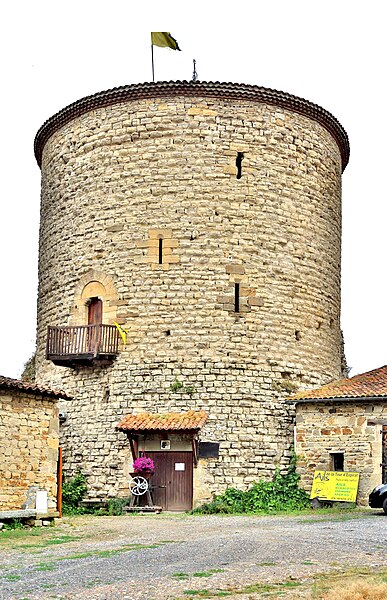 De l'enceinte castrale subsistent d'importants éléments de muraille et une tour dont l'entrée, conformément aux dispositions coutumières de ce type d'ouvrage défensif, se situe au premier étage. Le donjon, implanté à l'angle nord-est, est, avec ceux de Montpeyroux et de La Sauvetat, l'unique exemple de donjon de place-forte conservé dans la région. L'ouvrage se présente sous la forme d'une tour cylindrique dont la base se trouve à plusieurs mètres au-dessus du sol. Un pont-levis ou une galerie mobile donnait accès à l'étage d'entrée. Les extrémités de poutres s'encastrent dans trois trous carrés encore visibles sous l'assise de la porte en plein cintre ; le tympan, taillé dans une seule pierre, est soutenu par deux corbelets et légèrement en retrait. Le donjon a été découronné et ramené au niveau du second étage ; les voûtes du rez-de-chaussée et du premier étage ont été démolies. Il ne subsiste que des vestiges de l'escalier primitif qui reliait le premier étage au couronnement. La tour est percée de petites ouvertures, archères et meurtrières.