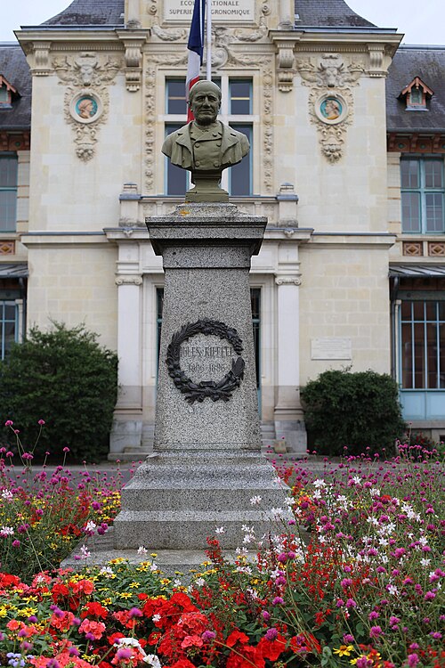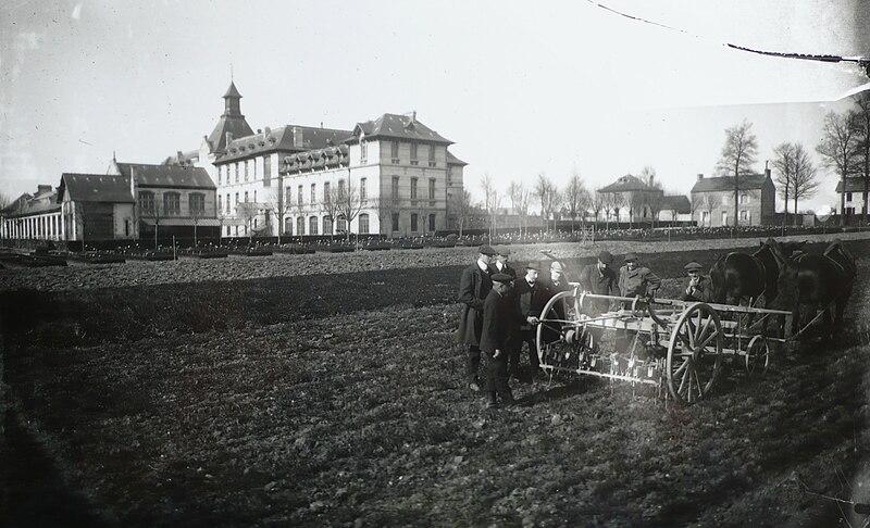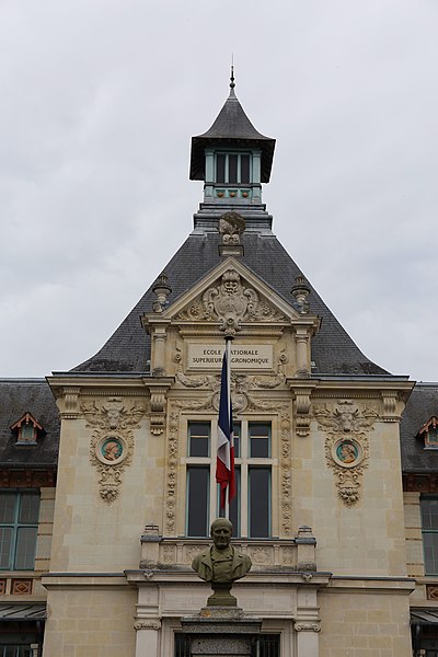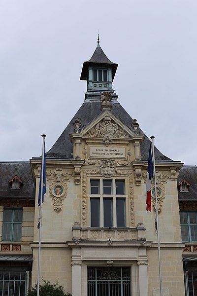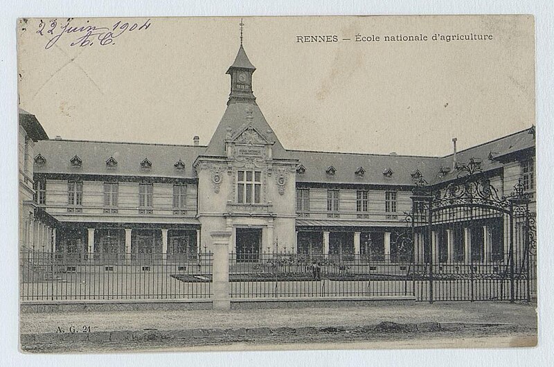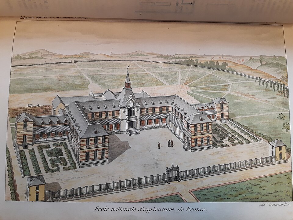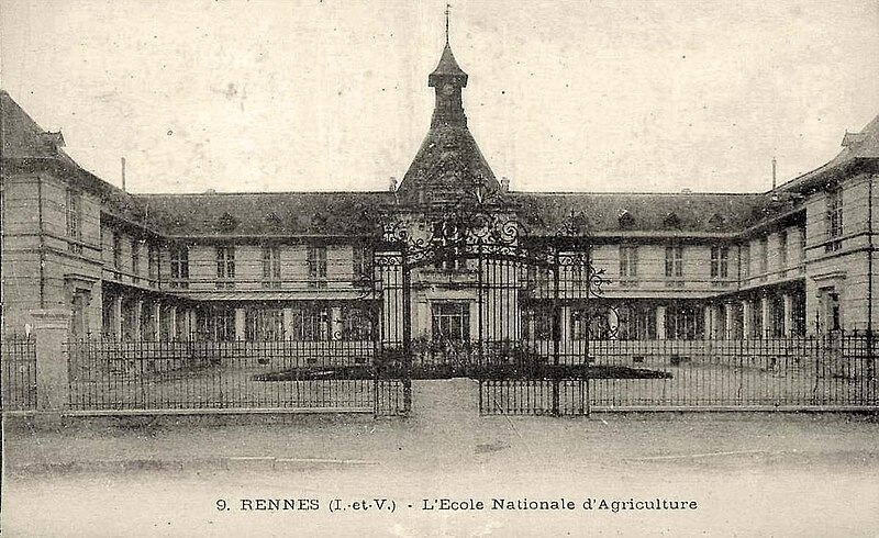 Le bâtiment principal de l'école, construit par Jean‑Marie Laloy en 1896, se caractérise par la monumentalité et l'équilibre de son corps central. Son implantation entre le centre‑ville de Rennes et les axes routiers vers Brest et Saint‑Brieuc en fait un repère urbain important. Selon M. Blanchon, l'établissement aurait été construit en 1893 et inauguré le 12 août 1896 ; pendant la Première Guerre mondiale il fut transformé en hôpital militaire puis rouvrit en novembre 1919. Après la guerre, l'ingénieur Maitrot et l'architecte Pierre Laloy reprirent les projets de la ferme expérimentale et, à partir de 1920, de nombreux bâtiments furent ajoutés, notamment hangars, étable avec écurie, grenier à grains, locaux de préparation, salle de zootechnie, infirmerie, logements, entrepôts et une galerie des machines. L'ensemble atteignit alors 31 hectares avec champs d'expériences, chaire d'agriculture, jardin potager et arboretum, et un internat coopératif géré par les élèves fut installé dans un bâtiment désaffecté de l'école d'enseignement féminin, donnant naissance à la « ruche agricole ». Pierre‑Jack Laloy dessina les plans de la ferme‑modèle. Les permis signalent la construction de logements en 1949 sur des plans de Pierre‑Edme Derrouch et d'une salle de sport en 1965 par l'agence Derrouch et Rual. Sous la direction de Paul Matagrin, une cité annexe fut ouverte en 1968 et, entre 1970 et 1985, de nombreux laboratoires furent édifiés derrière le bâtiment principal dit « La Masure ». Depuis les années 1980, les bâtiments de la ferme ne servent plus à leur usage initial : l'ancienne porcherie est utilisée pour le stockage et l'étable a été aménagée en locaux de loisirs pour les étudiants et en bureaux pour l'INRA en 1991. Dès 1993, le ministère de l'Agriculture programma des travaux de restauration de l'ensemble du site. L'établissement trouve ses origines à Grand‑Jouan (Nozay), où Jules Rieffel créa en 1830 une ferme‑école qui évolua en institut agricole puis fut nationalisée pour devenir école régionale puis école nationale d'agriculture. Transférée à Rennes en 1894, l'école s'installa sur un domaine de 17 hectares au 65 rue de Saint‑Brieuc ; le bâtiment d'honneur de 1896 est inscrit au titre des monuments historiques, avec la protection de ses façades et toitures, de galeries vitrées, de deux cages d'escalier, de la bibliothèque, de la salle des thèses, du hall d'honneur, de la grille et de la cour d'honneur où se trouve le buste de Jules Rieffel. En 1962 l'établissement devint école nationale supérieure agronomique de Rennes, habilitée par la suite à délivrer le doctorat. L'École nationale supérieure féminine d'agronomie (ENSFA), créée en 1964, prit place dans les locaux de l'ENSAR et partagea personnels et services tout en développant des options de spécialisation et des stages à l'étranger. L'Institut national supérieur de formation agroalimentaire (INSFA) prit en 1992 sa dénomination et l'établissement obtint l'habilitation à délivrer le diplôme d'ingénieur en 1991, la formation s'organisant alors sur cinq ans. En 2004 les formations agronomiques et agroalimentaires furent regroupées sous le nom d'Agrocampus Rennes, qui absorba en 2006 le site de Beg‑Meil à Fouesnant. Le 1er juillet 2008 Agrocampus Rennes fusionna avec l'Institut national d'horticulture d'Angers pour former Agrocampus Ouest, implanté à Angers et à Rennes ; cet ensemble rejoignit en 2020 l'Institut Agro et adopta en 2022 la dénomination Institut agro Rennes‑Angers. Depuis 1946, l'INRA s'est progressivement installé autour de l'école, qui participe à l'école doctorale rennaise « Vie‑Agro‑Santé » et délivre des diplômes d'ingénieur en agronomie et en agroalimentaire, les spécialités horticulture et paysage étant proposées à Angers. Dès le XIXe siècle, l'enseignement était réparti en chaires couvrant agriculture, économie rurale, zootechnie, botanique, arboriculture, génie rural, chimie et physique ; aujourd'hui la dernière année laisse place à des spécialisations professionnalisantes, complétées par un stage et la soutenance d'un mémoire. L'histoire de l'établissement se reflète également dans la diversité de ses enseignants, chercheurs et anciens élèves, qui ont marqué les domaines de la recherche, de l'enseignement, de la politique et de la culture.