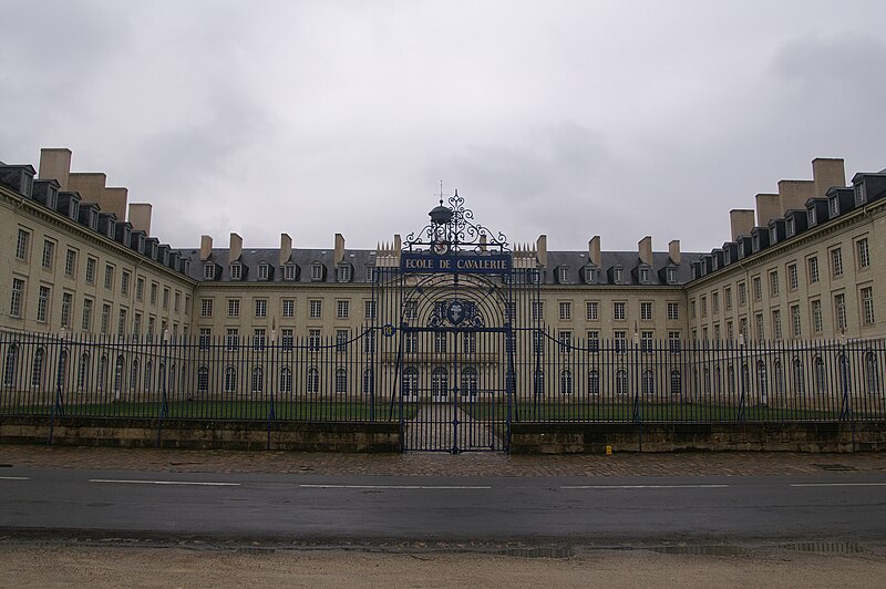 Ancienne caserne du Corps Royal des Carabiniers (cad. AM 84) : inscription par arrêté du 3 février 1971 - Bâtiments suivants de l'école de cavalerie, dépendant de l'école d'application de l'Arme Blindée Cavalerie : 1/ en totalité, les bâtiments suivants : le manège Kellermann -1834-, à l'exception des sols (à usage de gymnase) (cad. AM 77) ; le manège des Ecuyers -1767 et 1861- (cad. AM 79). 2/ façades et toitures des bâtiments suivants : le manège-écurie Moshowa -1769- (cad. AM 75) ; les écuries du Manège -1827 à 1840-, le manège Lasalle -1875 à 1877-, le magasin à fourrages -1867, y compris charpentes, structure portante et escalier intérieur-, le manège Montbrun -1768, incendié et "reconstruit" en 1866-1867-, les anciennes écuries de Bouvines -1878-1882-, les anciennes écuries d'Isly -1886-, les anciennes écuries de Denaim -1865-1866-, les anciennes écuries de Valmy -1862-, les anciennes écuries Texel -1861- (cad. AM 77) ; le manège Margueritte -1907- (cad. AM 157) (l'ensemble de ces bâtiments délimite la place du Chardonnet, cf. plan annexé à l'arrêté) : inscription par arrêté du 13 octobre 2000 - Les bâtiments suivants, dépendant de l'Ecole d'Application de l'Arme blindée Cavalerie : 1/ En totalité : le magasin à fourrages (cad. AM 77) ; le "Nouvel Hôtel du Commandement" (cad. AM 81) , avec sa parcelle d'assiette (parc) et ses murs et grilles de clôture. 2/ Pour leurs façades et toitures : l'ancienne infirmerie (actuel mess des officiers (cad. AM 82) , avec ses deux pavillons d'entrée et sa clôture sur l'avenue Foch ; les bâtiments vétérinaires (cad. AM 159) ; les écuries-conciergerie du "Nouvel Hôtel du Commandement" (cad. AM 81) ; les clôtures (grilles, portail monumental, pavillons de garde) visibles depuis l'avenue Foch (cad. AM 82, 159) : inscription par arrêté du 22 septembre 2005