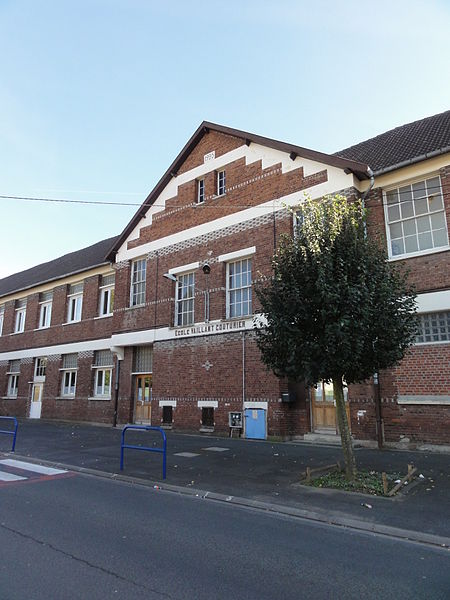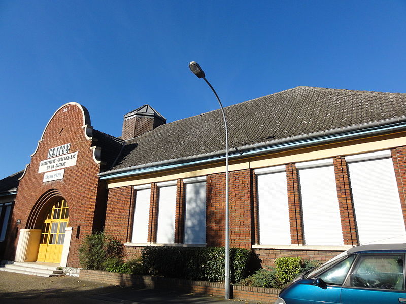 La Compagnie des Mines de Drocourt entreprit, après la Seconde Guerre mondiale, la reconstruction de la cité Nouméa, autour de la fosse n°2. Les architectes Duval et Gonse, qui avaient déjà établi en décembre 1927 des plans d'extension de l'école des filles et envisagé en mai 1930 l'aménagement de la place autour de l'église, furent chargés d'agrandir cet établissement et de bâtir des annexes paroissiales encadrant l'église Saint-Louis. L'école des filles est un édifice antérieur datant de la fin du XIXe siècle ; elle a été étendue par la construction d'une aile placée en vis‑à‑vis de la façade de l'église pour accueillir quatre classes enfantines séparées par un vestibule central. Le groupement architectural de la cité place l'église Saint-Louis au cœur de l'organisation urbaine, constituant l'axe principal autour duquel s'articulent l'école et les annexes paroissiales. L'ensemble scolaire comprend deux bâtiments, l'un daté de 1895 et l'autre de 1930-1931 ; leurs façades et leurs toitures ont fait l'objet d'une inscription au titre des monuments historiques le 22 septembre 2010. La cité Nouméa, l'église Saint-Louis, ses presbytères et les écoles des filles et des garçons ont également été inscrites dans la liste des biens du Bassin minier inscrits au patrimoine mondial de l'Unesco le 30 juin 2012. Implantée à Rouvroy, cette école s'inscrit dans le contexte plus large du site minier de la fosse n°2 et de ses cités ouvrières. Aujourd'hui, l'ancienne école de filles accueille le centre d'activités culturelles et de loisirs Marie‑Curie.