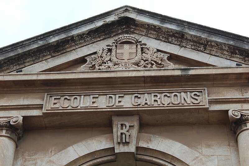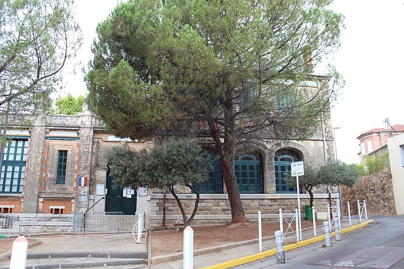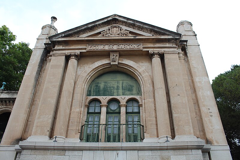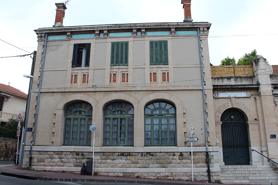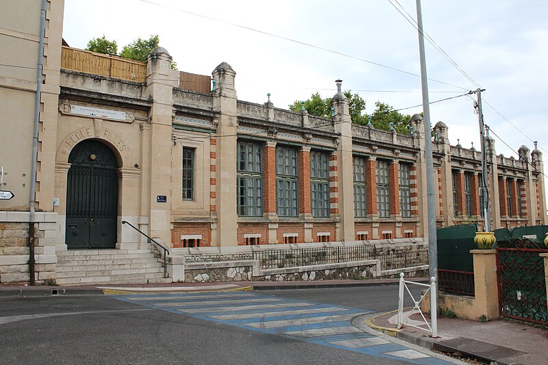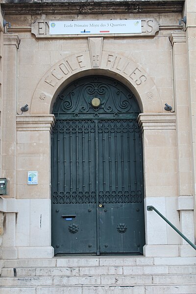 L'école élémentaire des Trois-Quartiers se situe à Toulon, dans le quartier de La Loubière, dans le Var (Provence‑Alpes‑Côte d'Azur). Elle a été construite entre 1905 et 1907 par l'architecte Charles Maurel et inaugurée en 1908. La décoration sculptée et en céramique, réalisée la même année, associe la sculpture d'Émile Reynier aux céramiques de la maison Boulenger et Cie posées par le sculpteur Rossi. L'ensemble de l'école, y compris le sol de la cour et la parcelle, est inscrit au titre des monuments historiques par arrêté du 10 décembre 2007. Le bâtiment adopte un plan en U, fermé au sud par un portique encadré de deux avant-corps traités à la manière d'un temple antique, avec un fronton soutenu par des colonnes ioniques. Les trois ailes qui accueillent les salles de classe s'articulent avec des pavillons d'angle d'un étage, conçus pour le logement des maîtres. Les façades des ailes sont rythmées par des piliers et ornées de carreaux de céramique à motifs. Les façades nord des pavillons présentent de grandes arcades en plein cintre surmontées de petites arcades jumelées. Au sommet des quatre façades des pavillons courent des bandes de céramique bleue et bordeaux disposées entre des agrafes sculptées.