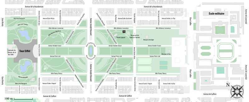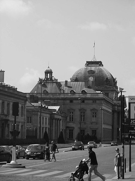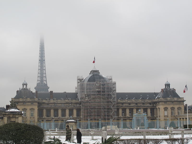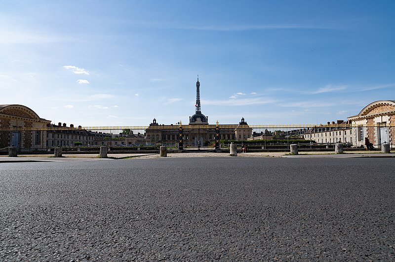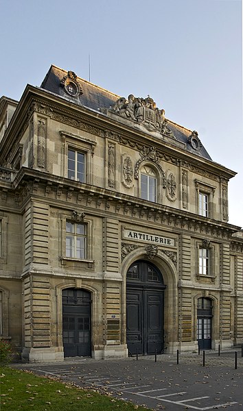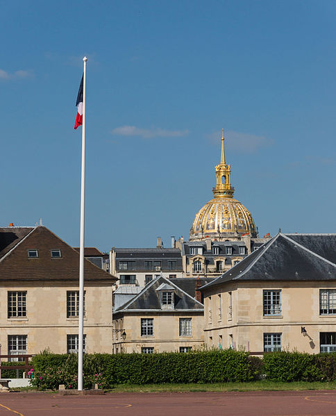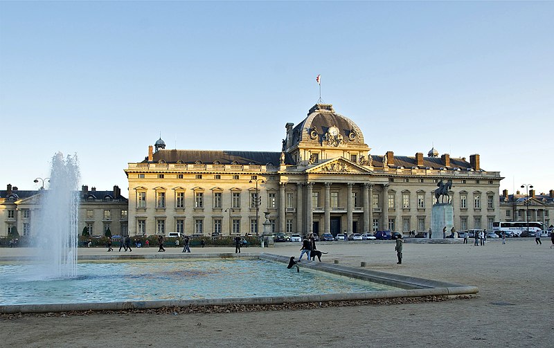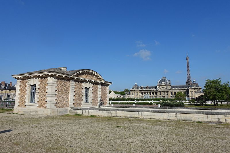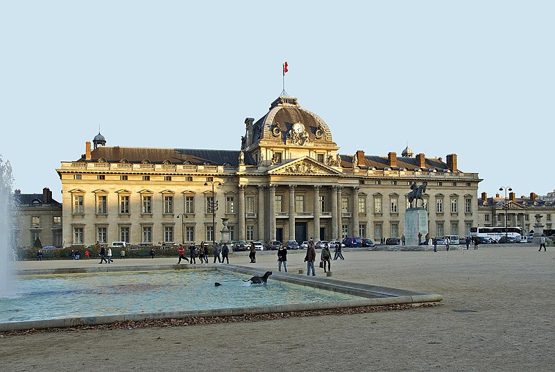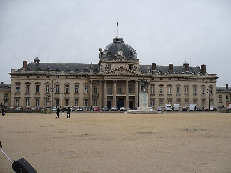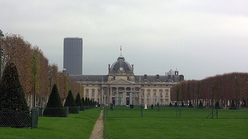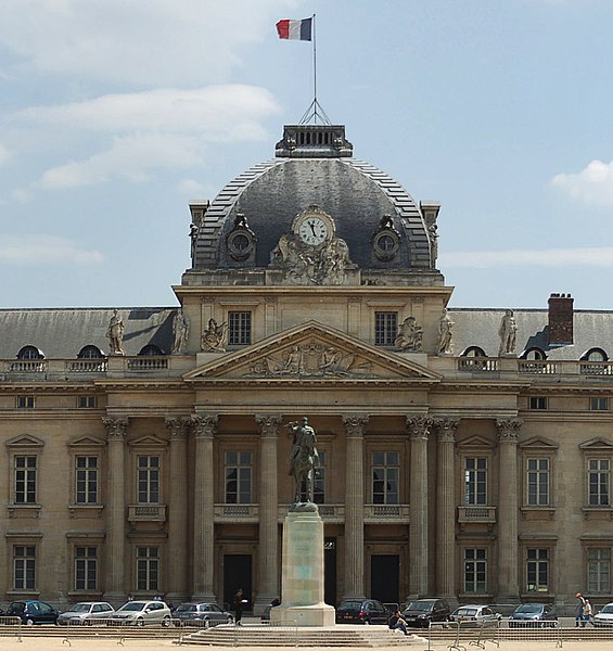 L'École militaire, institution d'enseignement supérieur militaire fondée par Louis XV en 1751, désigne aussi l'ensemble des bâtiments qui l'abritent dans le 7e arrondissement de Paris. Conçue au XVIIIe siècle par l'architecte du roi Ange‑Jacques Gabriel, elle ferme la perspective sud‑est du Champ‑de‑Mars et reste en activité ; elle est classée au titre des monuments historiques depuis 1990. La création de l'École répondait au constat d'un manque d'officiers bien formés après la guerre de Succession d'Autriche et au projet soutenu par le maréchal de Saxe, Madame de Pompadour et le financier Joseph Pâris Duverney. L'édit de janvier 1751 institue l'École destinée à instruire cinq cents jeunes nobles sans fortune, financée en partie par la taxe sur les cartes à jouer et administrée par le secrétaire d'État à la Guerre. Elle s'appuyait sur des collèges militaires en province, comme l'École de Brienne, et l'admission à Paris se faisait à l'issue d'un concours national. Ange‑Jacques Gabriel présente son Grand Projet le 24 juin 1751 : une composition néoclassique d'inspiration palladienne, avec une vaste façade sur le Champ‑de‑Mars, cinq pavillons, des bâtiments bordant des cours et une chapelle en croix latine précédée d'une colonnade. Le projet prévoyait des rez‑de‑chaussée voûtés, un système d'adduction d'eau, et une église centrale plus vaste que celle des Invalides. Les travaux débutent le 13 septembre 1751 par le creusement d'un grand puits, mais le chantier est ralenti par des difficultés financières et n'autorise l'ouverture qu'en 1756 pour deux cents cadets, grâce à l'aménagement provisoire des bâtiments de service en dortoirs et salles de classe. Les carrières de Vaugirard sont achetées la même année pour fournir la pierre, mais le projet initial est réduit en 1760 et réparti entre l'École militaire et le Collège royal de la Flèche. Gabriel reprend ultérieurement une version réduite de son projet et la façade principale, toujours visible aujourd'hui, est réalisée ; la première pierre de la chapelle est posée le 5 juillet 1768 et les travaux sont achevés en 1780. L'École a formé de nombreux cadets, parmi lesquels Bonaparte, élève en 1784‑1785, et a compté parmi ses professeurs des personnalités telles qu'Edme Mentelle et Louis‑Félix Guynement de Kéralio. Fermée en 1787 et affectée ensuite à des fonctions militaires, l'École sert de caserne, est pillée pendant la Révolution, puis agrandie au fil de ses différentes affectations, notamment pour la Garde impériale. La vocation d'enseignement se rétablit à la fin du XIXe siècle avec l'installation de l'École supérieure de guerre en 1878, puis l'accueil du centre des hautes études militaires en 1911 ; le site a aussi hébergé le Collège de défense de l'OTAN de 1951 à 1966. En 2012, des travaux de purge des façades ont permis de supprimer les parties de pierre dangereuses et ont mis au jour des balles probablement datées de 1944, ainsi que des impacts de tir visibles sur plusieurs façades. La façade principale est ornée de sculptures, parmi lesquelles La Victoire, La France, La Paix et La Force, œuvres de Louis‑Philippe Mouchy, et les bas‑reliefs Le Temps et L'Astronomie attribués à Jean‑Pierre Pigalle. Le "Château", partie centrale du complexe, se reconnaît à son dôme quadrangulaire et abrite l'escalier d'honneur, la salle des gardes, le salon dit "des maréchaux", la chapelle et la bibliothèque patrimoniale. Les traces des événements historiques sont encore visibles : dégradations révolutionnaires sur les marches de l'escalier, la transformation du salon en bureau par Bonaparte et la trace d'une balle dans un miroir liée aux combats de la Commune. La cour Morland fut le lieu de la dégradation du capitaine Dreyfus en 1895 ; sa réhabilitation a eu lieu dans la cour Desjardins le 13 juillet 1906, et le film J'accuse (2019) a été tourné à l'École militaire. Dans la cour d'honneur se trouve une horloge réalisée par Jean‑André Lepaute, encadrée par deux figures féminines traditionnellement associées à Madame de Pompadour et à l'étude, entretenue par l'entreprise Lepaute depuis son installation. La chapelle Saint‑Louis, conçue par Jacques‑Ange Gabriel, fut endommagée à la Révolution, utilisée à d'autres fonctions pendant longtemps et rendue au culte en 1952 ; elle présente un plafond en voûte surbaissée, de grandes colonnes corinthiennes intégrées au mur, des hauts‑reliefs et neuf tableaux du XVIIIe siècle illustrant la vie de Saint Louis, ainsi qu'une crypte contenant le cercueil en chêne de Pâris Duverney. La rotonde Gabriel, chapelle initiale à plan octogonal coiffée d'une coupole, a été transformée après la guerre en mess et accueille aujourd'hui un point de restauration. La bibliothèque patrimoniale, aménagée dans une enfilade d'anciens salons du "Château", conserve des boiseries sculptées, des plafonds attribués longtemps au Flamand Jacob Verbeeckt, des tableaux de Pierre‑François Cozette et des cheminées en marbre de style Louis XVI, ainsi que des traces des combats d'août 1944. L'École militaire occupe une place majeure sur l'axe Trocadéro‑Breteuil, entre la Tour Eiffel et le siège de l'UNESCO, et s'impose comme un chef‑d'œuvre de l'architecture classique du XVIIIe siècle au cœur de la capitale. Aujourd'hui le site regroupe une vingtaine d'organismes d'enseignement, de doctrine et de recherche en stratégie, sécurité et géopolitique, constituant un pôle unique en Europe pour les études de défense. En octobre 2023 ces organismes se sont fédérés au sein de l'Académie de défense de l'École militaire (ACADEM), structure destinée à promouvoir la formation, la recherche et le rayonnement de la pensée stratégique française et à favoriser les échanges avec le monde académique national et international. L'ACADEM rassemble notamme