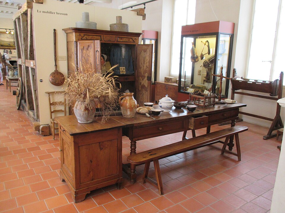 Installé depuis 1981 à Pierre-de-Bresse dans l'ancien château des Comtes de Thiard, propriété du département de Saône‑et‑Loire, l'Écomusée de la Bresse bourguignonne conserve la mémoire du pays bressan. Il présente, dans ses salles d'expositions permanentes, le milieu naturel, l'histoire, les savoir‑faire, les aspects de la vie traditionnelle et l'architecture ancienne et actuelle de la Bresse bourguignonne. Association reconnue d'utilité publique, l'écomusée rassemble près de 30 000 objets représentant pour la plupart la vie quotidienne, artisanale et technique de la région. Certaines collections suivent des axes thématiques dépassant le territoire strictement local. Une grande partie des objets provient d'un travail de collecte de plus de 35 ans auprès de la population locale, qui a fait de nombreuses donations (ateliers artisanaux complets, outils agricoles, objets de la vie quotidienne, éléments de costumes). D'autres enrichissements proviennent d'achats auprès de particuliers et de collectionneurs, parfois en salles des ventes, ainsi que d'acquisitions soutenues par le Fonds Régional d'Acquisition pour les Musées et par les contacts du conservateur avec son environnement. Les domaines et thèmes couverts incluent l'archéologie, les arts décoratifs et beaux‑arts, l'ethnologie, l'histoire locale, la photographie, les sciences de la nature et les sciences et techniques liées à l'agroalimentaire.