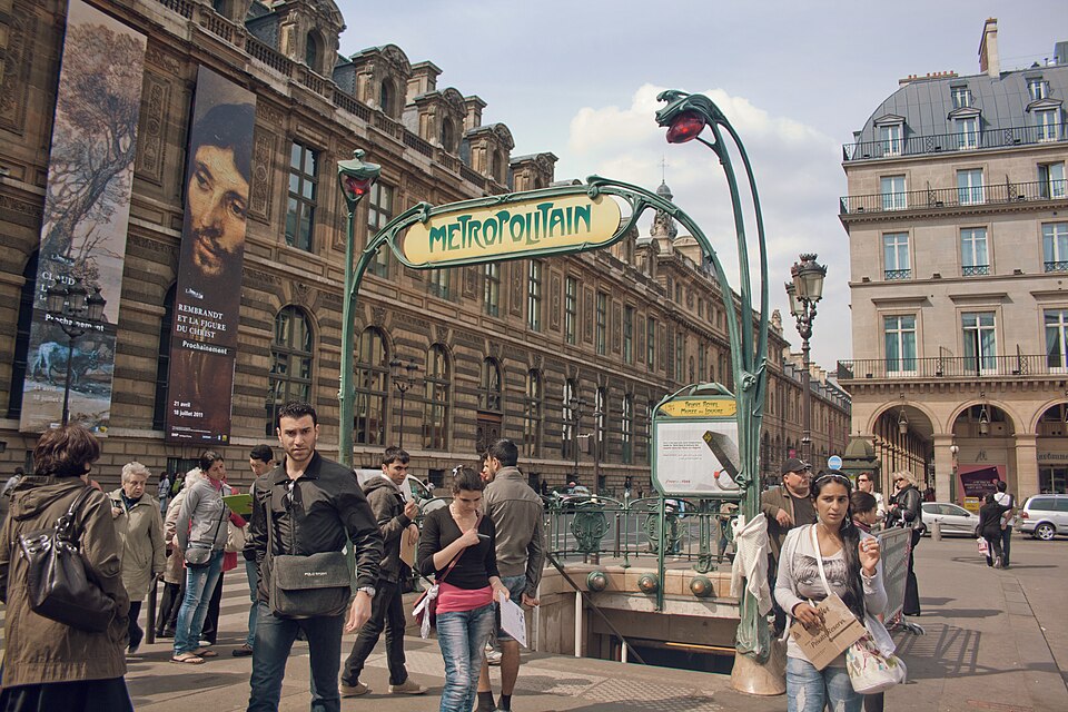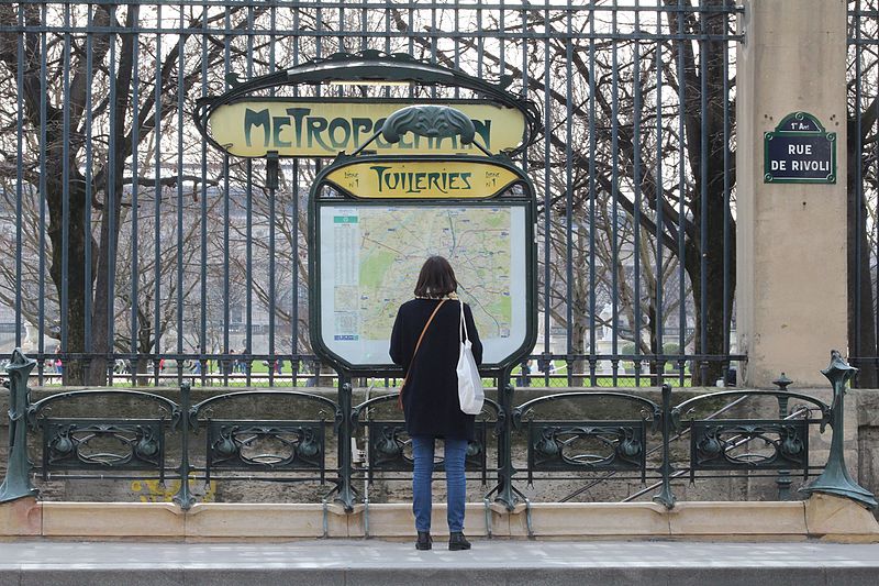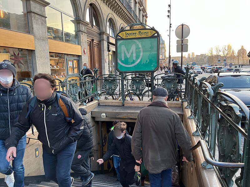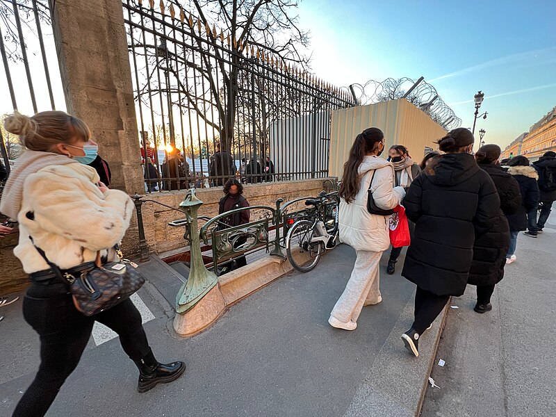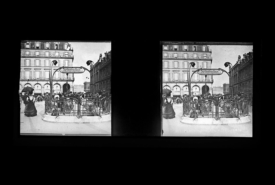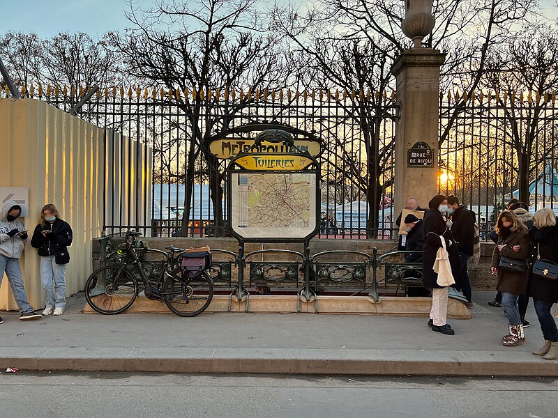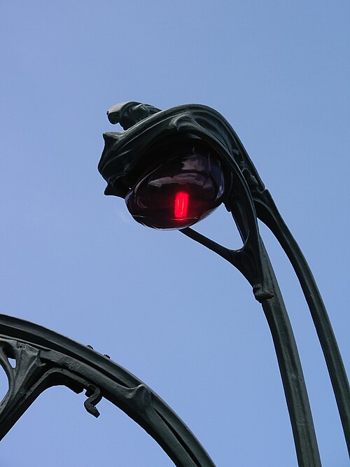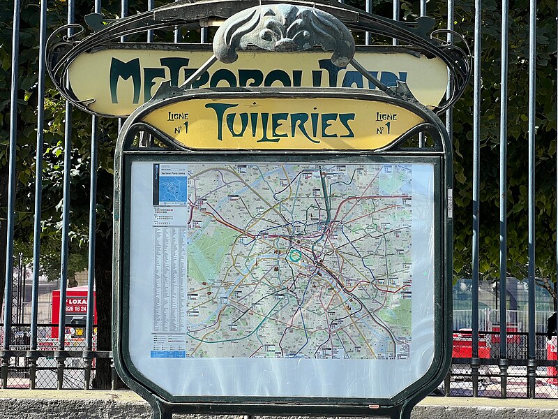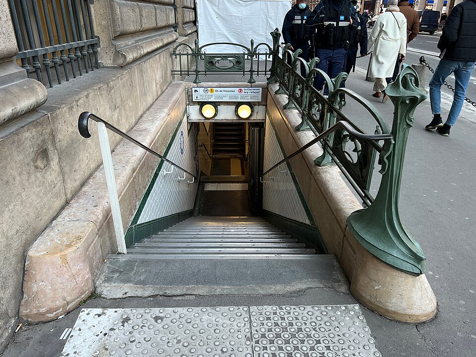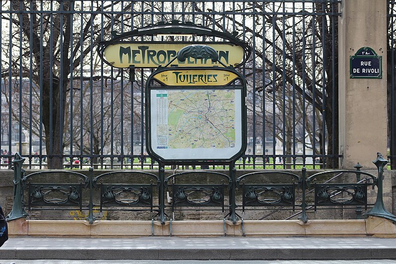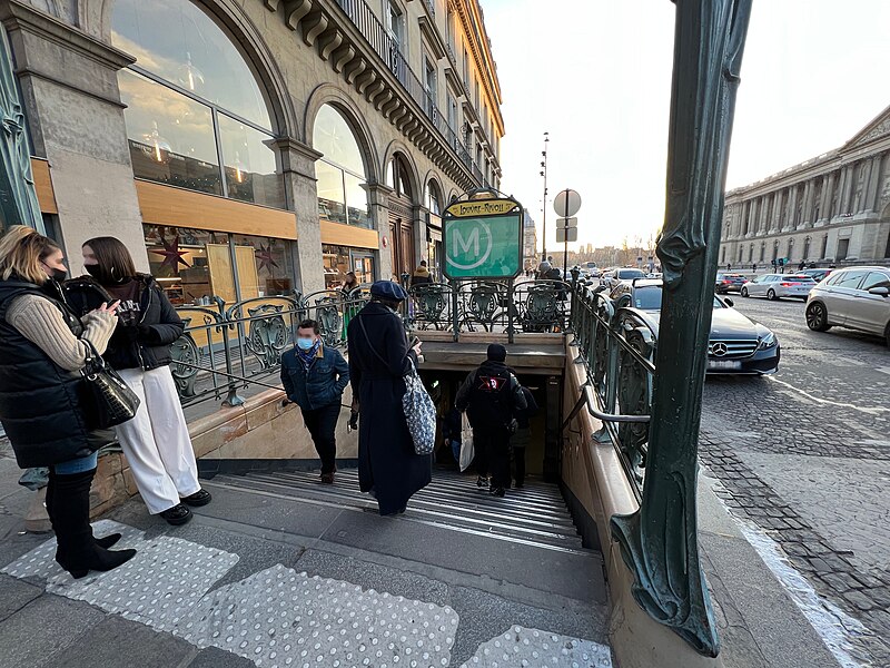 L'accès à la station Châtelet est l'un des édicules du métro dessinés en 1900 par Hector Guimard pour la Compagnie générale du Métropolitain de Paris ; la station se situe sur la ligne 1, inaugurée la même année. Les réalisations de Guimard, conçues dans un style Art nouveau, vont des édicules couverts mêlant fer, fonte, verre et lave émaillée à des entourages plus simples composés d'une balustrade et d'un portique en fonte sculptée, repérables par leurs candélabres soutenant une enseigne « Métropolitain » et des verrines colorées. Conçues selon une logique modulaire, ces entrées associent éléments standardisés — panneaux de lave émaillée, montants en fonte, vitrages et marquises — et productions semi-industrielles afin d’être adaptées aux contraintes de chaque site. Guimard obtint la commande hors concours et livra rapidement dessins et projets, mais la collaboration avec la CMP se détériora pour des motifs financiers ; en 1903 une convention mit fin au contrat tout en permettant à la Compagnie de reproduire ses modèles. Entre le printemps 1900 et 1913, la CMP posa nombre d’ouvrages d’après ses plans : entourages à écussons ou à cartouches, édicules de deux modèles et trois petits pavillons destinés aux gares les plus importantes. Sur les 167 ouvrages édifiés d’après ses dessins, la plupart des édicules et près de la moitié des entourages furent détruits dans les décennies suivantes, l’Art nouveau passant de mode. Le choix des matériaux et des fournisseurs reflète le souci technique et esthétique de Guimard : pierres de soubassement, fontes produites en série, panneaux de lave émaillée, verrines et vitrages réalisés par des ateliers spécialisés. La simplicité des entourages convint bientôt la municipalité de généraliser ces modèles au détriment des édicules, initialement prévus en plus grand nombre. Au fil du XXe siècle, l’abandon, les remplacements par des modèles plus sobres et les difficultés d’entretien entraînèrent démontages et pertes, tandis que certaines pièces furent prêtées ou offertes à des musées et institutions étrangères. Dès les années 1960 la redécouverte de l’Art nouveau amorça des mesures de protection et des restaurations, et un arrêté de 1965 puis une inscription de 1978 protègent plusieurs ouvrages, inscription complétée en 2016 par l’ajout de l’entourage de la place de la Nation. La RATP a engagé depuis les années 1970 des campagnes de maintenance et, à l’approche du centenaire du métro, des restaurations à l’identique menées avec les services des Monuments historiques. Parmi les ouvrages conservés, l’édicule de la Porte Dauphine est le seul édicule B d’origine resté en place et restauré, et le modèle A à claire-voie déplacé est visible à Abbesses. La version allégée installée place Sainte-Opportune, qui offre un accès secondaire à la station Châtelet, est une reconstitution réalisée en 2000 d’un exemplaire initialement édifié à la Gare de Lyon. Longtemps controversées, les entrées de Guimard sont aujourd’hui reconnues comme des symboles de l’Art nouveau et du paysage parisien, contribuant à l’image et à l’imaginaire de la ville et demeurant un élément identitaire du métro.