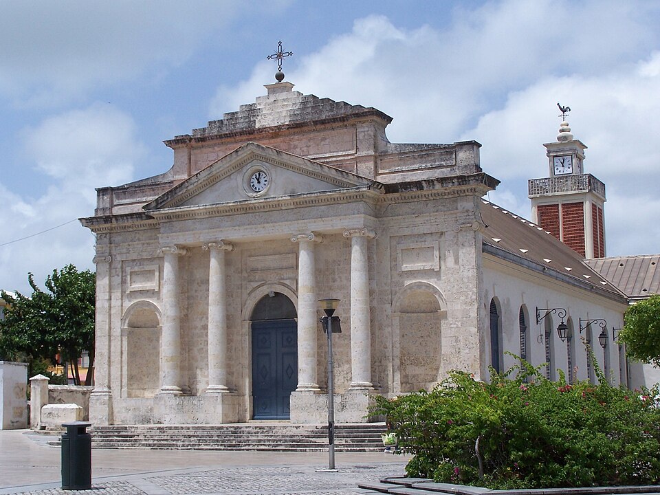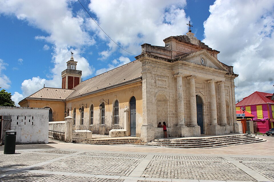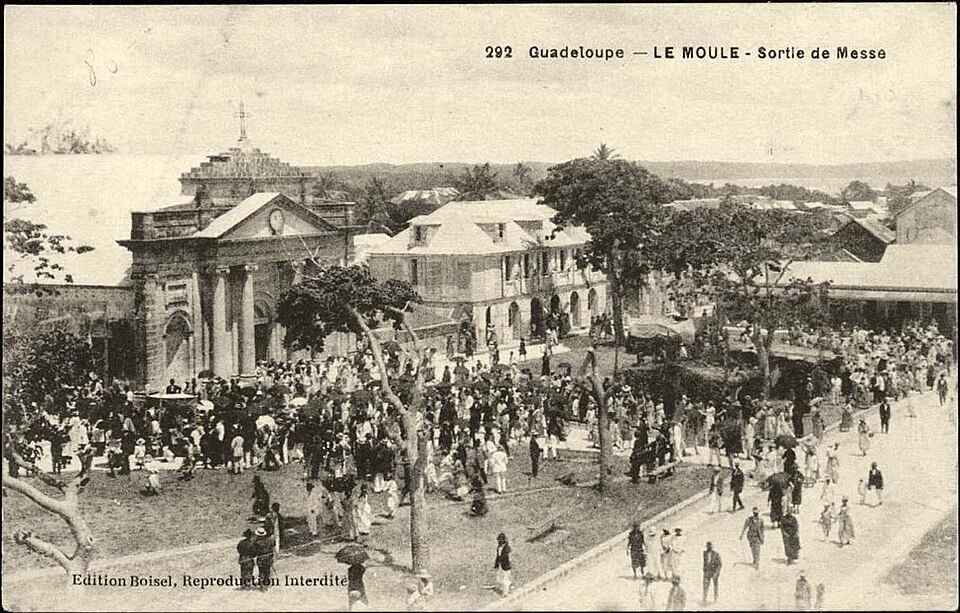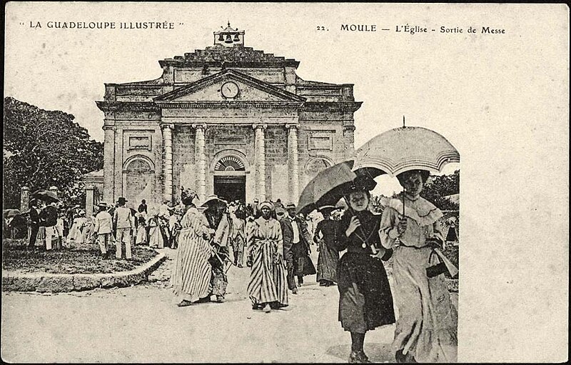 L'église Saint-Jean-Baptiste est une église catholique située rue Jeanne‑d'Arc, sur la place centrale du Moule en Guadeloupe. Une réfection de l'édifice et l'ajout d'un clocher et d'une sacristie ont fait l'objet d'une adjudication le 21 novembre 1930 pour 135 000 francs. L'édifice d'origine remonte au XVIIe siècle, lors de la création de la paroisse constitutive du diocèse de la Guadeloupe ; à l'exception de la façade conservée, il a été reconstruit entre 1825 et 1850. Durant la période 1930-1931, l'architecte Ali Tur, particulièrement actif dans la reconstruction après le passage de l'ouragan Okeechobee en 1928, a été chargé, par adjudication de lots, d'ériger le clocher et la sacristie, ainsi que le presbytère et son annexe pour un montant total de 850 000 FRF. La chapelle Fatima voisine est rattachée à la paroisse. Plusieurs éléments distincts de l'église ont été classés aux Monuments historiques en 1978 : la façade, le corps de l'église, le clocher et le presbytère. La façade, conservée, est en travertin, de style néoclassique et ornée de quatre colonnes ioniques ; elle est datée du XVIIe siècle. Le clocher, en béton armé peint, a été érigé en 1930. La travée centrale de l'église est également signalée parmi les éléments remarquables.