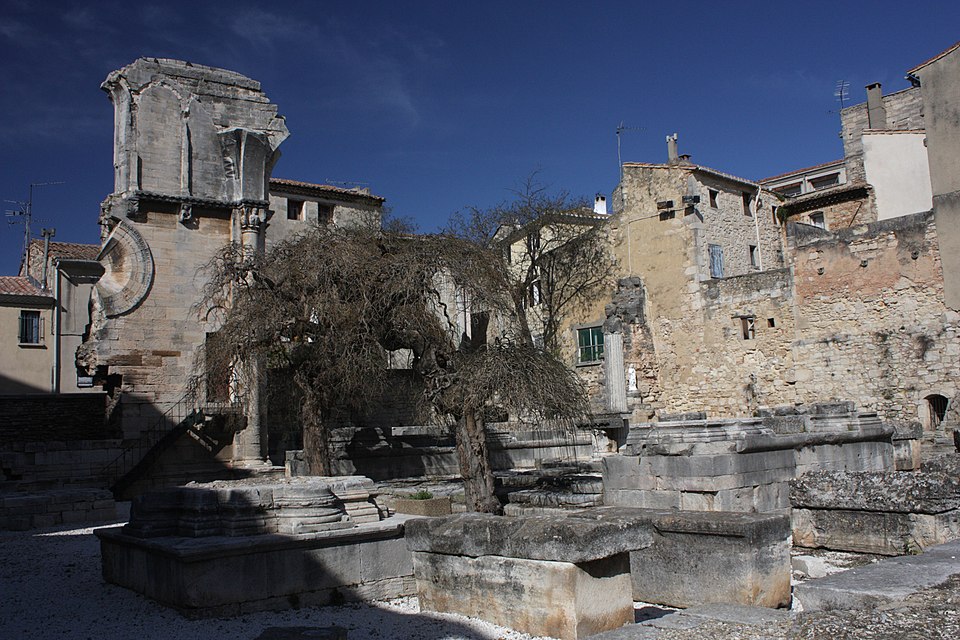 L'ancien cellier, dit salle de Saint-Gilles ; une partie des vestiges subsistants du cloître (cad. N 1132, 1150 à 1152) : classement par arrêté du 28 décembre 1984 - L’ensemble des vestiges situés sur ou sous les parcelles N 1120 et 1121, 1128 à 1132, 1149 à 1152, 1154, 1156, 1157, 1159 à 1164, 2094, 2095, 2993, avec le sol de l’aire du cloître (cad. N 2994), de la place Emile-Zola à l’exclusion des halles (cad. N 1158), du parvis sur la place de la République, ainsi que le sol de la rue du Vieux-Choeur et d’une partie de la place Ernest-Blanc, ensemble délimité sur le plan annexé à l’arrêté : inscription par arrêté du 17 février 2014 ; L'ensemble des parties bâties et non bâties et des vestiges de l'ancienne abbaye de Saint-Gilles, situés sur et sous les parcelles section N n° 1129 à 1131, 1152, 1154, 1156, 1157, 2094, 2095 et 2993, 2994, ainsi que le sols du parvis de la place de la République, de la rue du Vieux-Choeur, d’une partie de la place Ernest-Blanc et de la place Emile Zola, domaine public non cadastré, à l’exclusion des halles (parcelle n°1158), tels que délimités et hachurés en rouge sur le plan annexé : classement par arrêté du 23 avril 2018 et du 13 juin 2018.