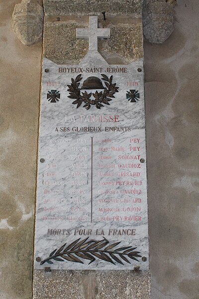 L'église Saint-Jérôme, située à Boyeux-Saint-Jérôme dans le département de l'Ain en France, possède un clocher moderne. L'édifice a été inscrit au titre des monuments historiques en 1926.