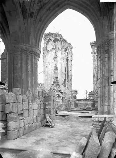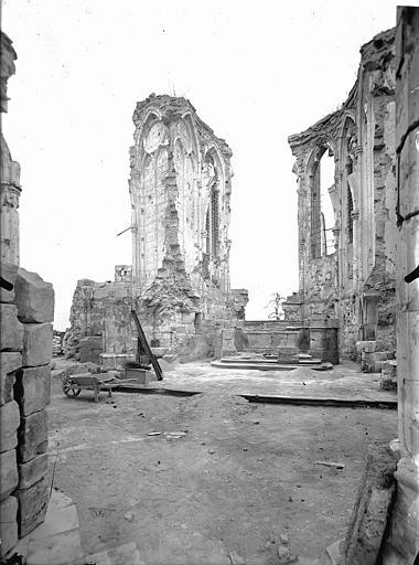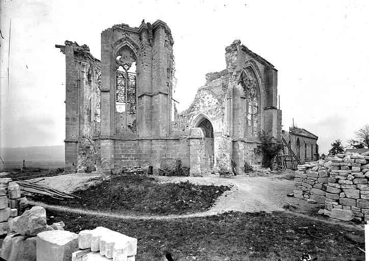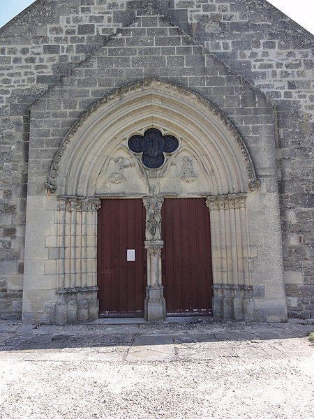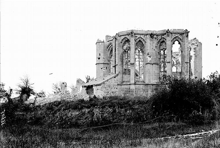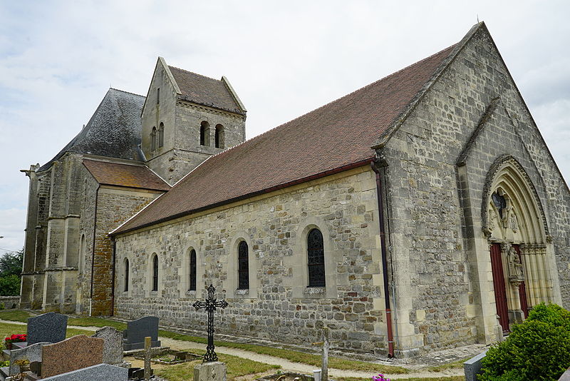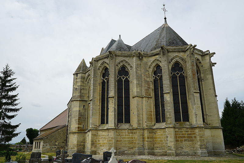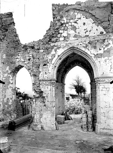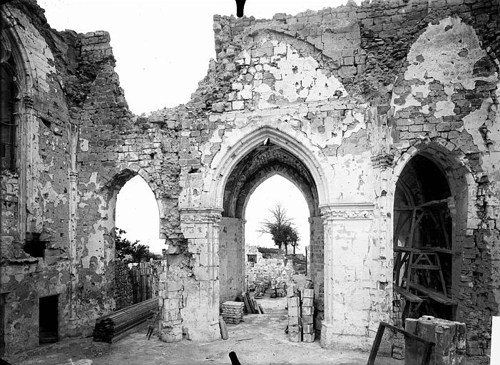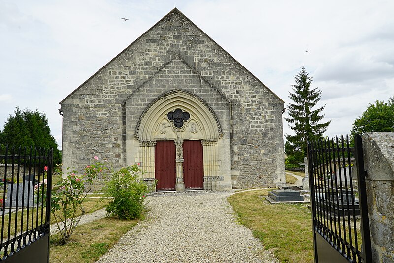 L'église Saint-Jean-Baptiste de Chaudardes (Aisne) conserve, du XIIe siècle, la croisée des transepts et les piliers qui soutiennent la tour, formant le noyau ancien de l'édifice. La nef et le chœur ont été remaniés aux siècles suivants, avec des éléments datés du XIVe siècle et un sanctuaire attribué au XVIe siècle. Le chevet est plat et présente des caractéristiques gothiques. À l'origine, la nef et les bas-côtés étaient couverts d'une charpente apparente remplacée au XIXe siècle par des voûtes d'ogives en plâtre. Très endommagée par les bombardements de la Première Guerre mondiale, l'église a subi d'importantes restaurations, la partie ouest ayant été restituée dans un esprit roman tandis que le chœur a été reconstruit selon le modèle gothique ; la restauration n'a pas permis de remplacer la statue en bois de la Vierge datant du XIIe siècle. L'édifice abrite de beaux vitraux modernes signés Jacques Simon. L'église doit aussi son histoire à un pèlerinage médiéval, au XIIe siècle, consacré à la guérison du « mal des ardents » ; la fontaine du bas du village était réputée pour soigner des dartres. L'abbaye d'Origny, seigneur du lieu, possédait une maison, un cloître, un oratoire et une tour jouxtant l'église. Le monument a été classé au titre des monuments historiques en 1919. La documentation photographique montre notamment la cuve bleue, la nef et le portail actuel.