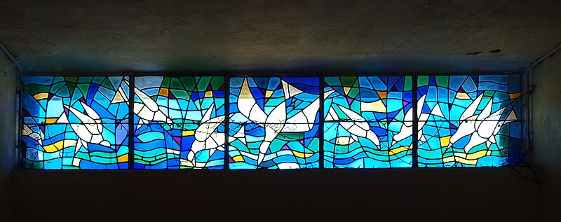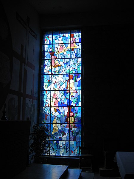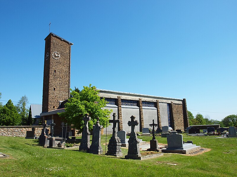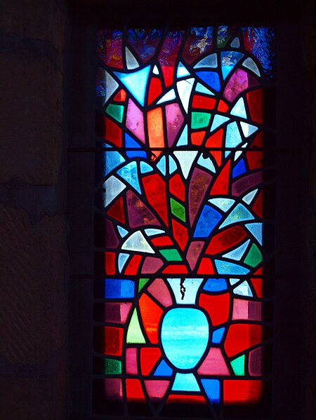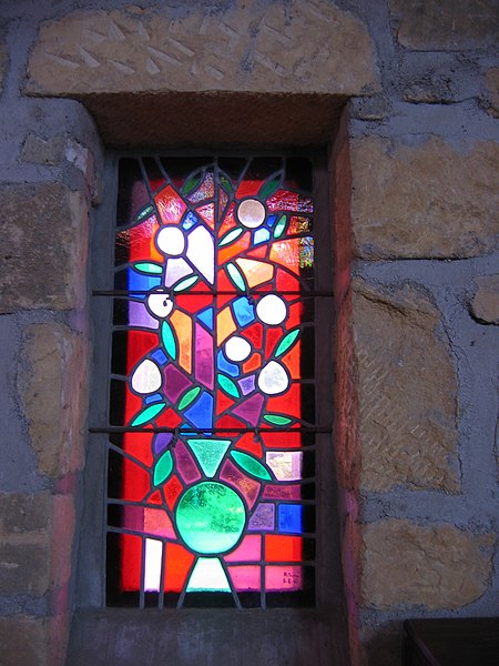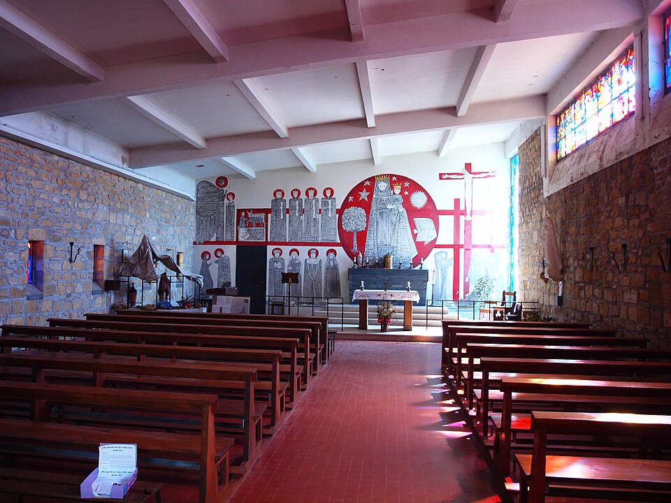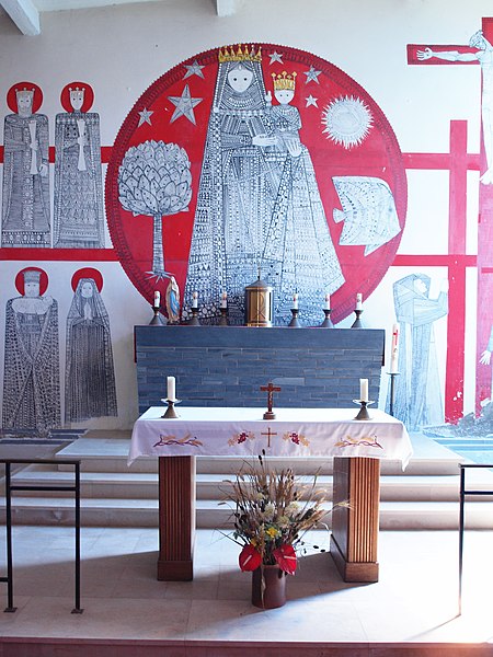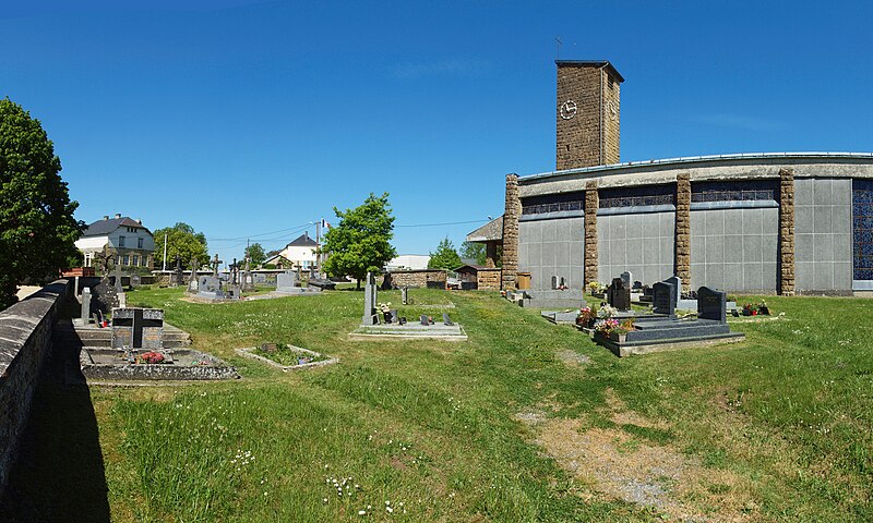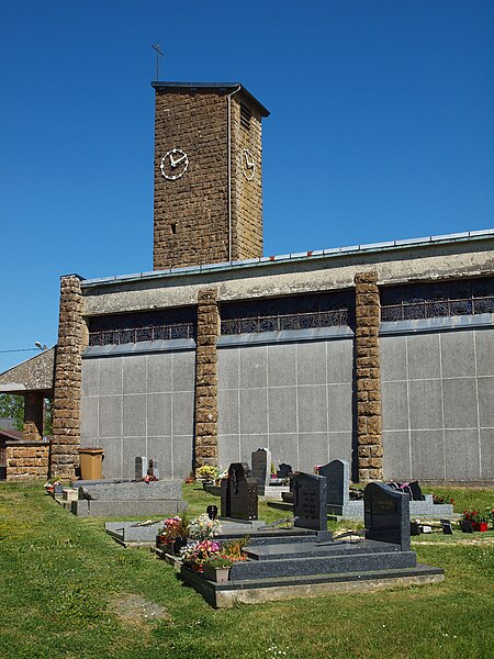 L'église Notre-Dame de Stonne, classée monument historique, se situe à la sortie ouest du village, le long de la D30 (rue du 15 mai 1940), et est entourée d'un cimetière. Une église antérieure, reconstruite en 1657 et édifiée en briques avec une nef charpentée flanquée de bas-côtés, avait été décrite comme comportant deux murs parallèles reposant sur des piles et cinq grandes arcades formant les travées ; le bas-côté nord avait disparu en 1817. Cet édifice ancien, fortement endommagé lors des combats de la bataille de Stonne en mai 1940, a été remplacé par une nouvelle construction élevée sur le même emplacement. Le permis de reconstruire a été délivré le 15 mars 1956 ; l'église actuelle, édifiée entre 1958 et 1960, a été inaugurée le 17 janvier 1960 et inscrite au titre des monuments historiques le 31 mars 2015. Le bâtiment reconstruit présente un plan rectangulaire simple : une nef unique sans bas-côtés et un chœur à fond plat inscrits dans le même rectangle. Les murs extérieurs, en béton et en moellons, forment un appareillage d'apparence rustique et la voûte est un plafond à caissons en béton armé blanchi, presque plat. À la façade occidentale s'appuie une haute tour-clocher de plan carré, où est installée une cloche, et un auvent protège la porte d'entrée. Le mur oriental, derrière l'autel, est couvert par une grande peinture murale de Maurice Calka réalisée en 1959 ; lumineuse, elle utilise essentiellement du blanc et du rouge avec des traits noirs et une décoration graphique tracée au crayon feutre. Cette fresque, illustrant le thème du « triomphe de la Vierge », déploie, de gauche à droite et de haut en bas, plusieurs scènes liées à la Vierge : l'Annonciation, la Visitation, la Nativité, la Présentation au Temple et, à l'extrémité droite, la Crucifixion. Avant la Crucifixion, la Vierge apparaît dans un disque rouge, portant l'Enfant sur son bras gauche et entourée de symboles des quatre éléments — l'air par le ciel, le feu par les étoiles, la terre par l'arbre et l'eau par le poisson. Les personnages sont représentés de face ou de profil, sauf la Nativité en vue plongeante, et les scènes encadrées en bandes peuvent évoquer des enluminures romanes ; l'œuvre témoigne d'une économie de moyens formant un graphisme géométrique proche d'un courant minimaliste et s'inscrit dans la création architecturale et artistique des églises françaises de la seconde moitié du XXe siècle. L'éclairage intérieur provient notamment de vitraux signés Robert Savary : une verrière latérale, figurant une colombe et des cloches, éclaire la fresque et peut évoquer Pâques ou la libération et la paix retrouvée, d'autres baies apportent la lumière par des verrières placées en hauteur sur le mur méridional sous le plafond et des baies verticales sur le mur septentrional. Un vitrail en hauteur illumine également les fonts baptismaux situés près de l'entrée.