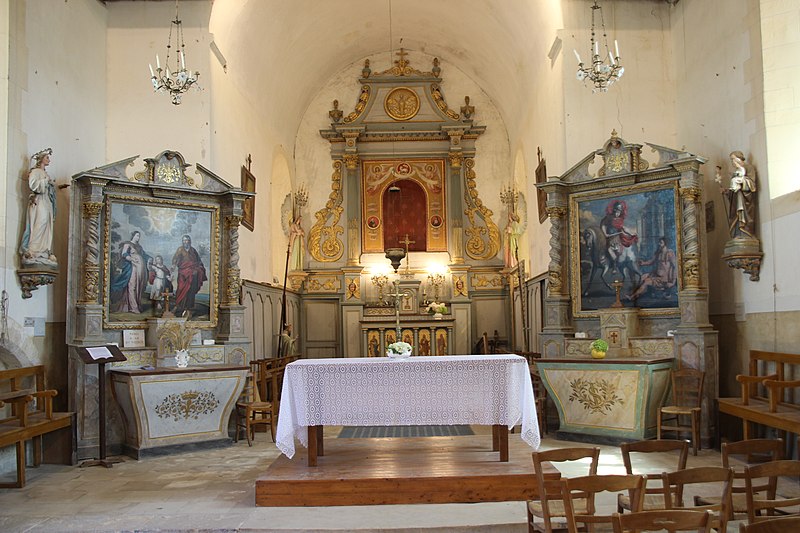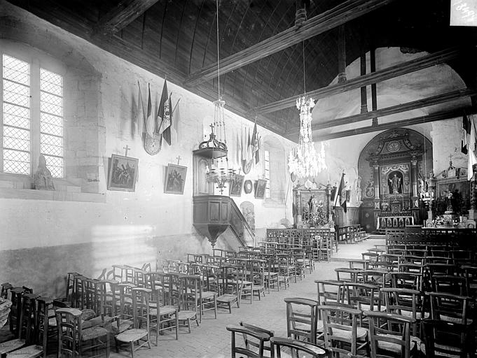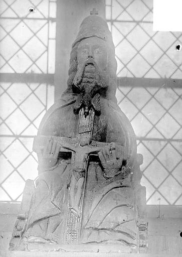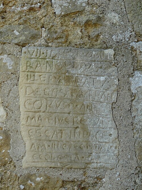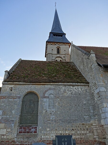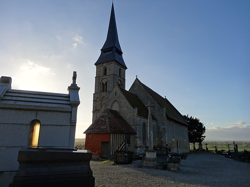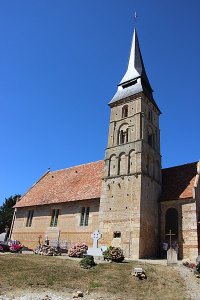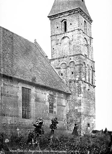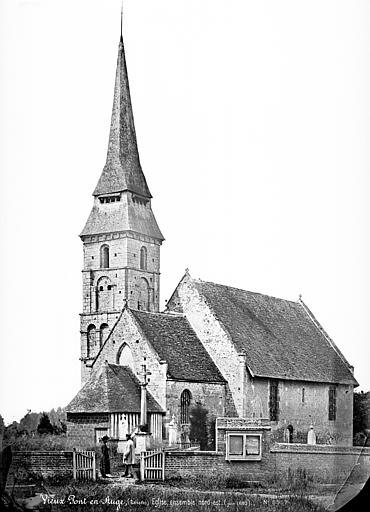 L'église Saint-Aubin se situe à Vieux-Pont-en-Auge, dans le Calvados, et domine la vallée de l'Oudon. Classée au titre des monuments historiques par la liste de 1862, elle est un édifice catholique parmi les plus anciens de Normandie. Datant probablement de la fin du Xe ou du début du XIe siècle selon Arcisse de Caumont, ses murs en moellons avec chaînes horizontales de briques illustrent l'architecture de cette période. Le clocher a été bâti après le chœur mais à peu près à la même époque que la nef, au XIe siècle. L'édifice suit un plan basilical élémentaire, proche de petites constructions romanes comme Querqueville, et se rapproche du groupe d'églises formé par Saint-Jean-de-Livet, Saint-Martin-de-la-Lieue et Ouilly-le-Vicomte, avec une grande nef et un chœur au chevet plat. La nef mesure 14 m de long sur 8 m de large, le chœur 8 m sur 5 m, et l'église présente la particularité d'une tour-clocher adossée au chœur sur la façade sud. La maçonnerie constitue un rare exemple de petit appareil avec chaînage de trois rangs de briques et remplissage en moellons, tandis que les angles sont traités en gros blocs de calcaire dans la tradition du Bas-Empire. Ces caractéristiques témoignent du maintien de techniques carolingiennes et de liens avec le Val-de-Loire, notamment l'église de Savennières. Le mur sud, le plus remarquable, comporte des reprises ; on y observe des restes de fenêtres primitives, étroites et en plein cintre, et un triple cordon de briques sur la face méridionale. Le portail occidental, mentionné par Arcisse de Caumont, a été modifié et agrandi à la fin du XIXe siècle, la niche au-dessus de la porte date du XVIe siècle et le pignon a été rehaussé avec un appareil réticulé pour augmenter la pente du toit. Le clocher, considéré comme le plus ancien du Calvados, présente un soubassement en petit appareil irrégulier et, dépourvu de contreforts, est renforcé aux angles par des chaînages en grand appareil reliés par des cordons de briques, traits de l'architecture carolingienne. Le premier niveau se distingue par de gros joints et deux rangs de briques engagés, ainsi que par un bandeau de billettes sous de larges arcatures en plein cintre dont les claveaux nus retombent sur des tailloirs de pilastres ; cette ornementation se retrouve à la base de nombreux clochers romans et gothiques de la région. Les deuxième et troisième niveaux, attribués au XIe siècle, sont percés de baies simples ; chaque face s'ouvre sur une baie en plein cintre subdivisée par une colonnette centrale et deux arcades latérales, montrant que les ouvertures de tours furent subdivisées très tôt, comme dans les tours de façade de l'église Saint-Étienne de Caen et de l'abbatiale de Jumièges. Parmi les éléments notables figurent la maçonnerie, la façade sud et le portail ouest. Le mobilier comprend le retable principal consacré à saint Aubin, deux retables latéraux dédiés à saint Martin et à la Sainte-Famille, une statue polychrome de saint Martin, une représentation de la Trinité et l'ancien coq de l'édifice, déposé à l'intérieur. Une épitaphe sur le clocher, antérieure au milieu du XIe siècle, mentionne qu'un certain Ranoldus, né de la race des Francs, mourut le 7 des ides de février et fit édifier l'église ; que son âme repose en paix. La principale source citée est Arcisse de Caumont, Statistique monumentale du Calvados, tome 5.