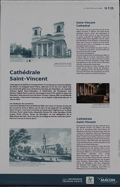 La cathédrale Saint-Vincent de Mâcon, située en Saône-et-Loire, est la nouvelle église qui a remplacé au début du XIXe siècle la cathédrale primitive aujourd’hui appelée Vieux-Saint-Vincent ; elle demeure dédiée au diacre Vincent de Saragosse. Sa construction néo-classique, décidée après le Concordat de 1801 et financée par l’empereur Napoléon, a été conçue par Guy de Gisors sur l’emplacement d’un ancien temple romain et s’est déroulée de 1808 à 1818 pour un coût total de 600 000 francs. Nommée d’abord église Saint-Napoléon, elle porta ensuite le nom d’église Saint-Louis avant de reprendre celui de Saint-Vincent. Restaurée en 1892 pour 200 000 francs, elle reçoit en 1897 des décors intérieurs réalisés par l’architecte Authelain, qui complètent un intérieur jusque-là dépourvu de peintures, moulures et vitraux et dont les colonnes étaient restées en pierre nue. Le 4 mars 1869, la cathédrale a accueilli les obsèques d’Alphonse de Lamartine, auxquelles assistaient notamment Alexandre Dumas fils, Jules Sandeau, Émile Augier, Xavier de Montépin et Émile Ollivier.