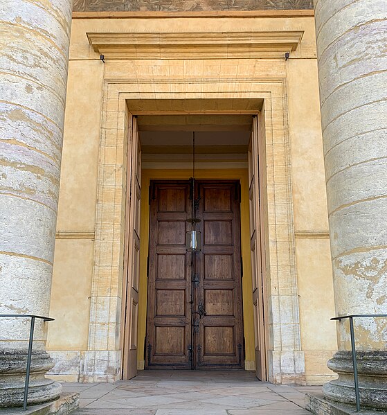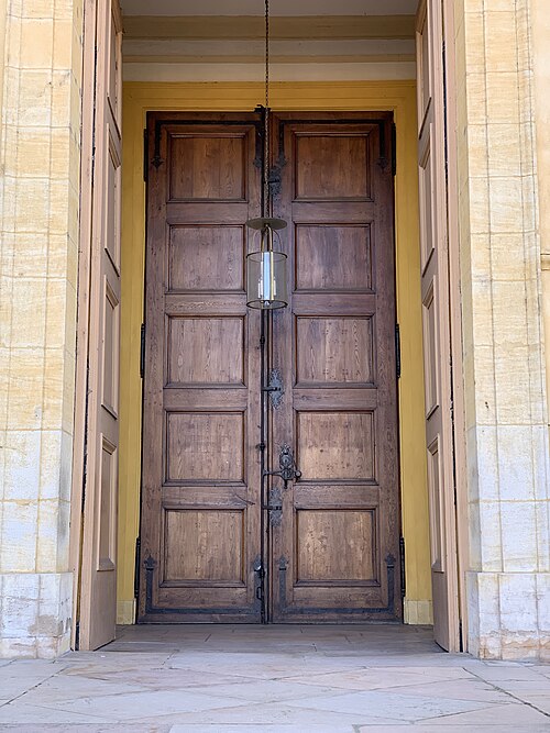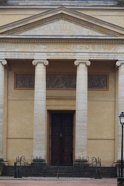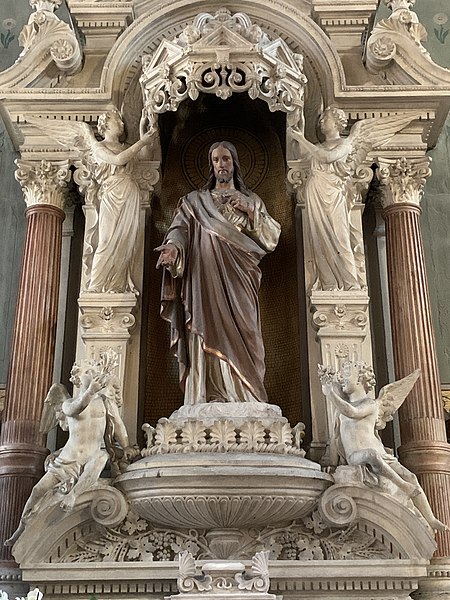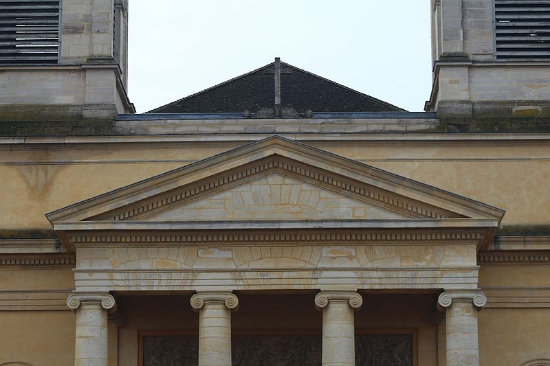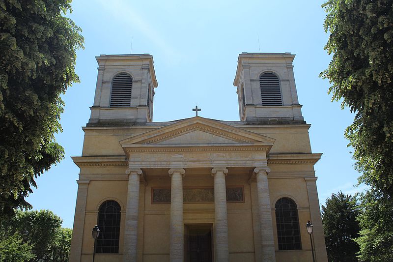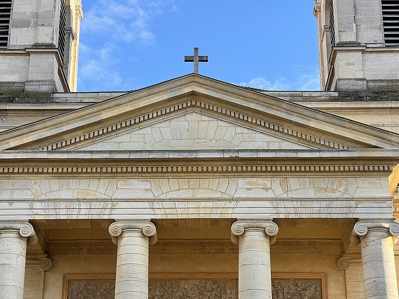 L’édifice suit un plan basilical et présente les éléments caractéristiques du néo-classicisme : portique à colonnes, fronton triangulaire et disposition de l’abside. Au centre de l’abside se trouve Le Christ en croix, tableau de David entouré d’évocations du martyre de saint Vincent ; à gauche une Vierge au raisin, copie d’un tableau de Mignard, et à droite un Martyre de saint Barthélémy par Laurent de La Hyre. Au-dessus du chœur, cinq médaillons représentent les quatre évangélistes et, au centre, le Christ. Les fonts baptismaux sont en marbre vert sombre et de style Empire.